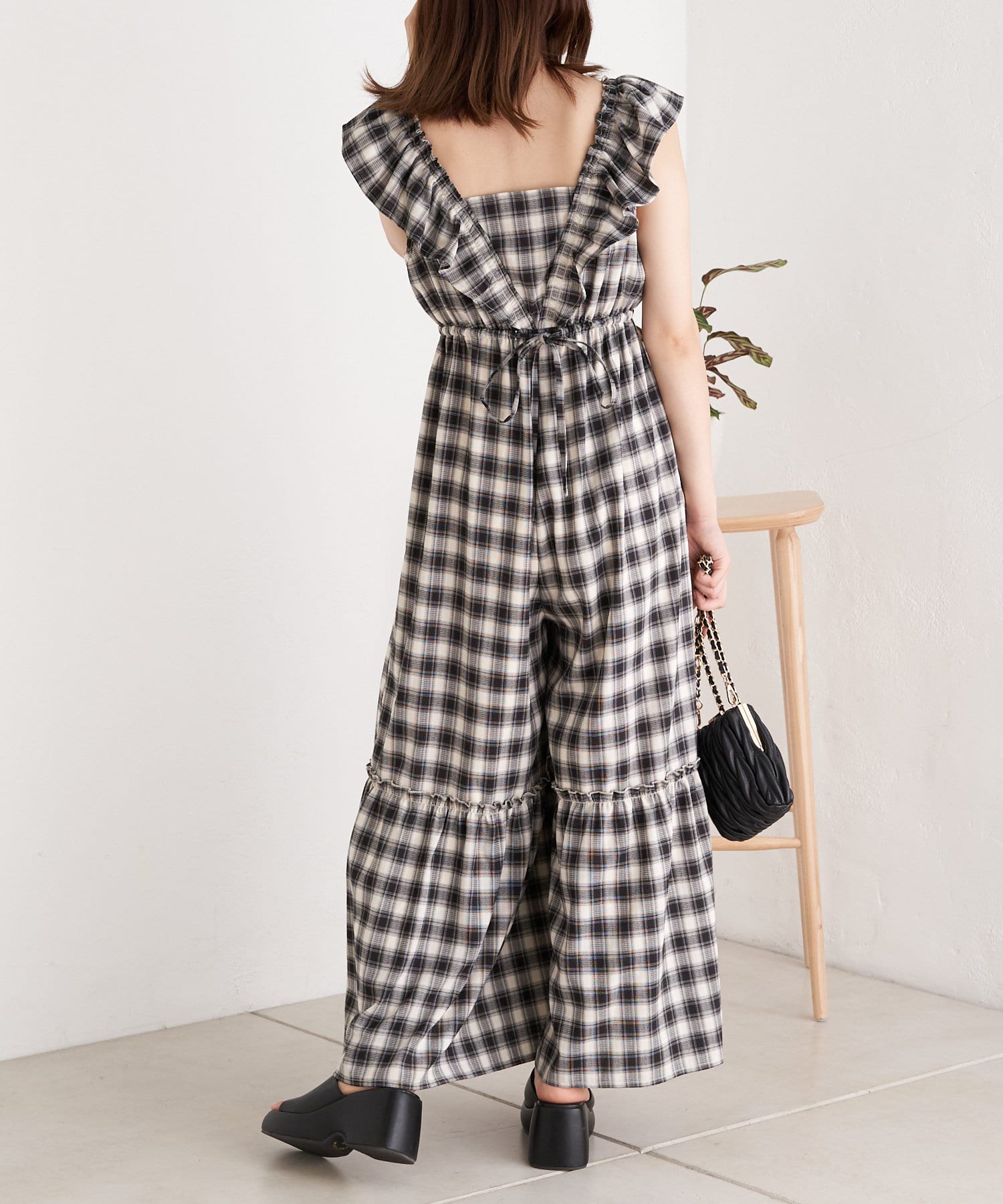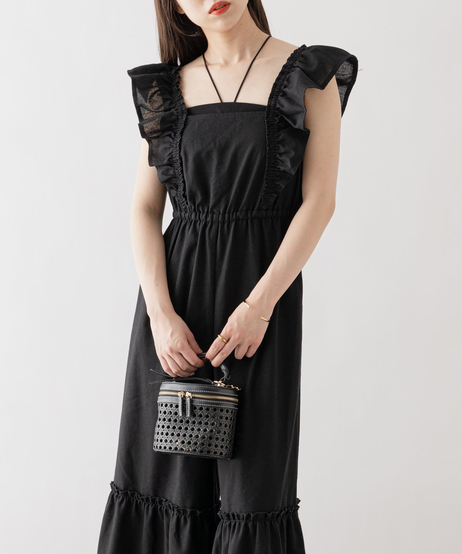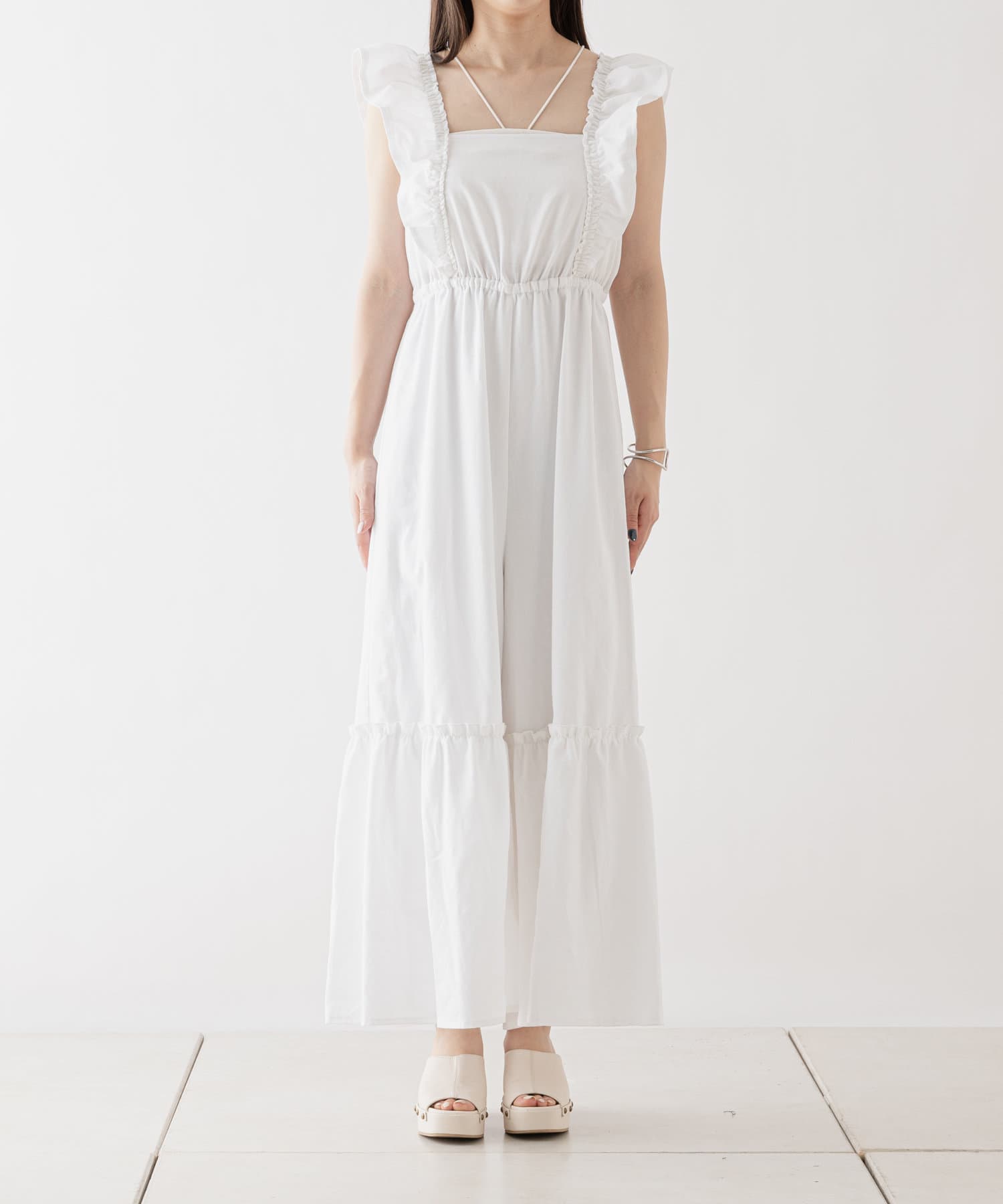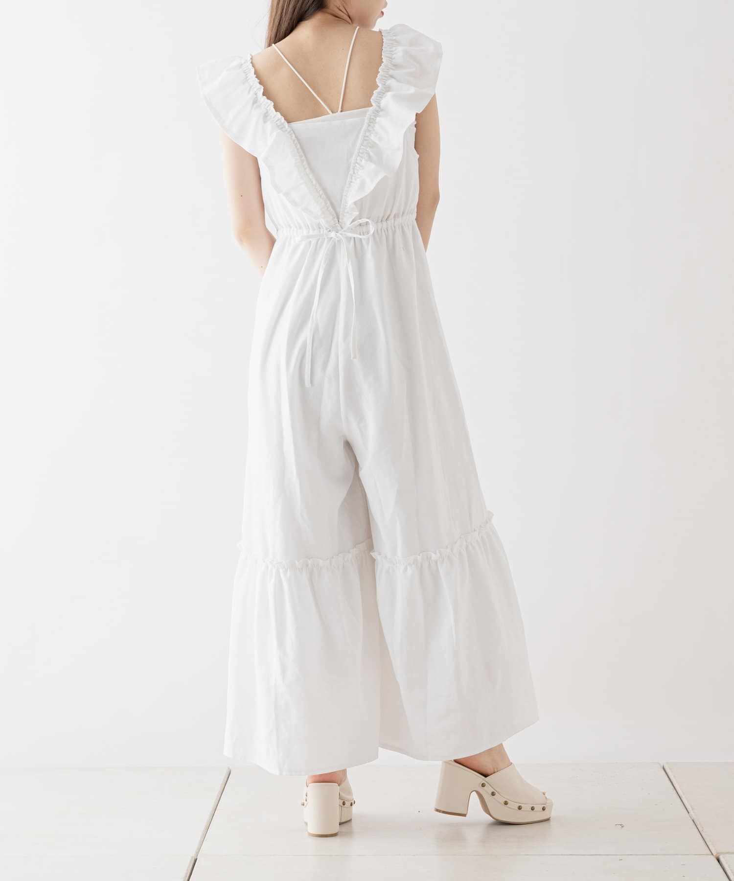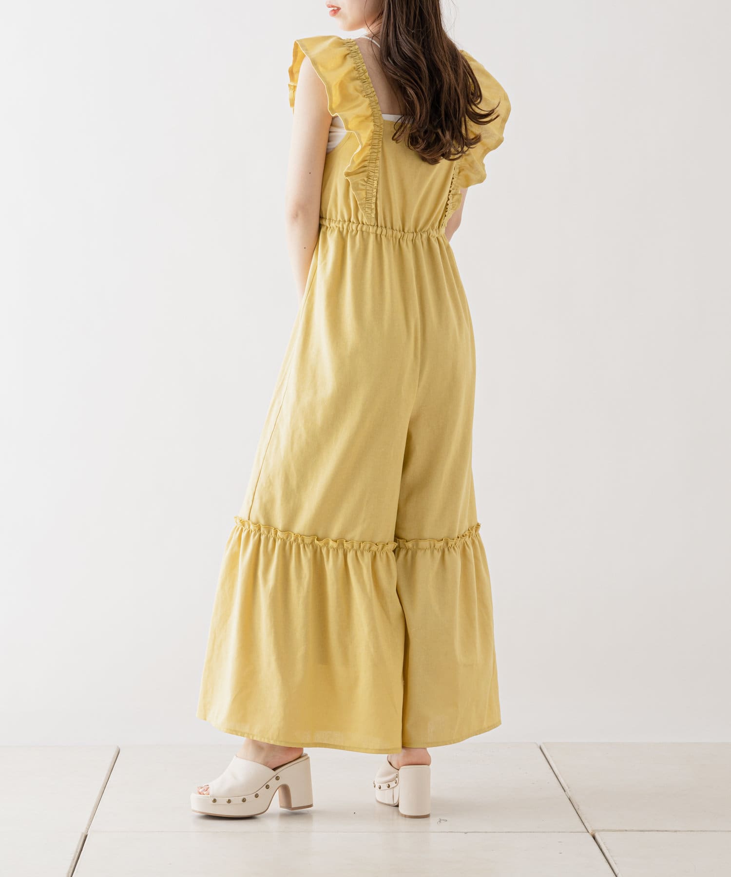 大胆なフリルが目を惹くサロペ