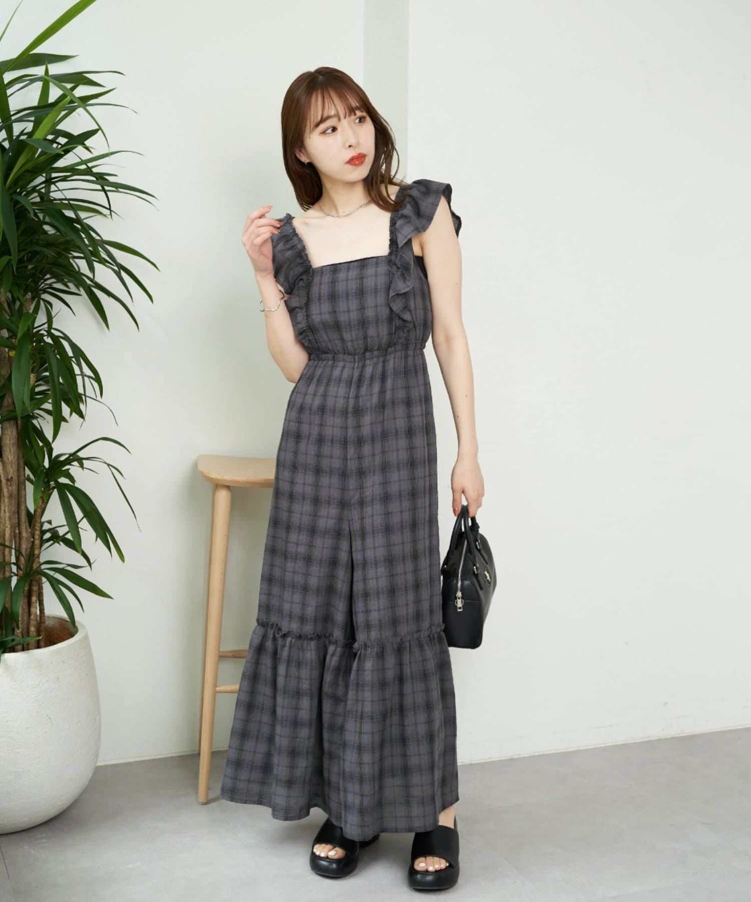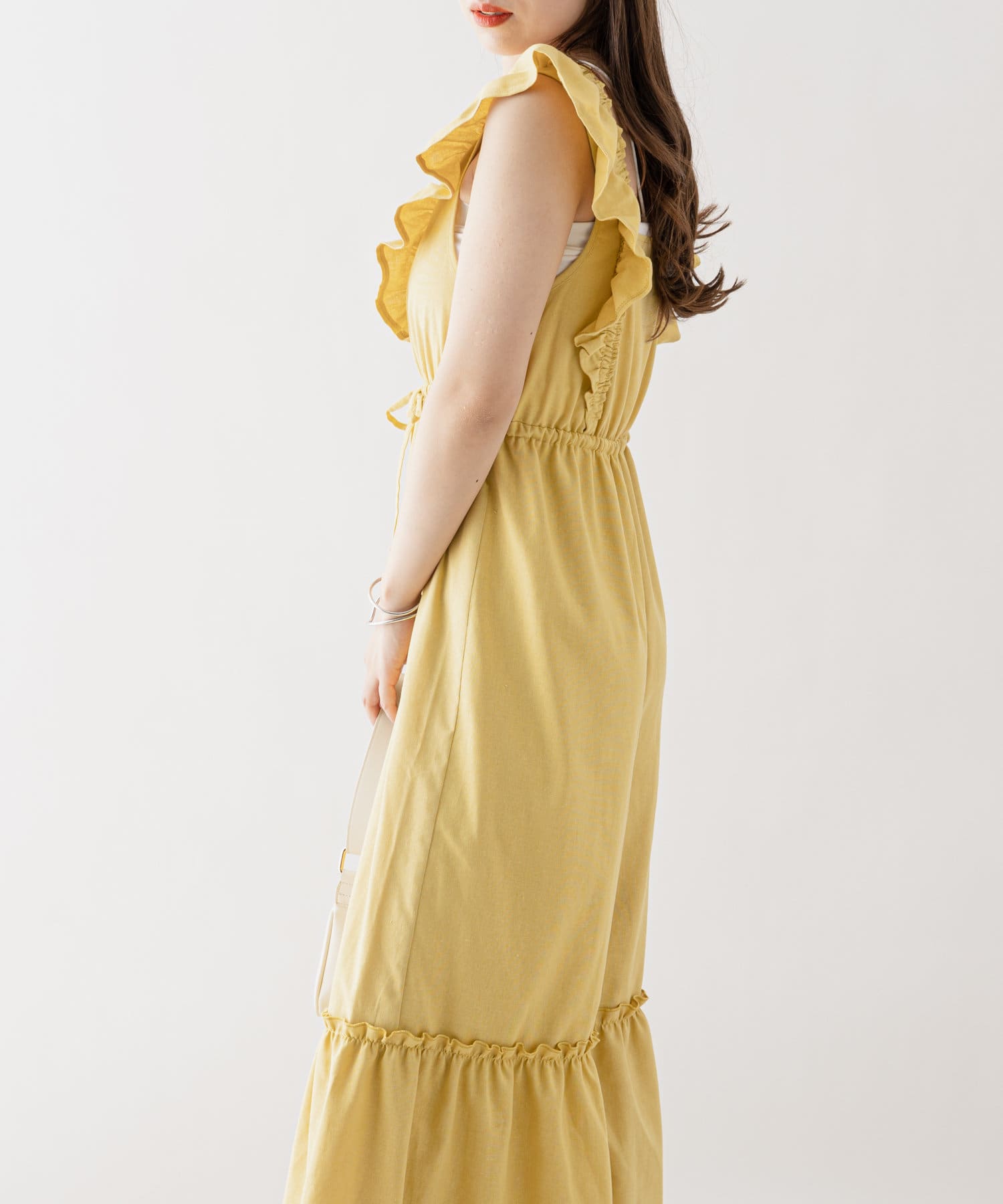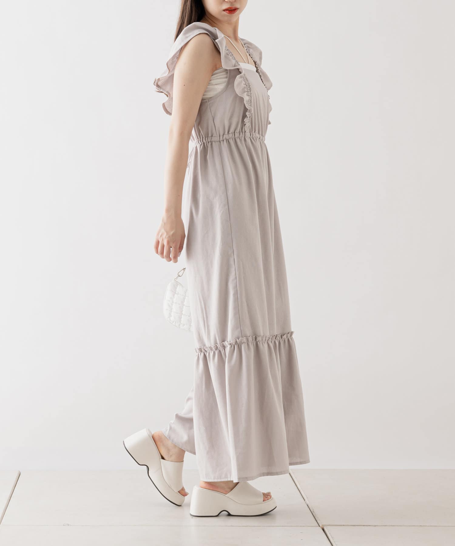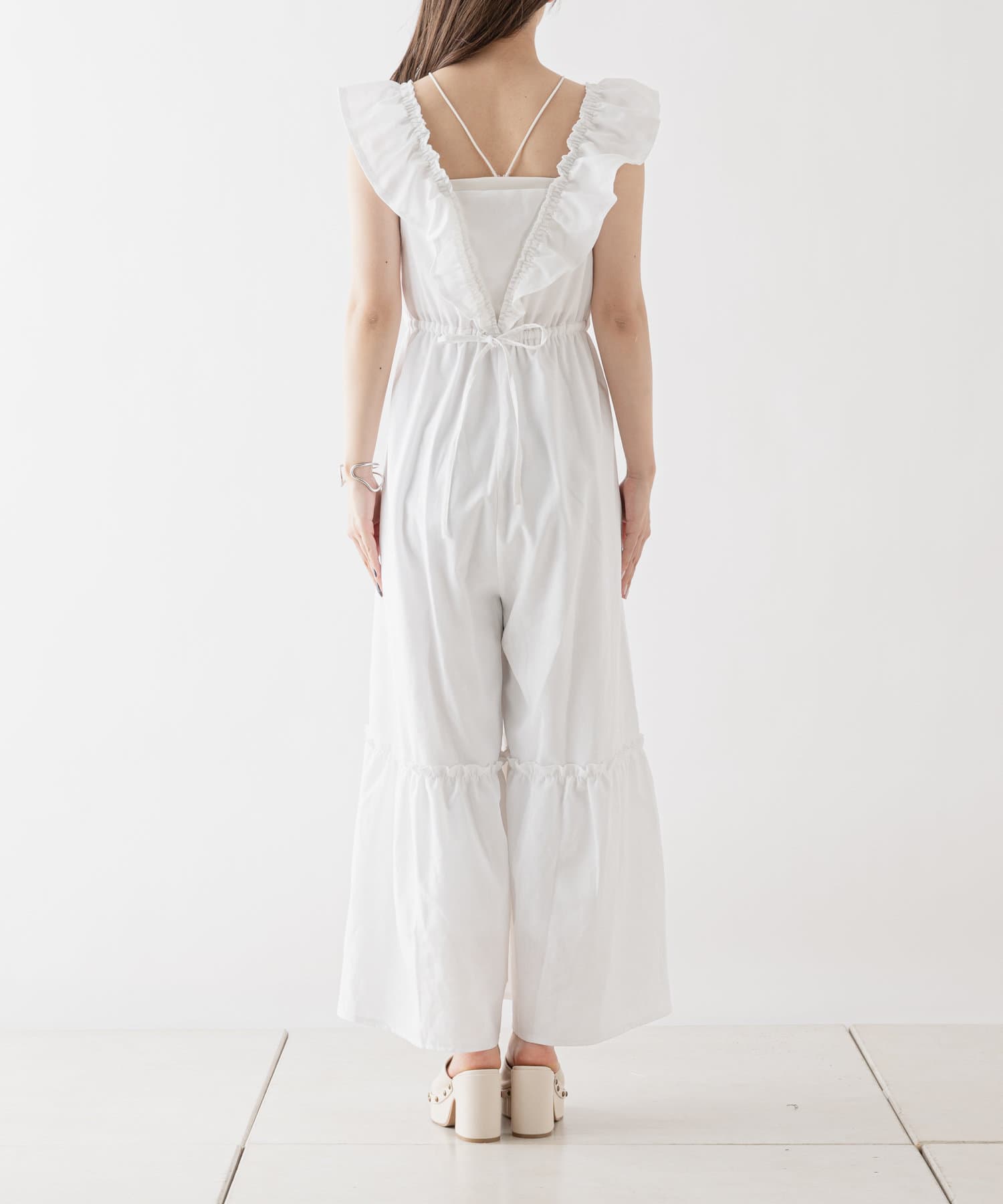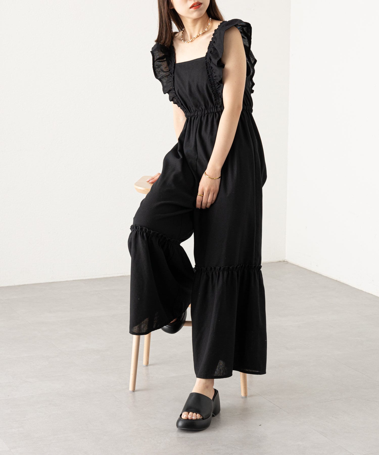 大胆なフリルが目を惹くサロペ