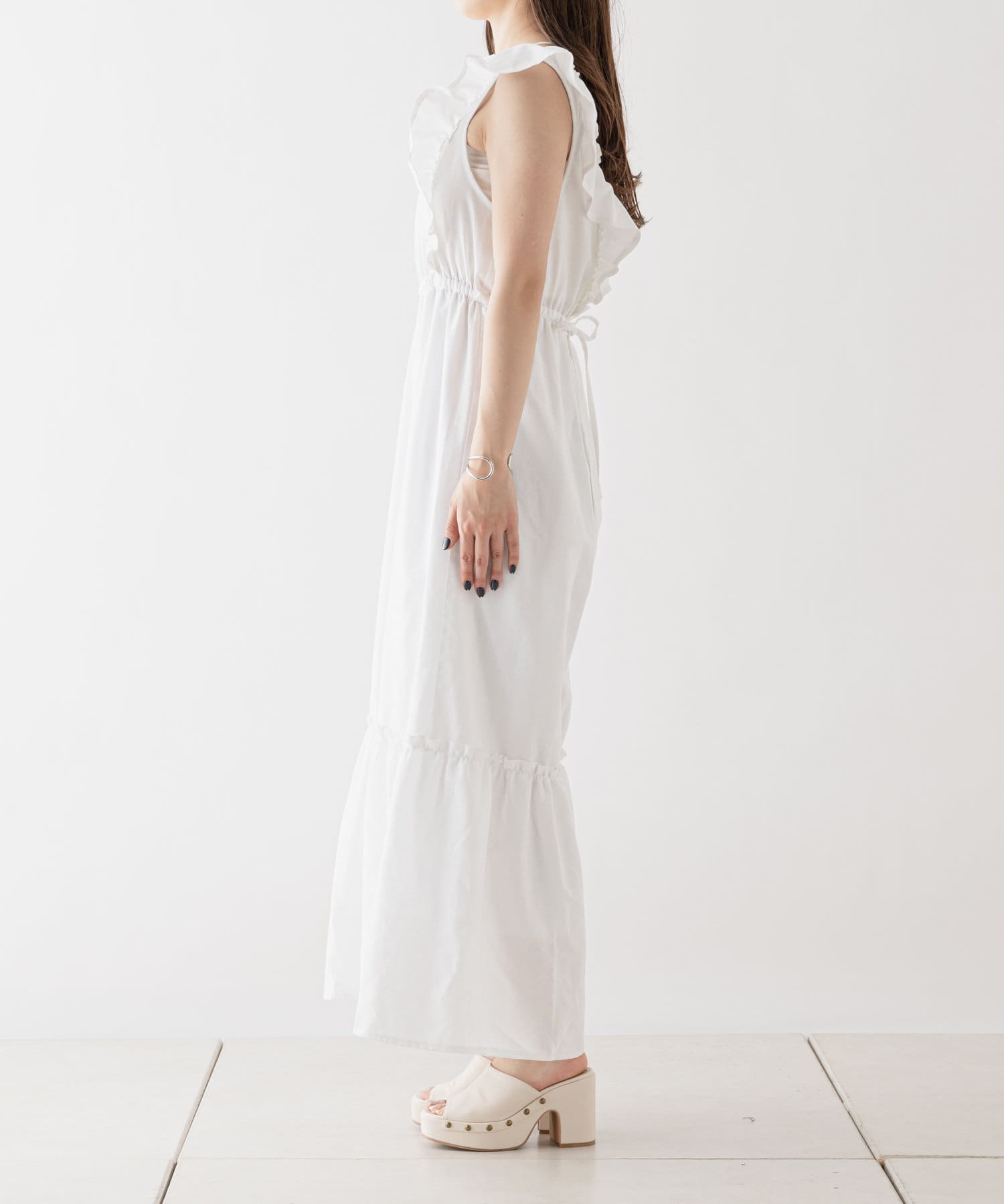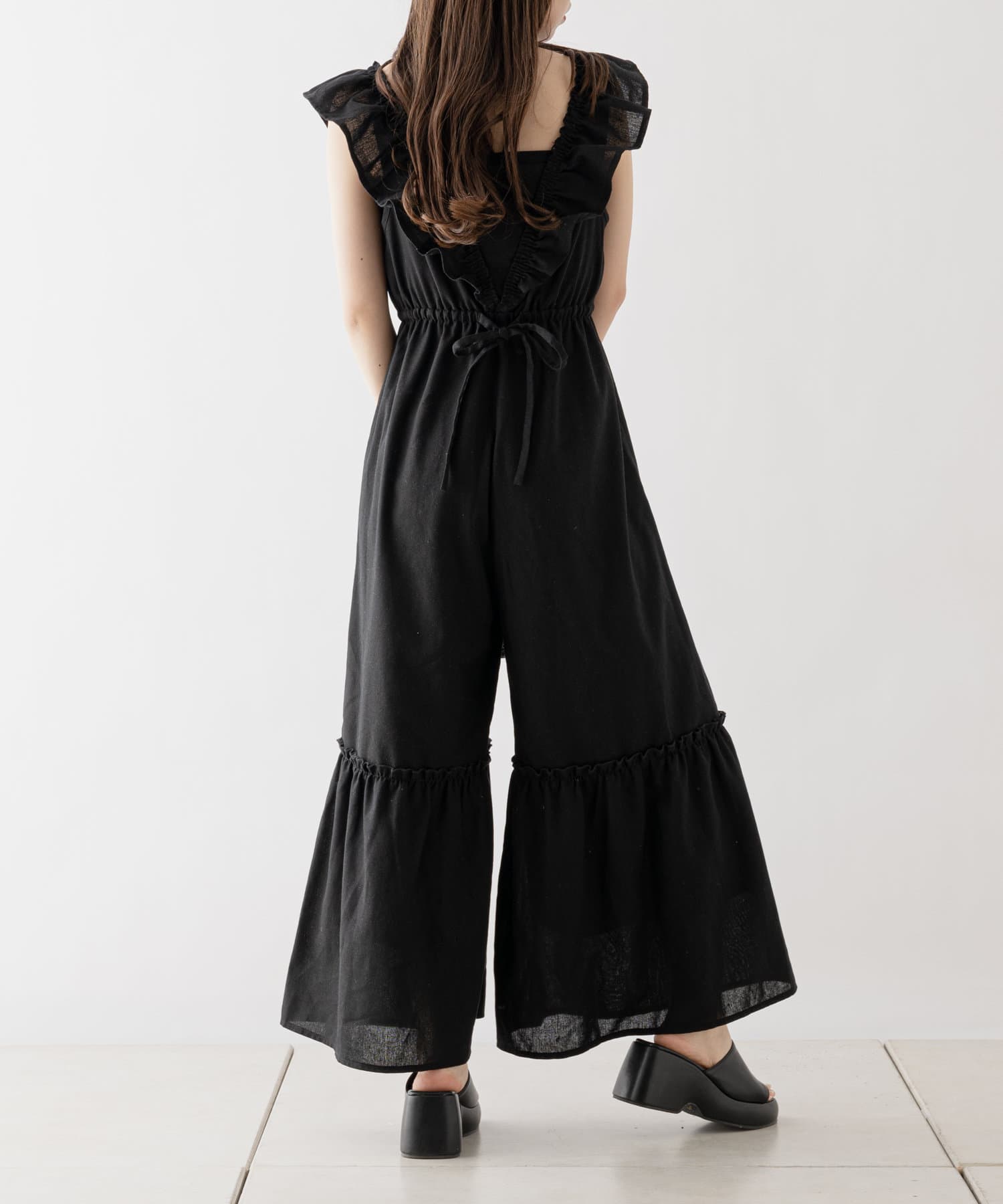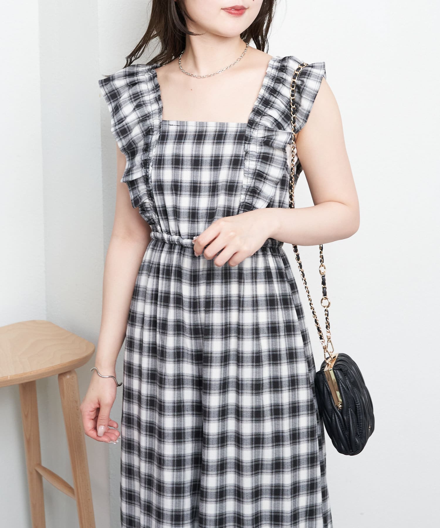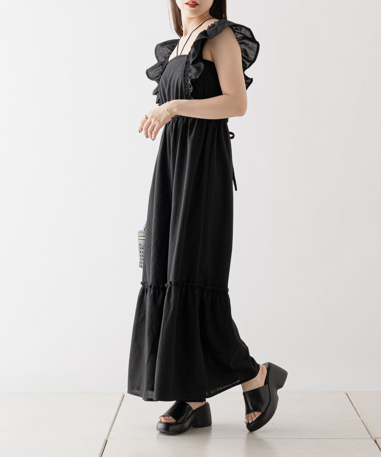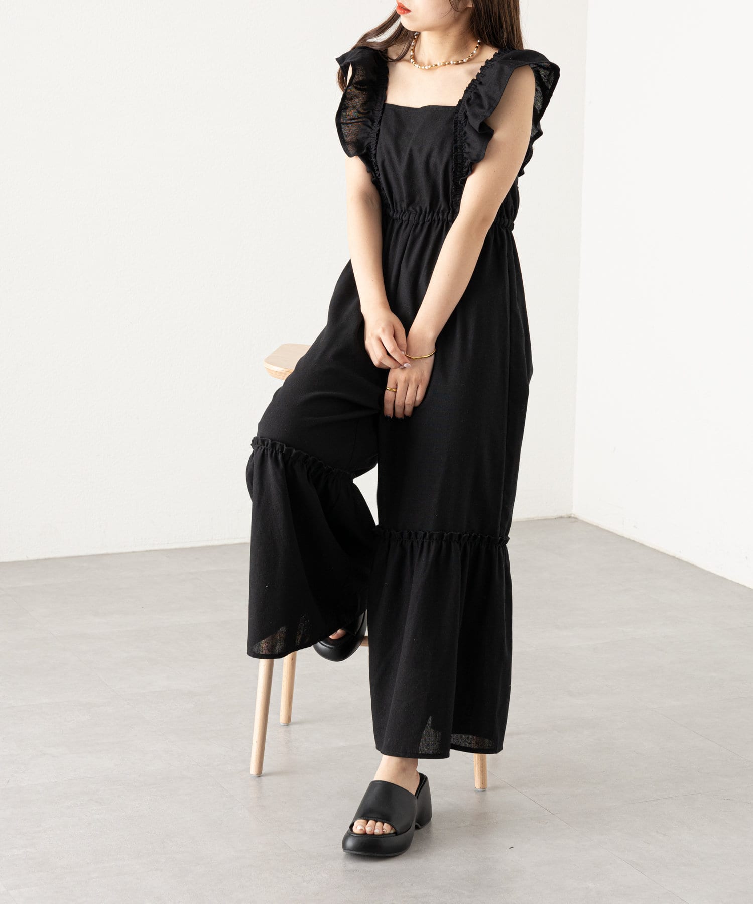 大胆なフリルが目を惹くサロペ