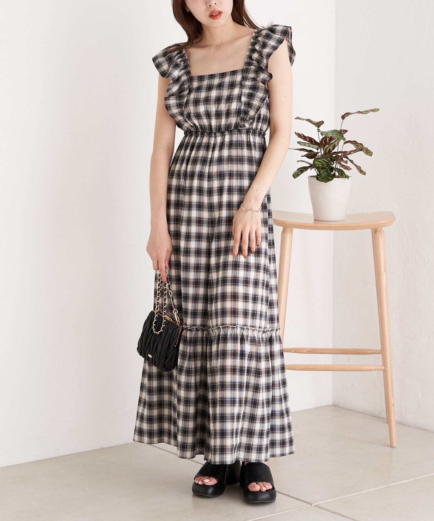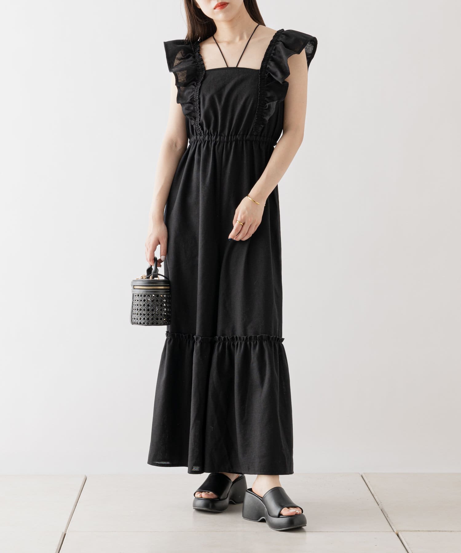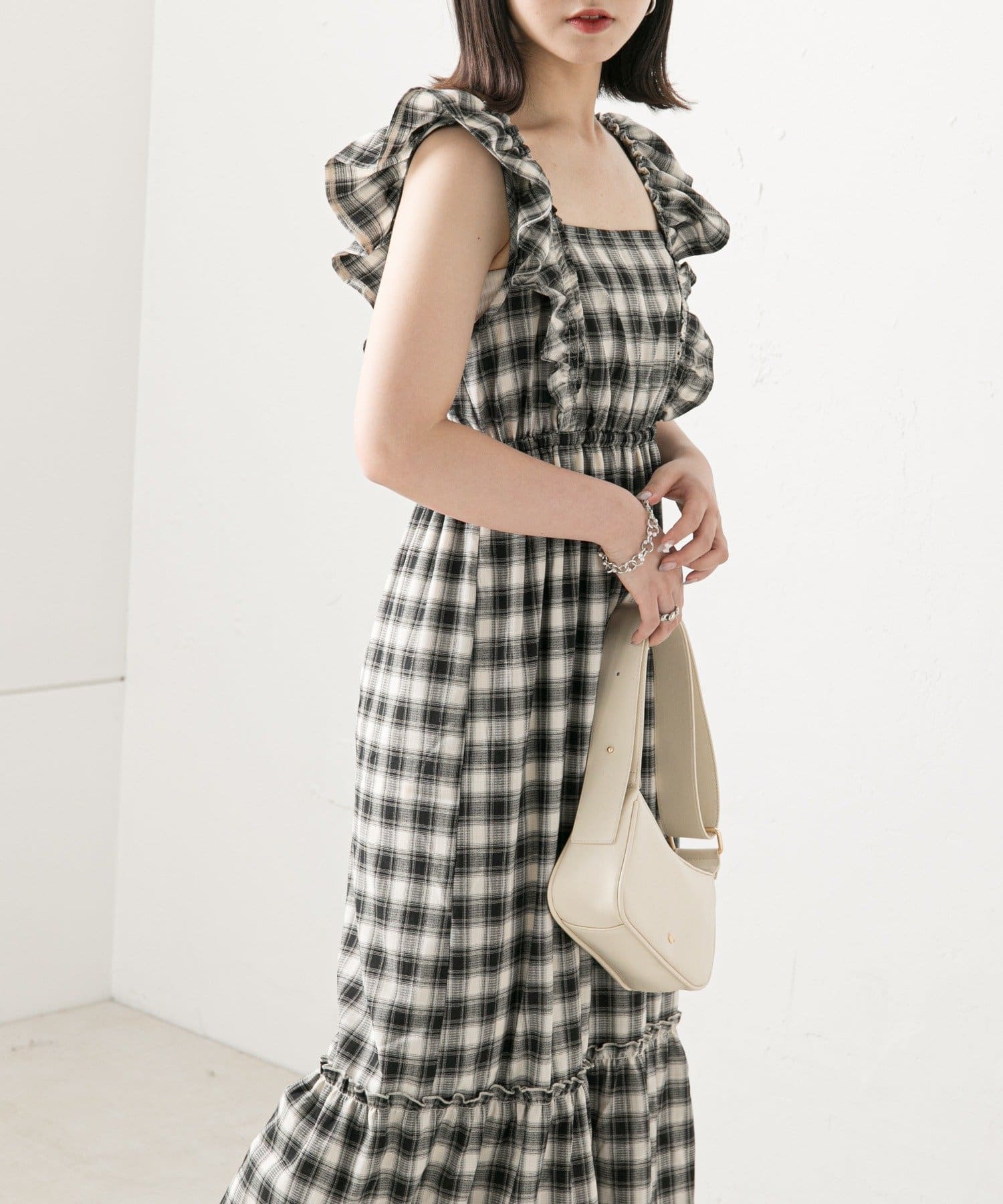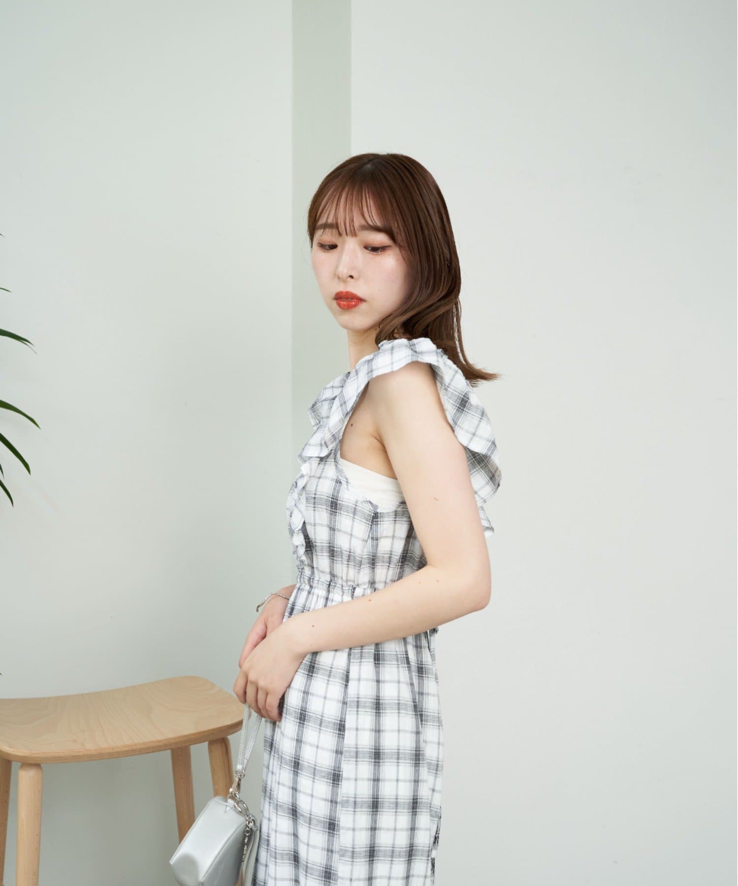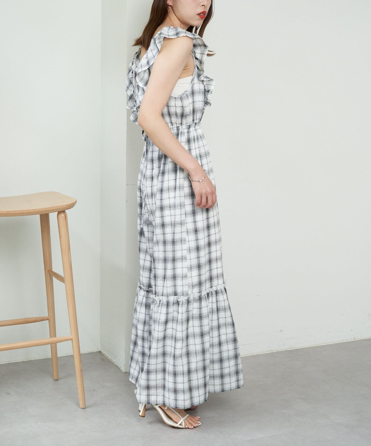 大胆なフリルが目を惹くサロペ