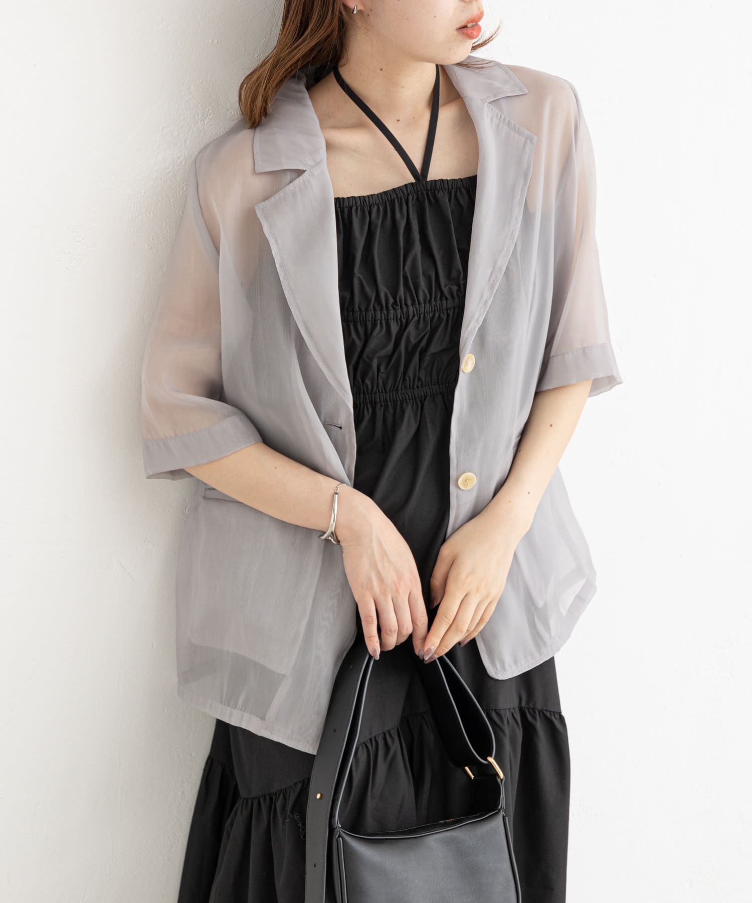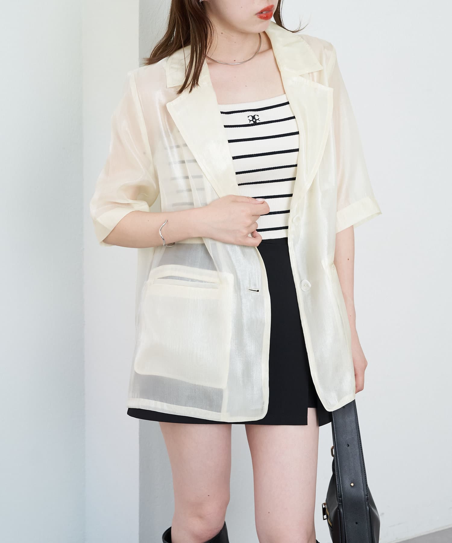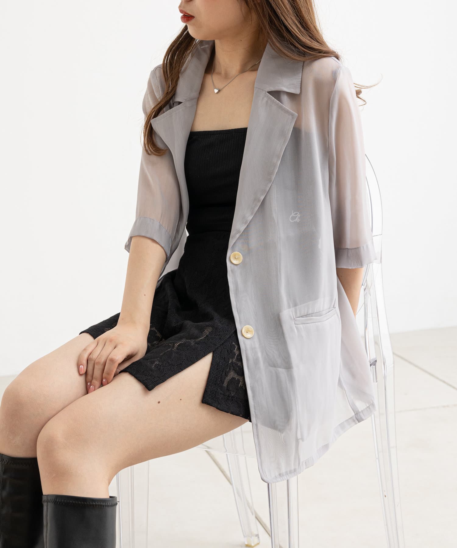 ・程よいシアー素材が女性らしく着こなせるジャケット