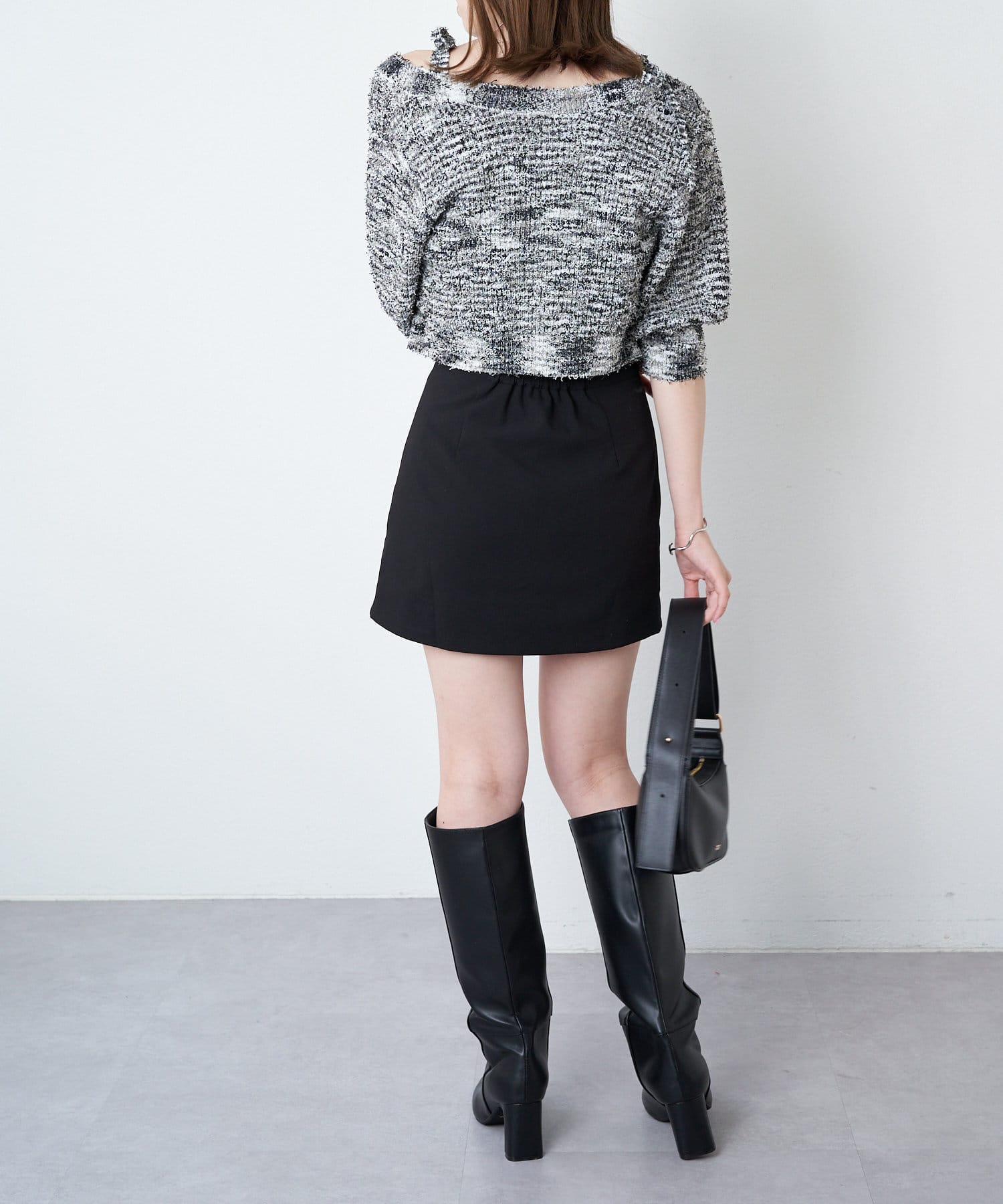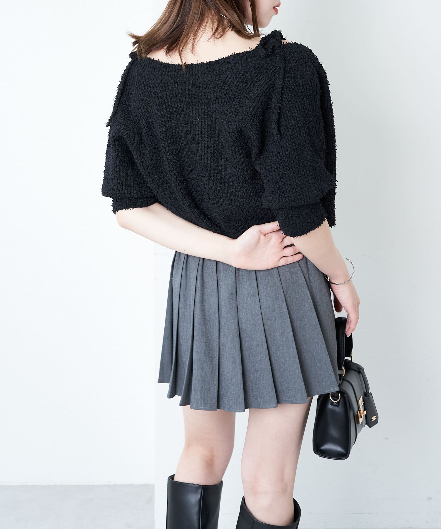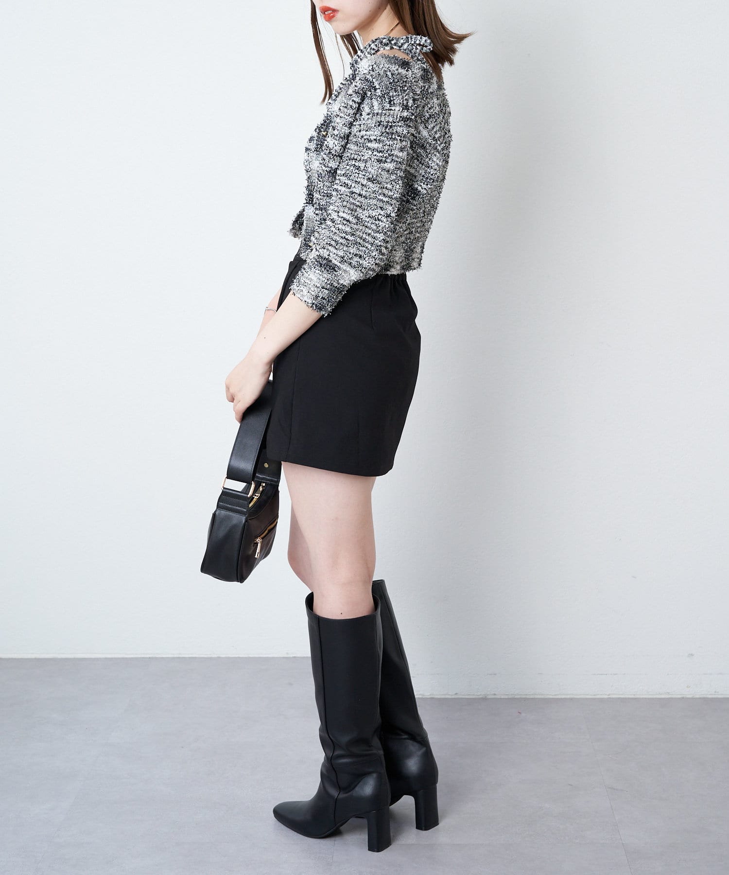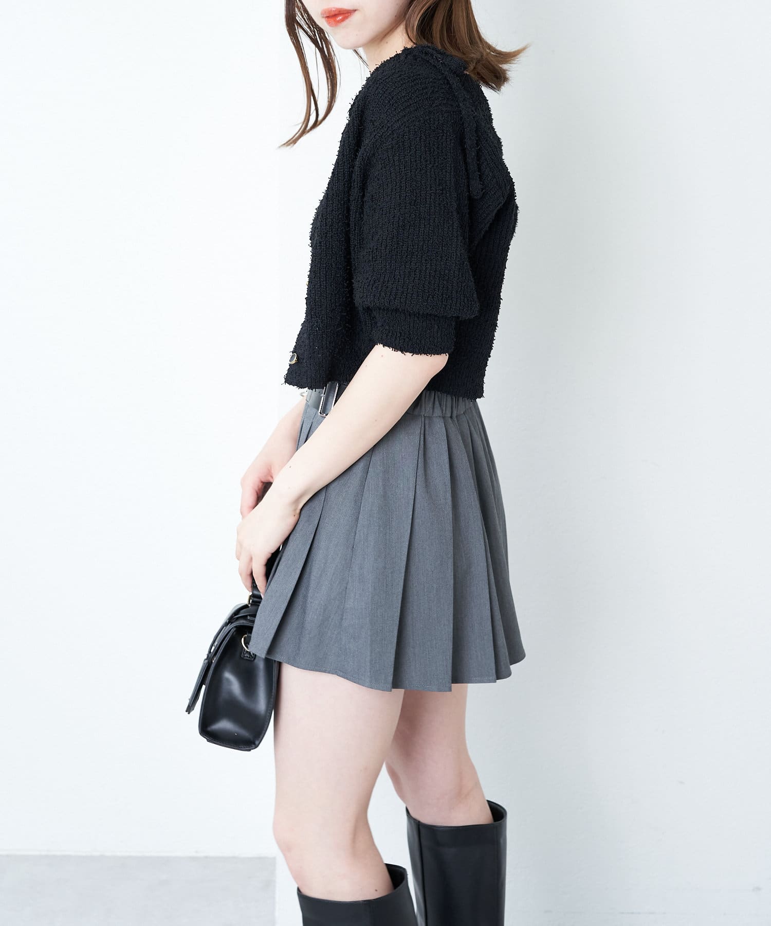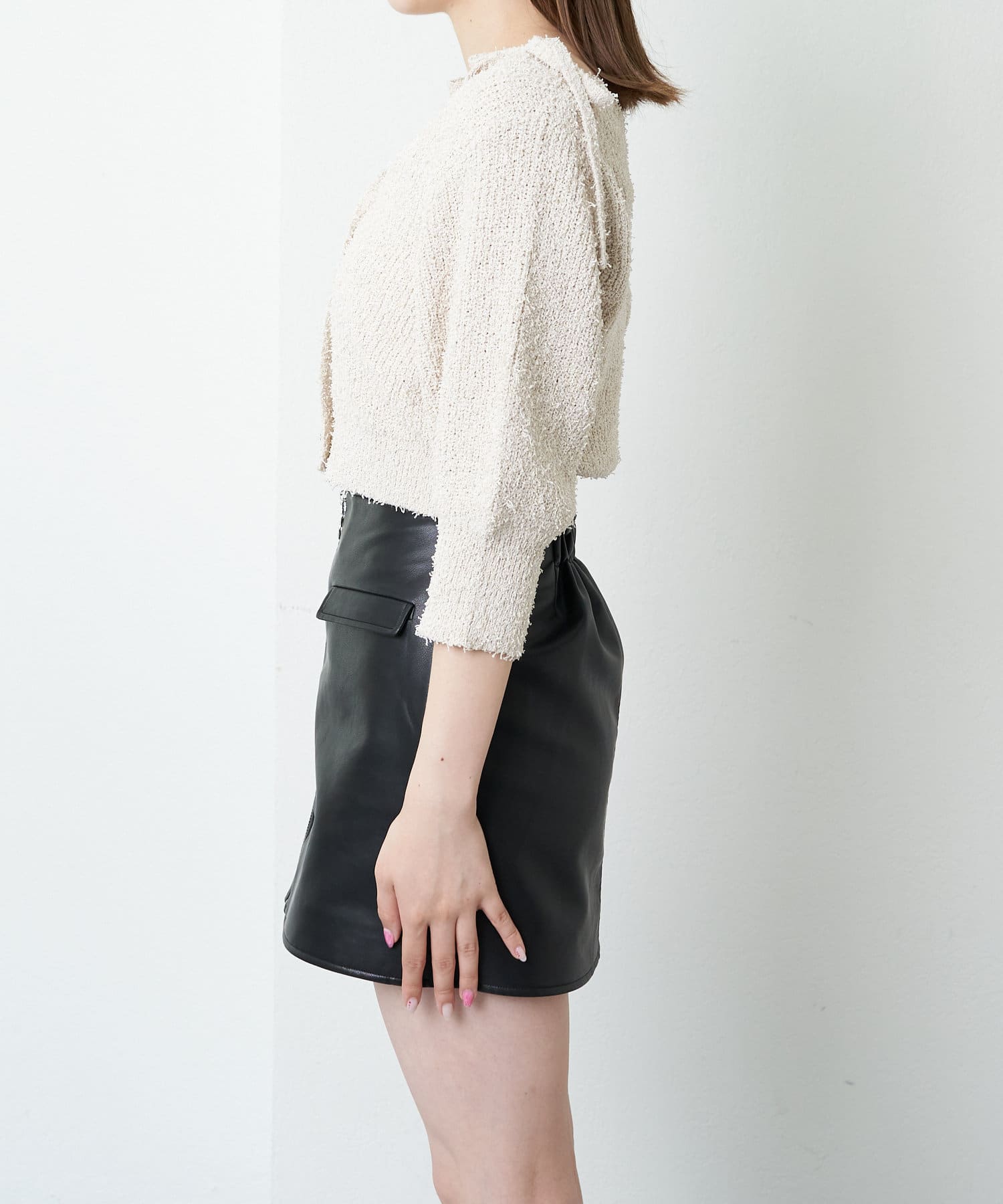 ・短丈デザインなのでミニボトム、ロングボトムどちらにもバランスよく合わせていただけます。