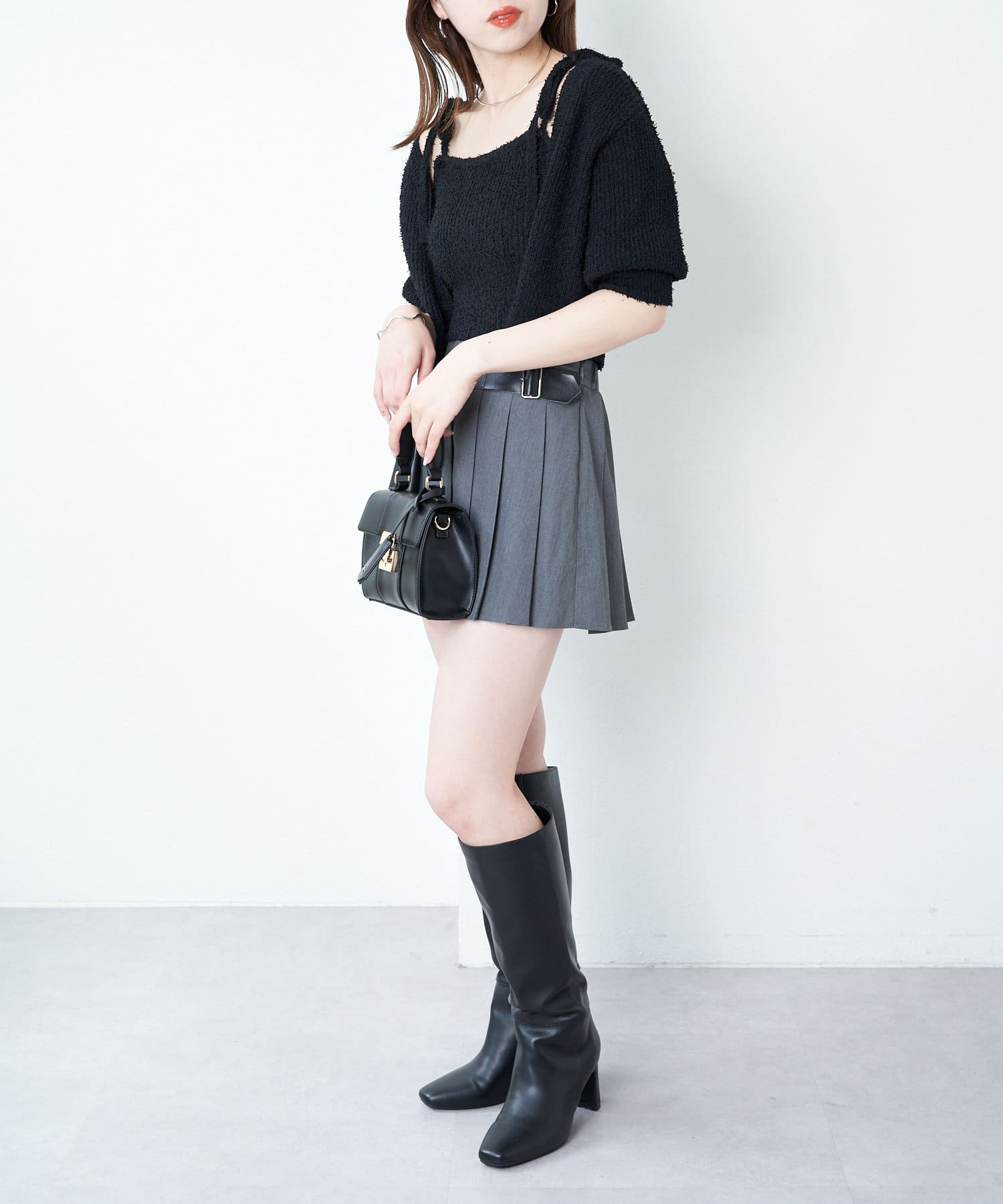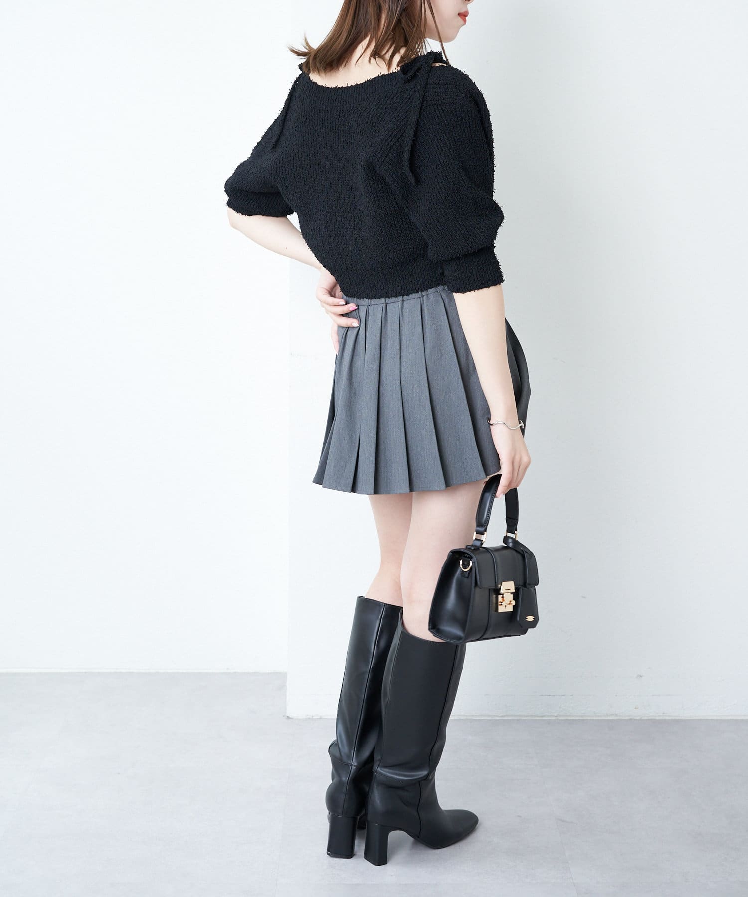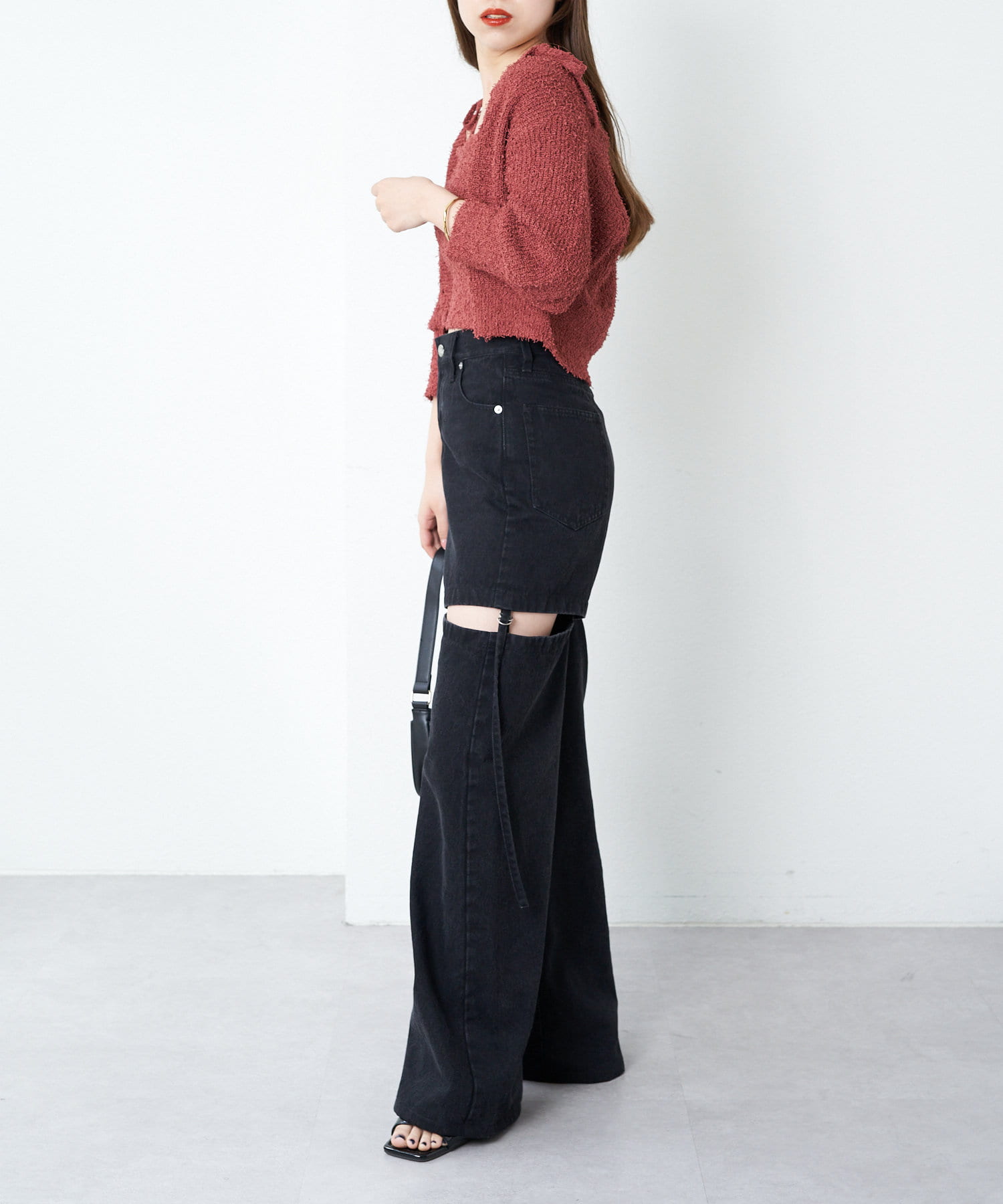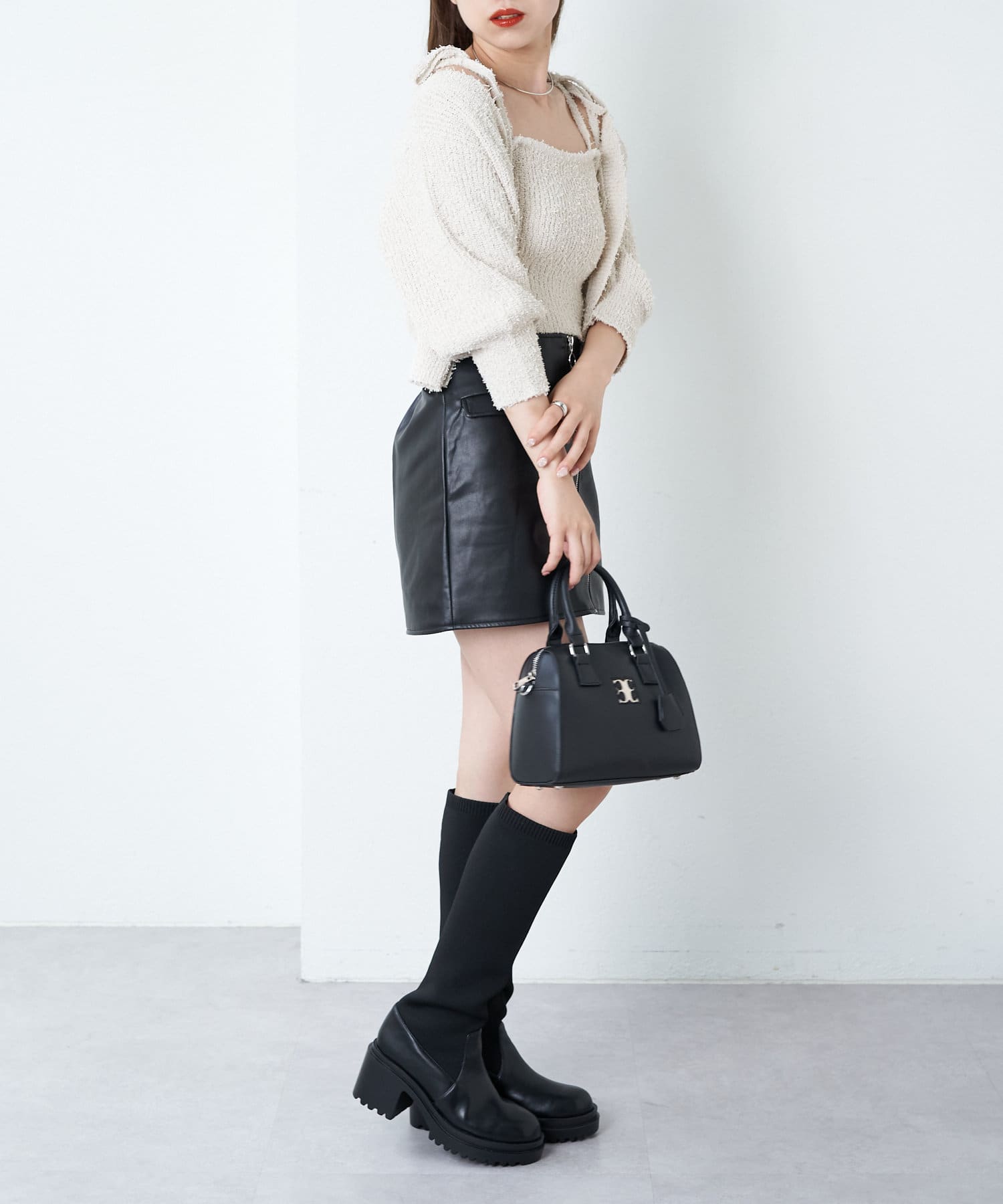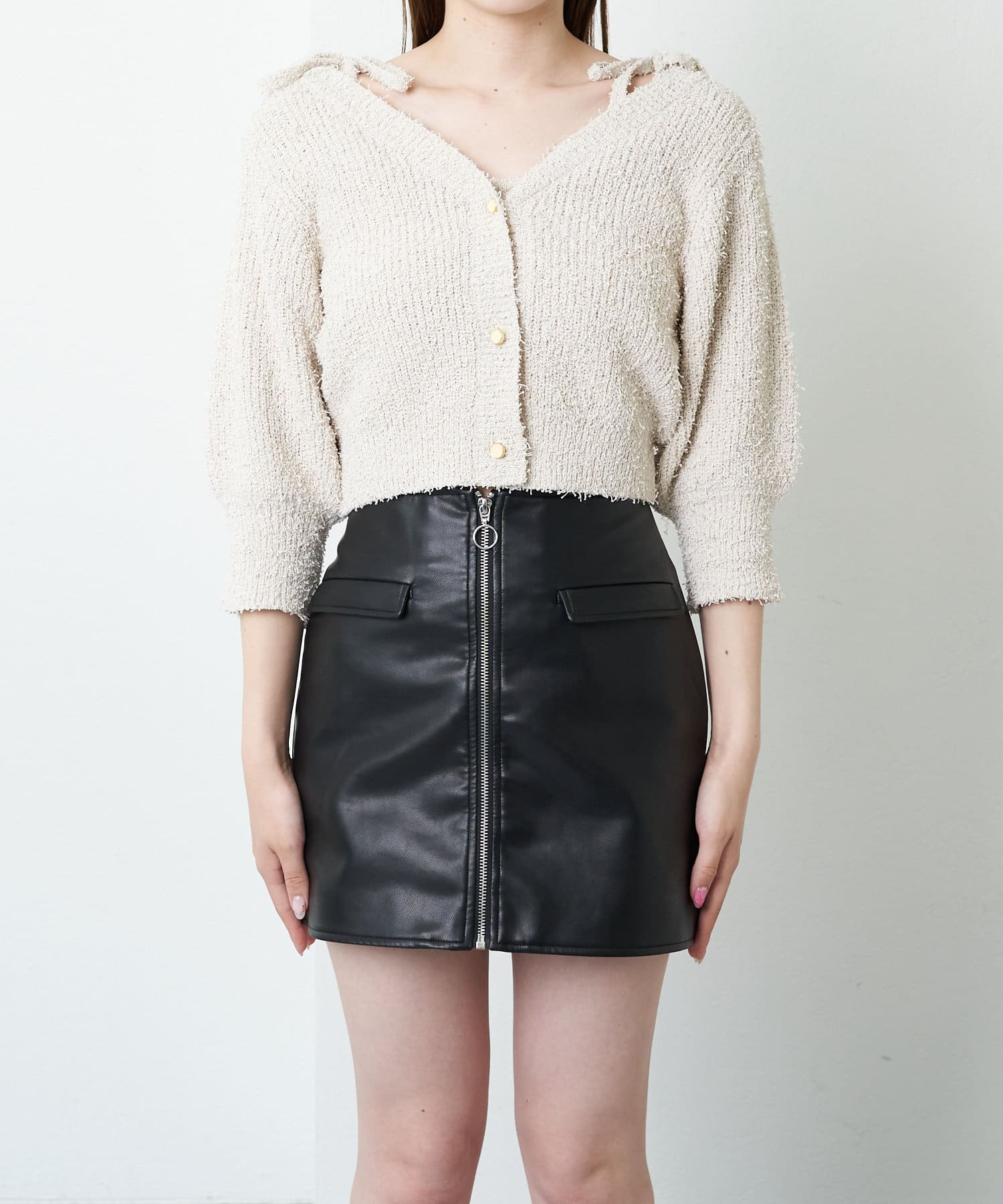 ・短丈デザインなのでミニボトム、ロングボトムどちらにもバランスよく合わせていただけます。