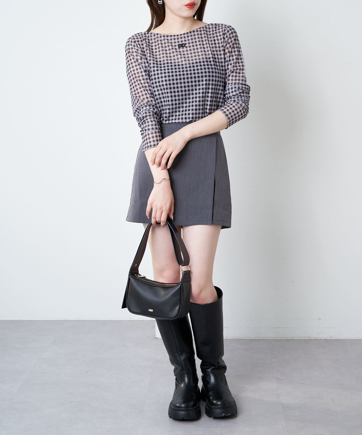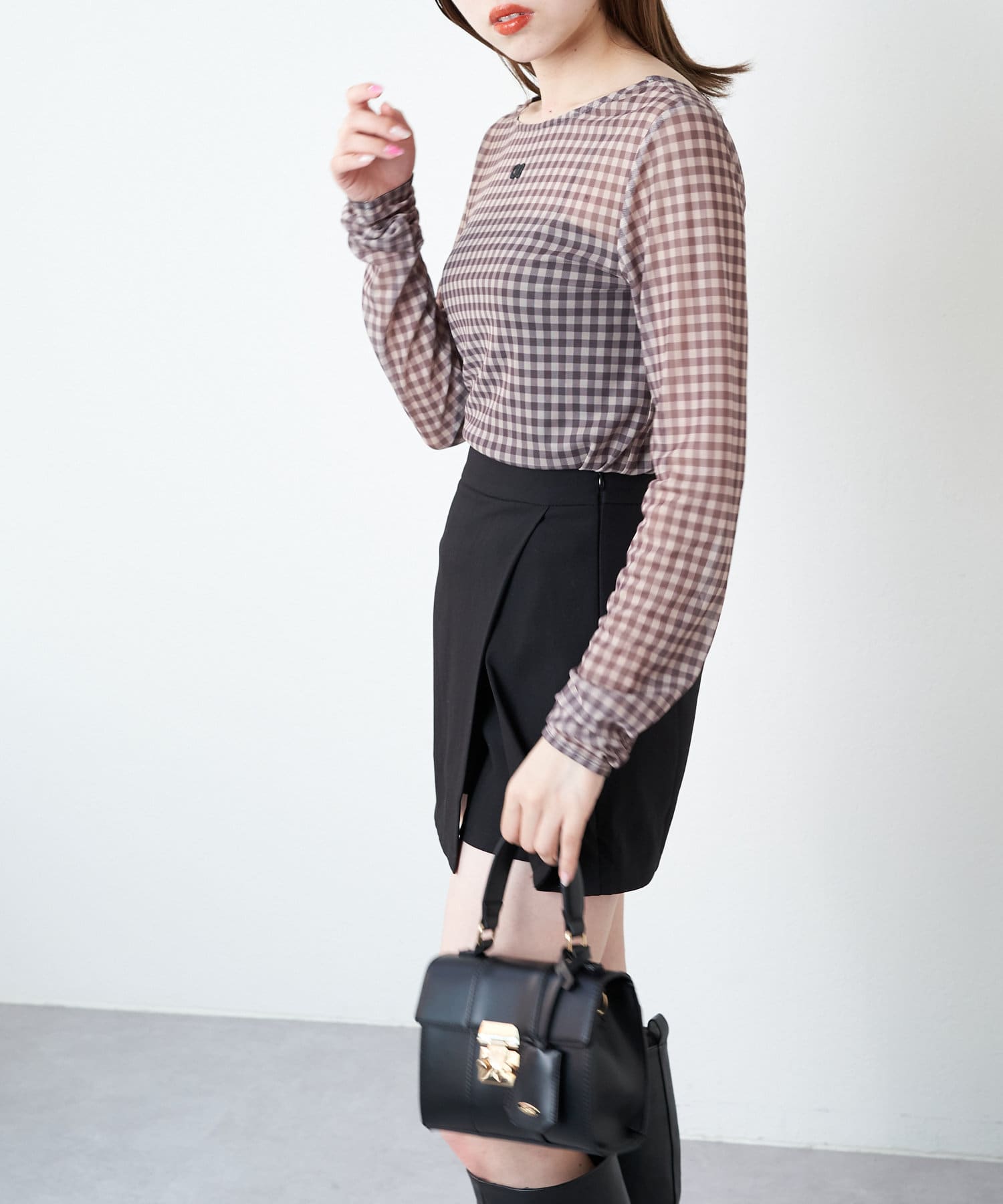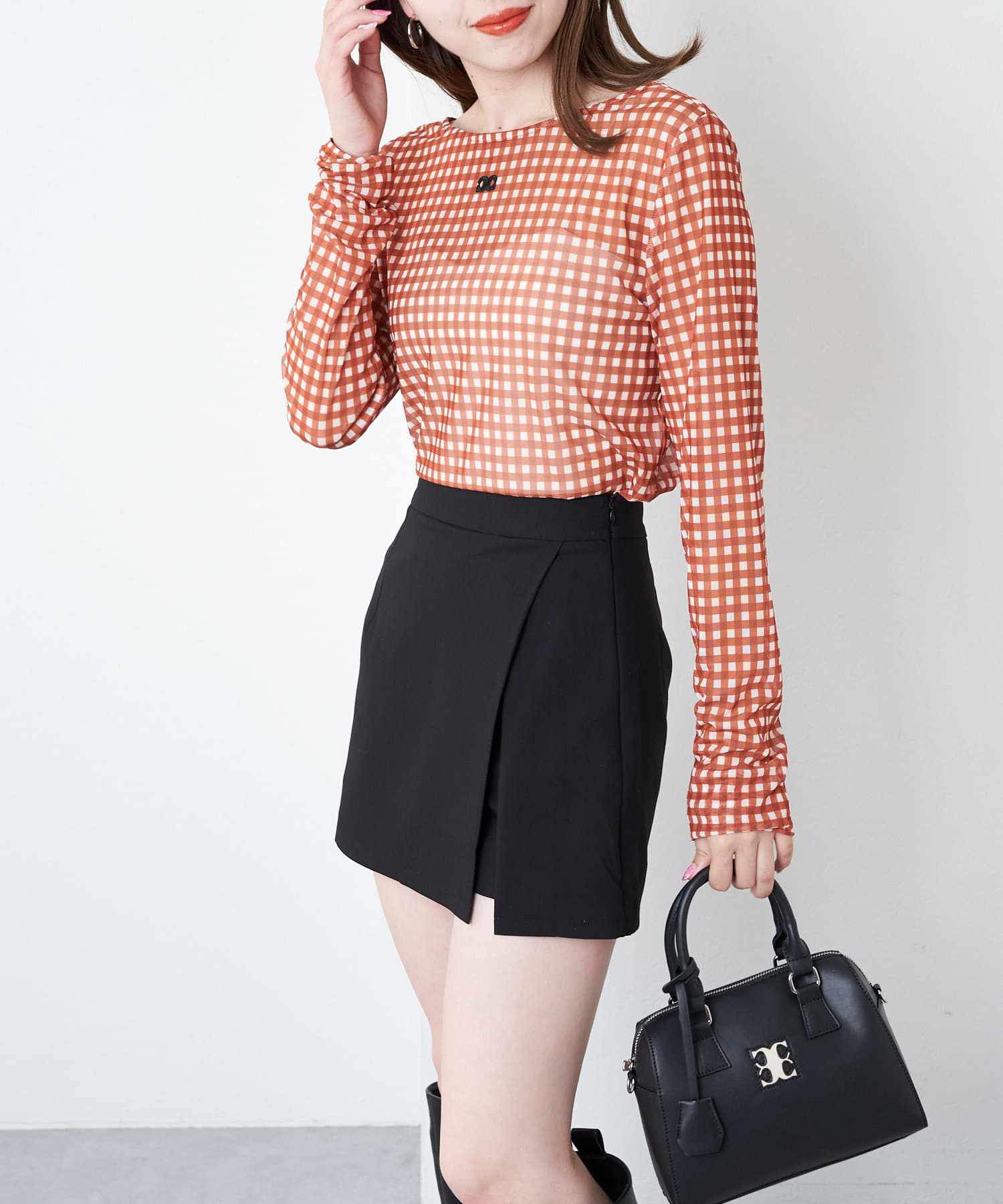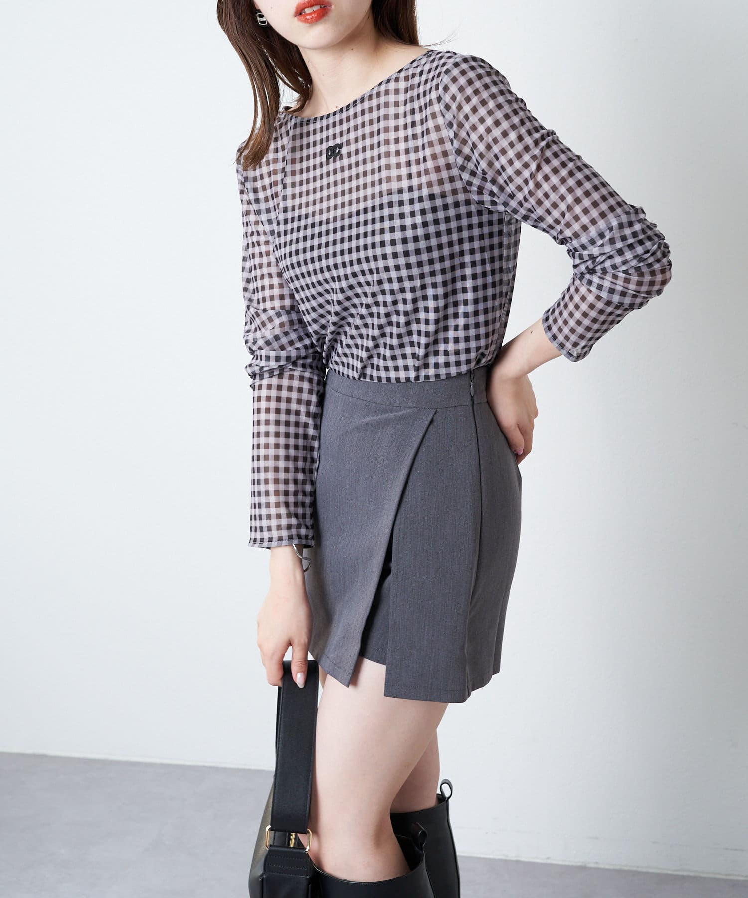 ・単色のチェックがらなので大人可愛く着こなしていただけます。