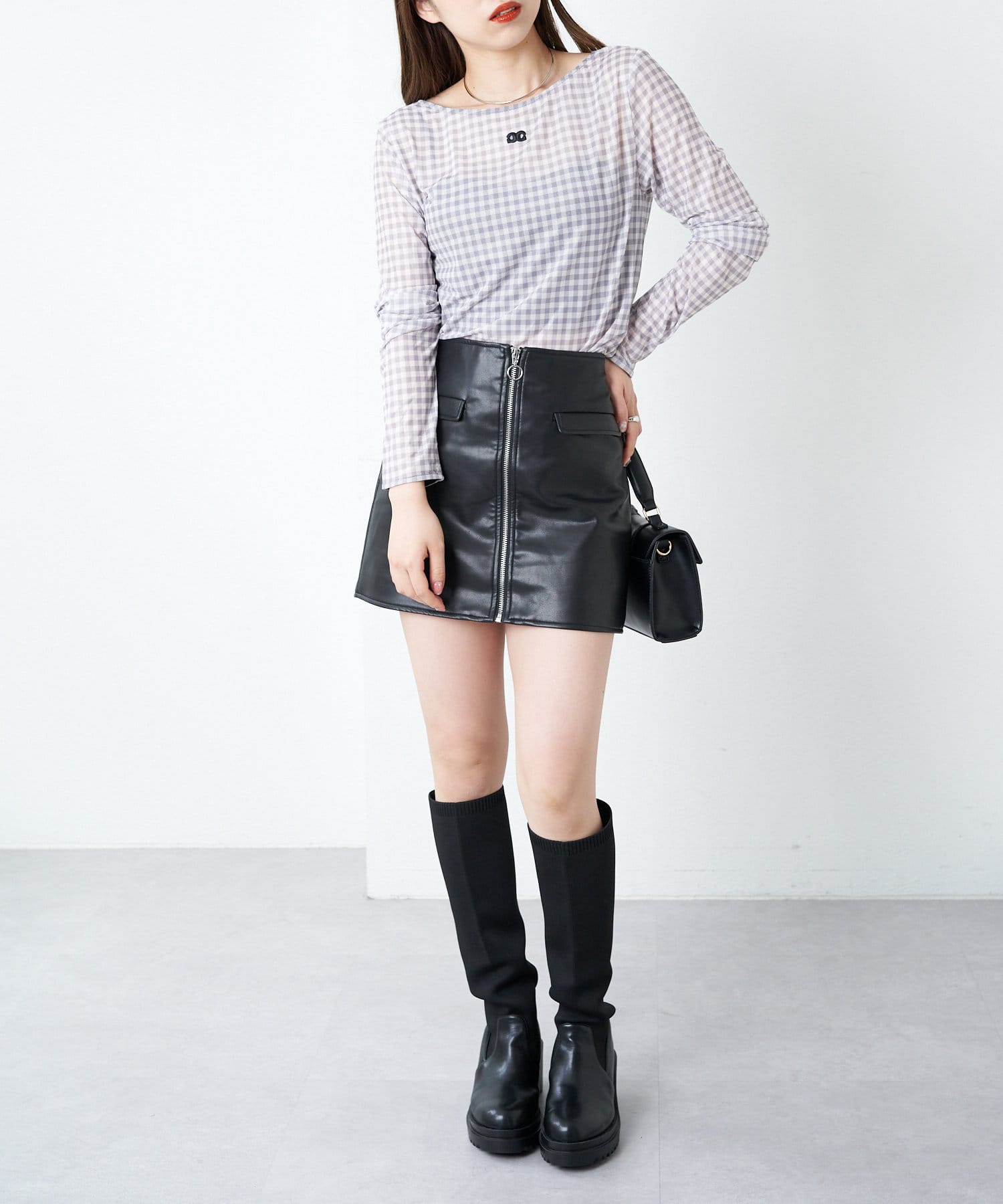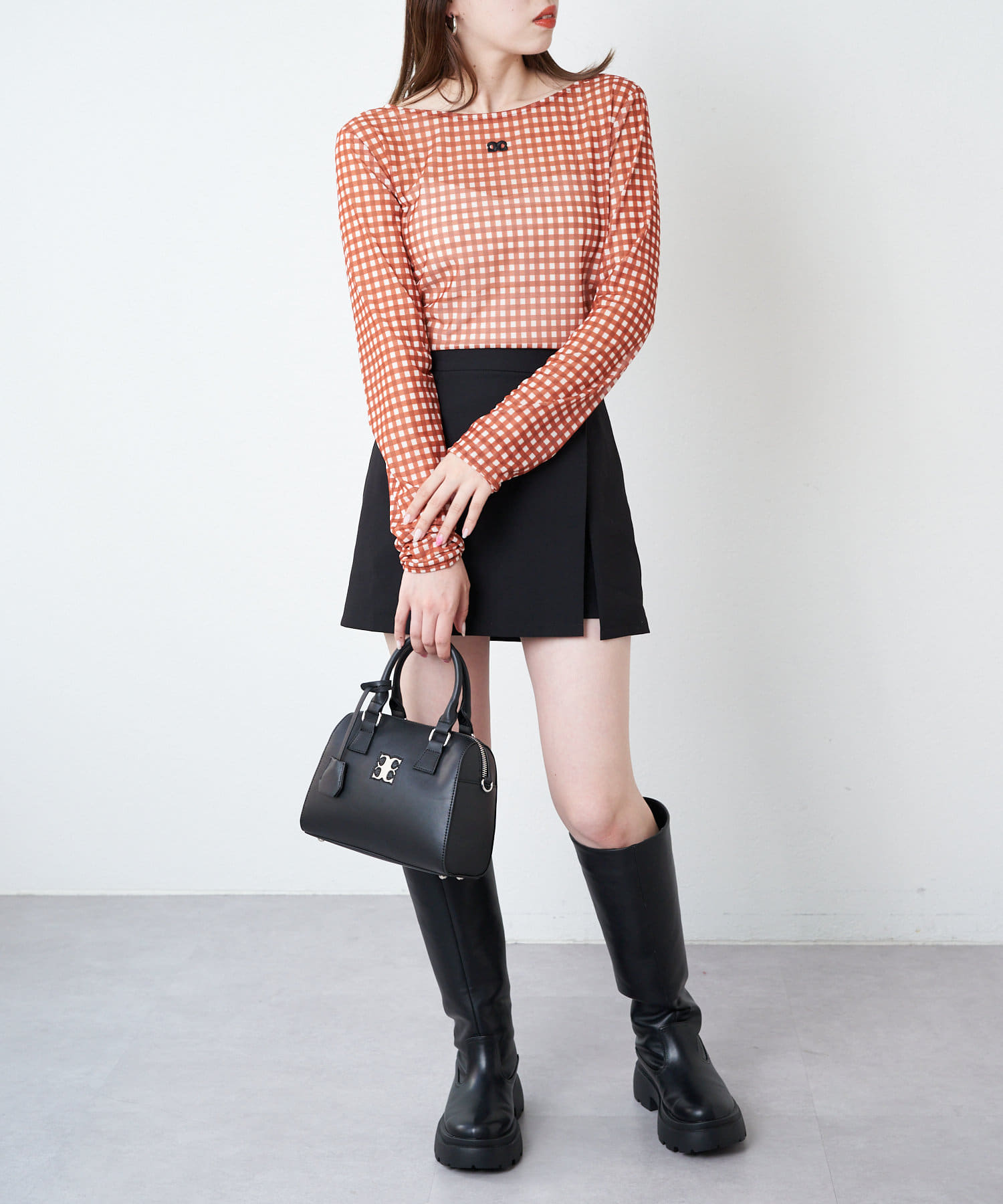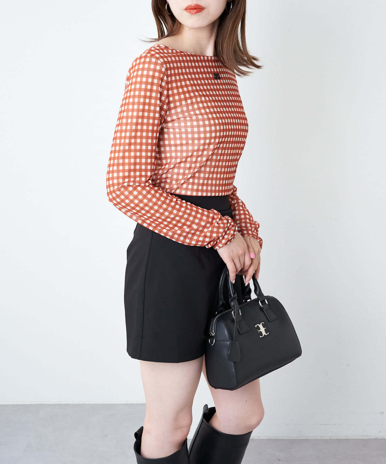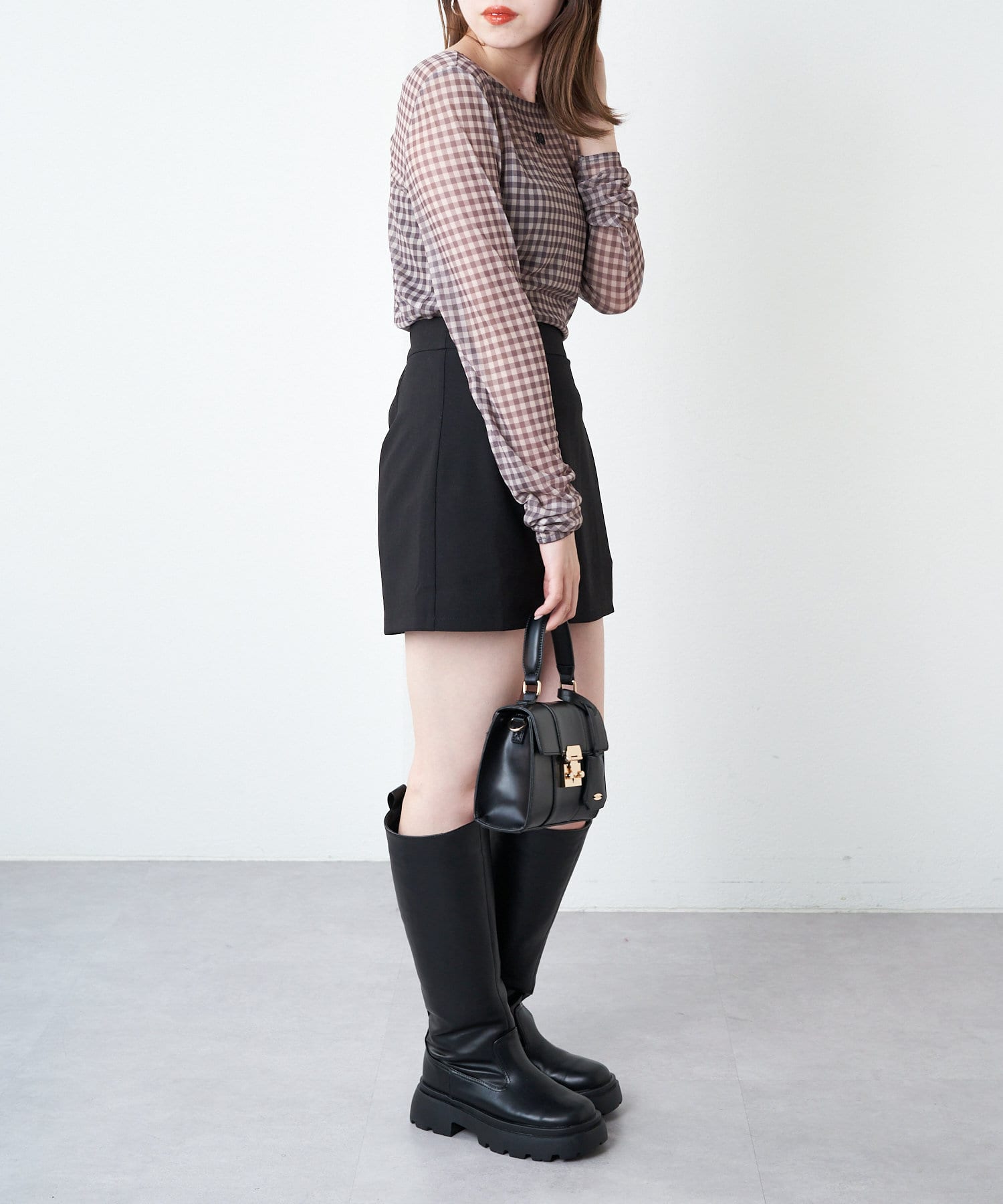 ・単色のチェックがらなので大人可愛く着こなしていただけます。