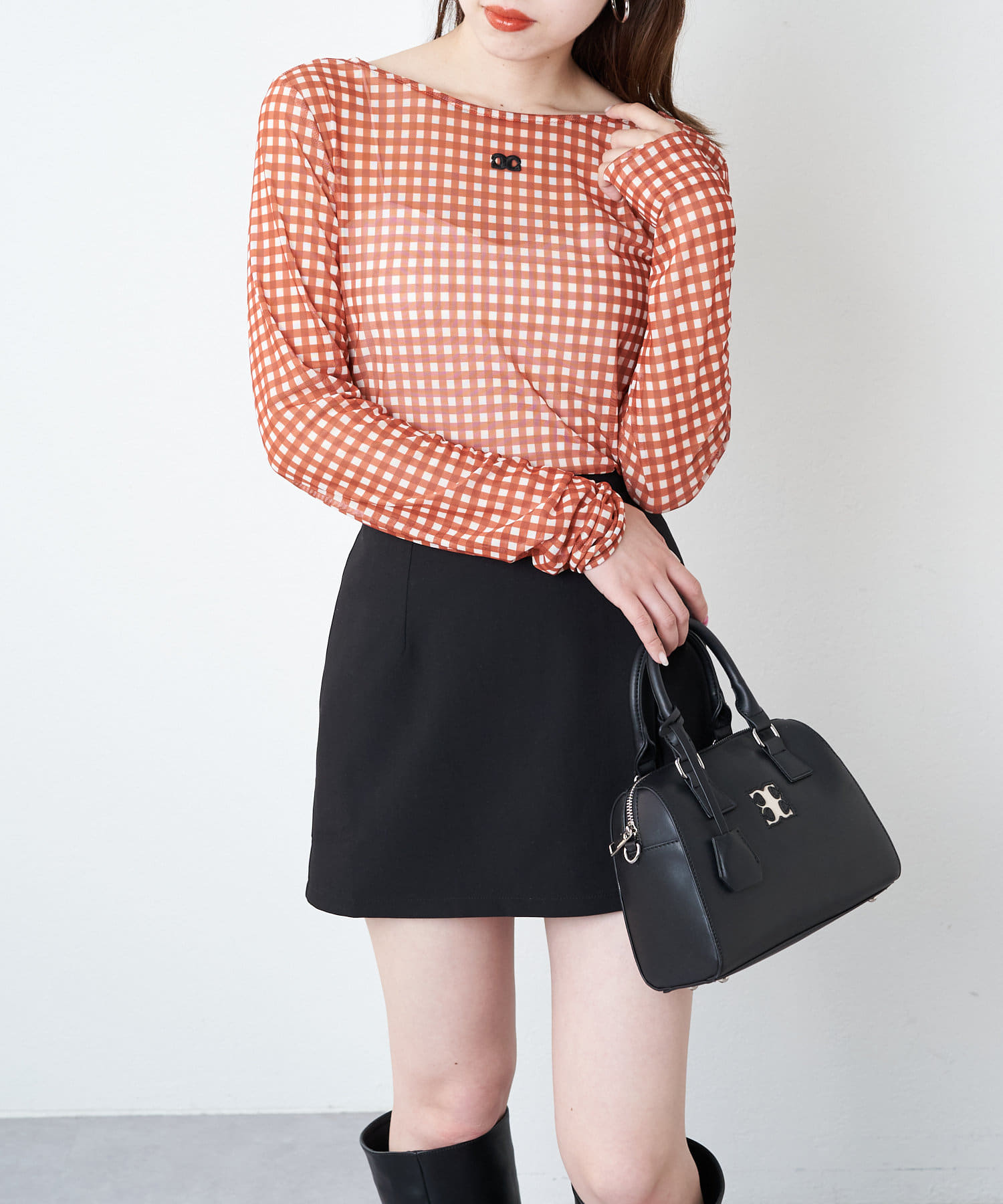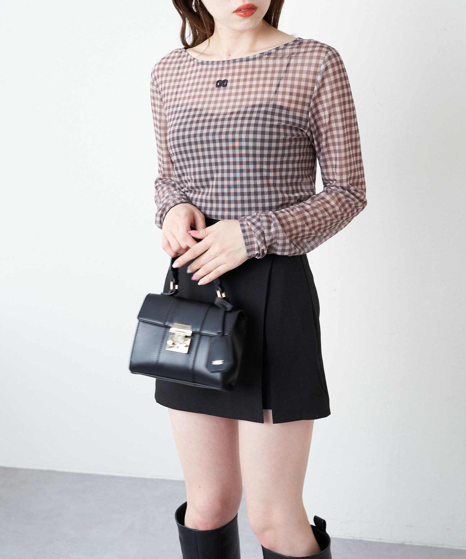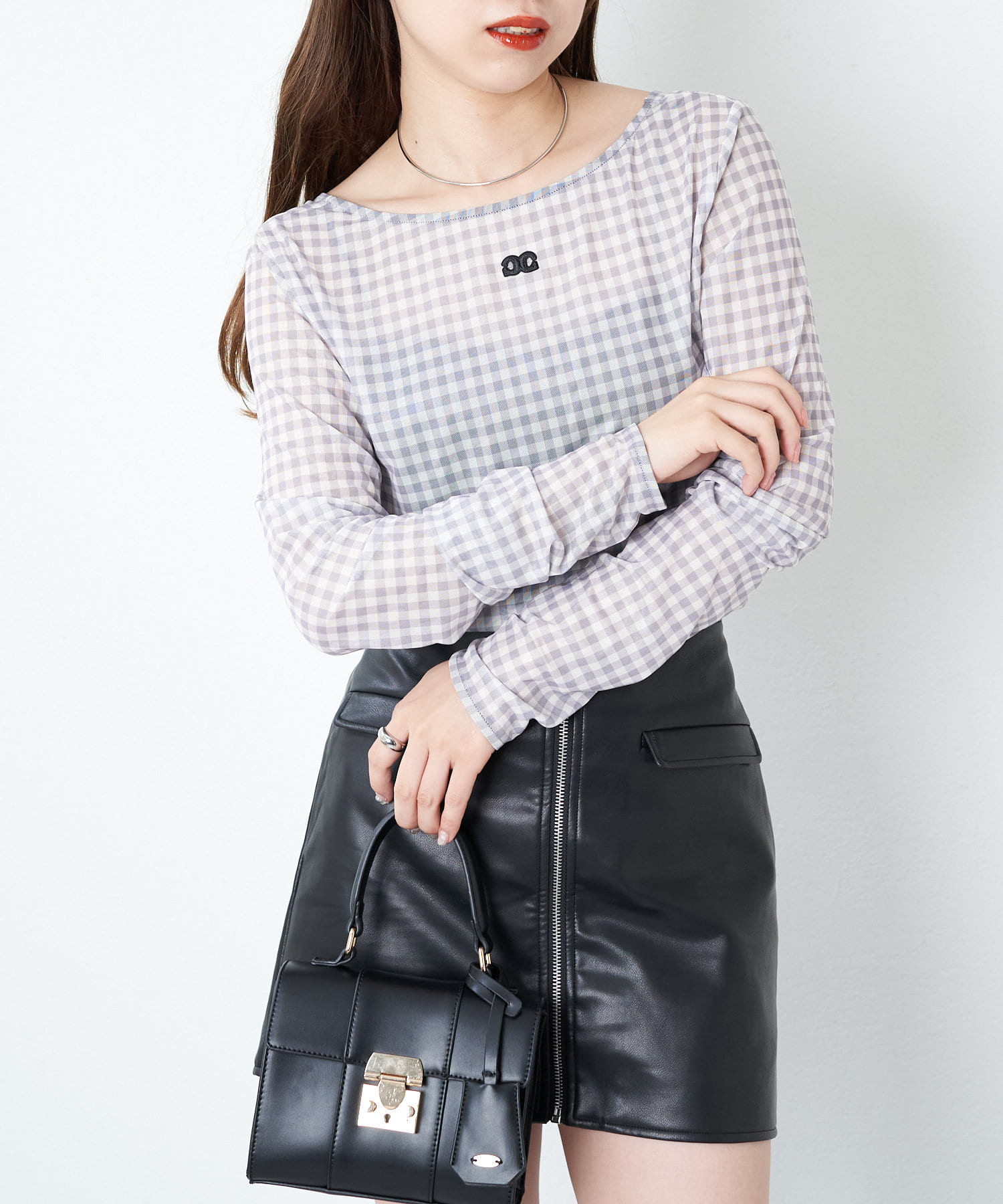 【Chico】チュールチェック刺繍ロンT