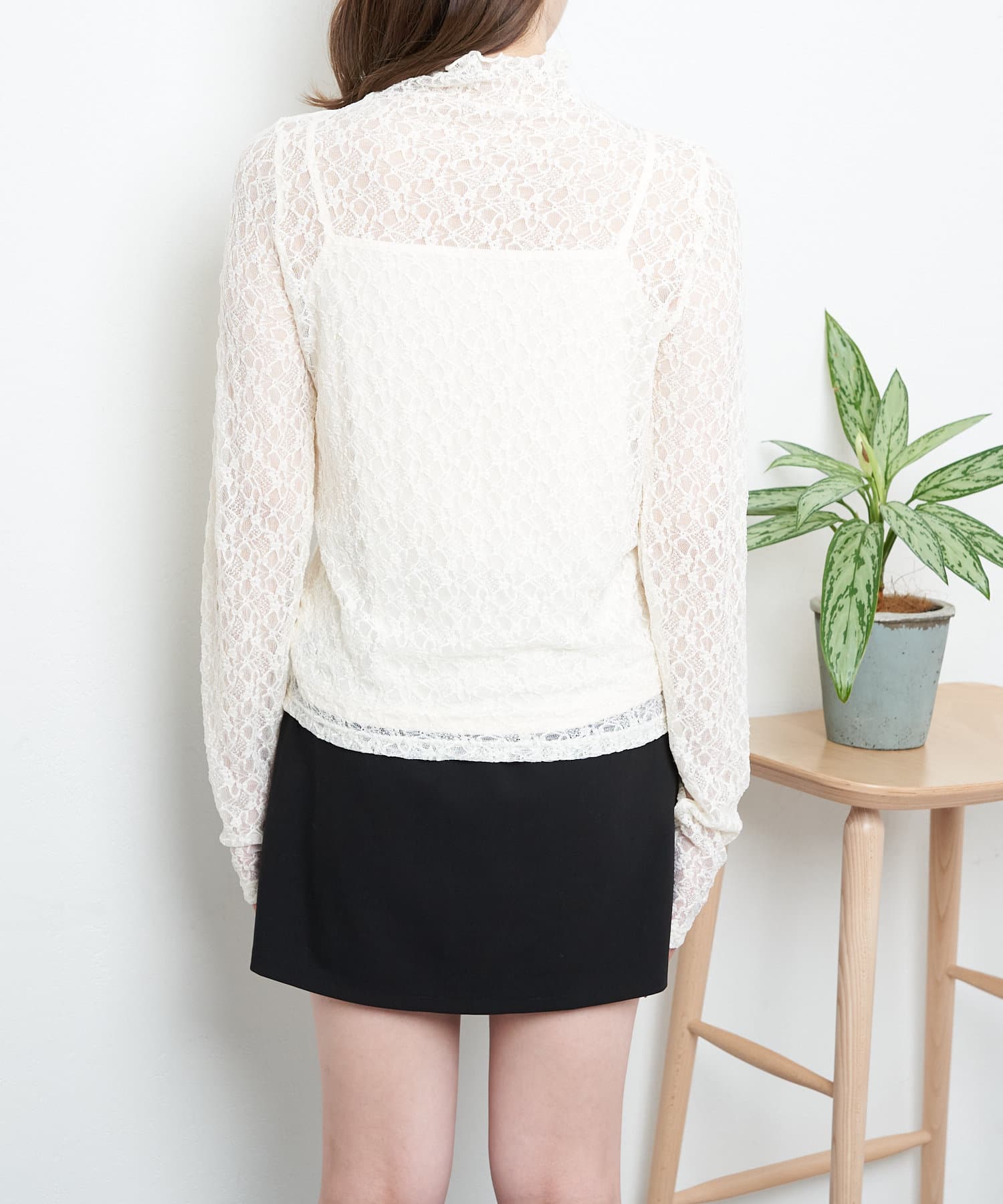 ・詰まりすぎてない首元で素材は柔らかいレースで着心地も抜群です。