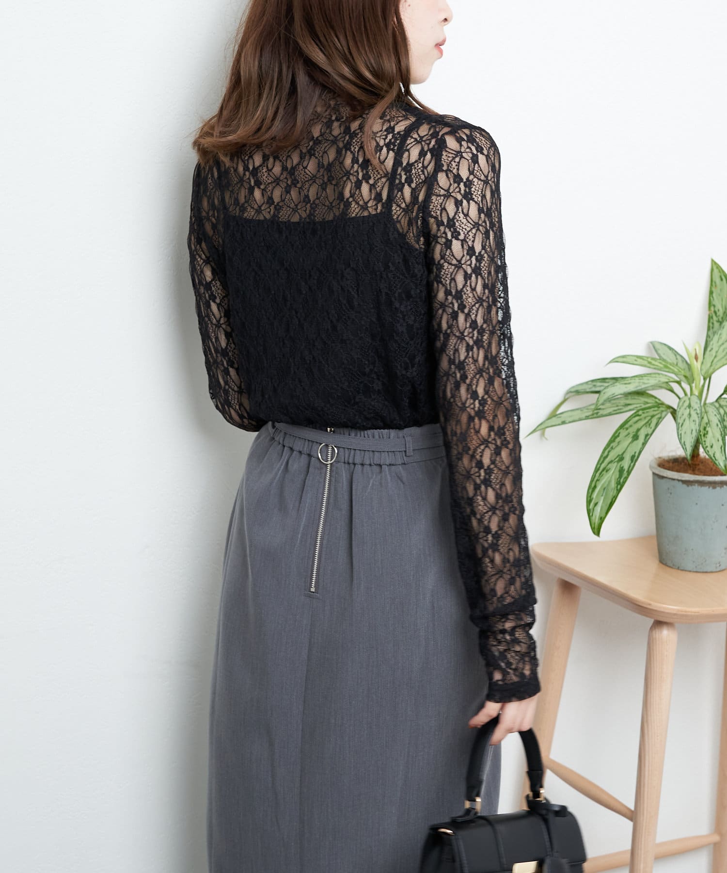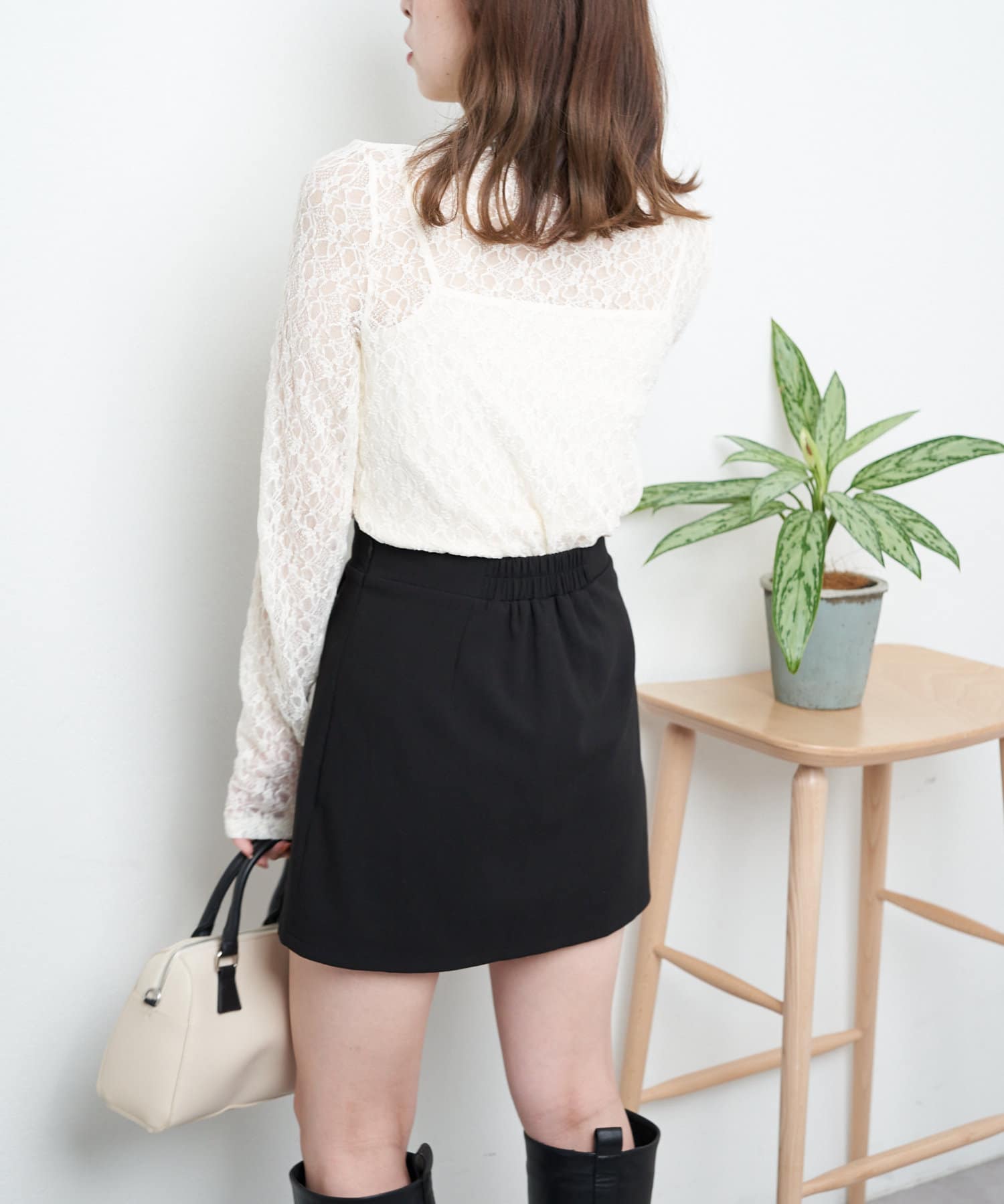 ・程よい透け感でトップスとして1枚でも着やすいデザイン。