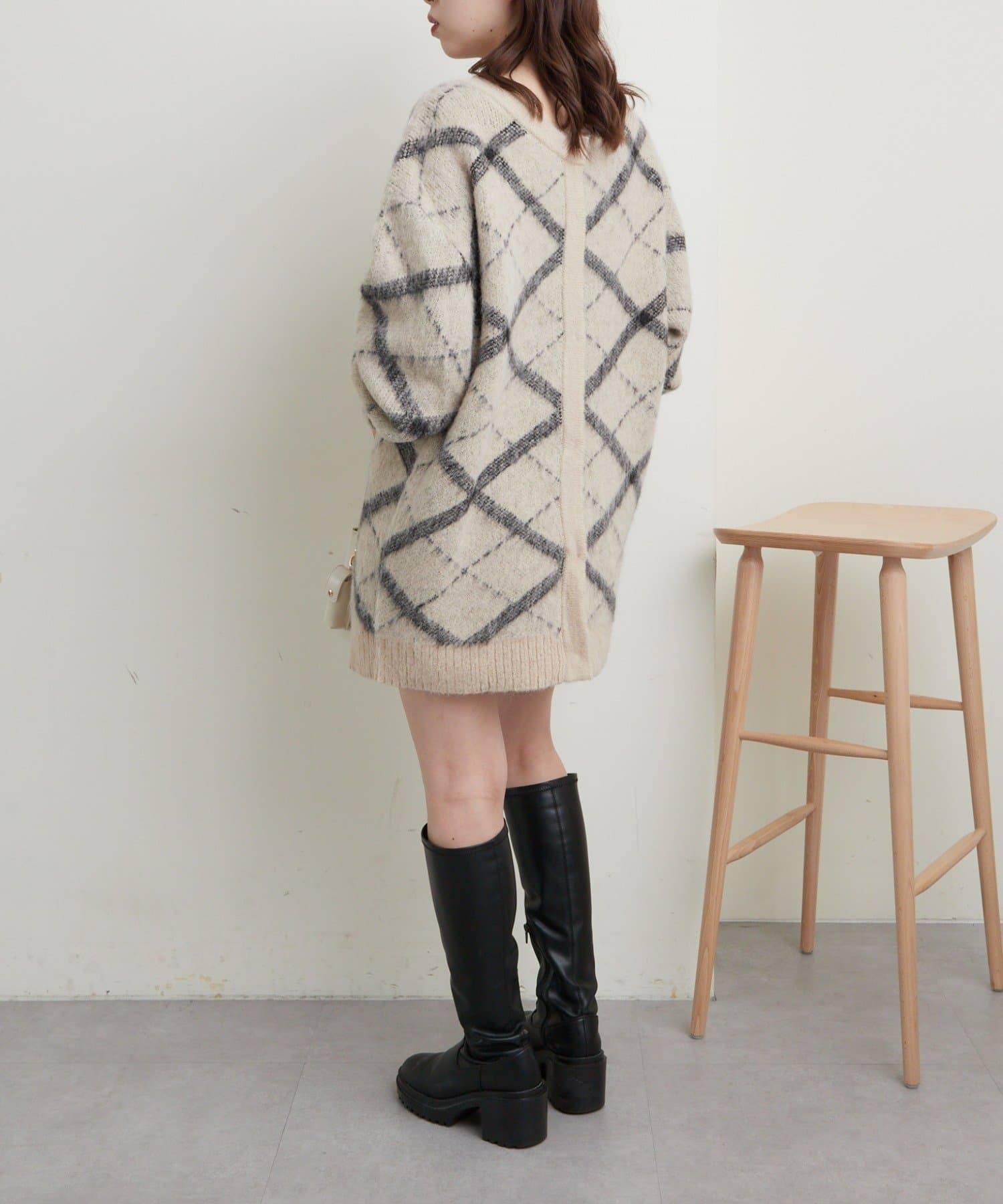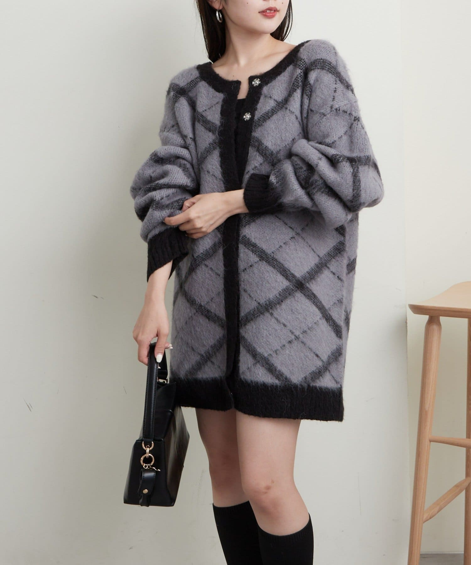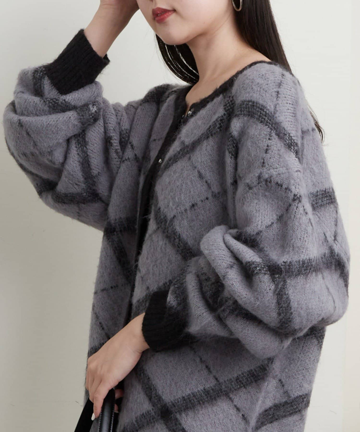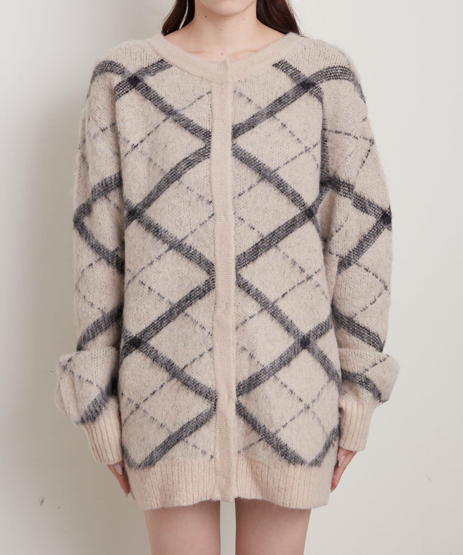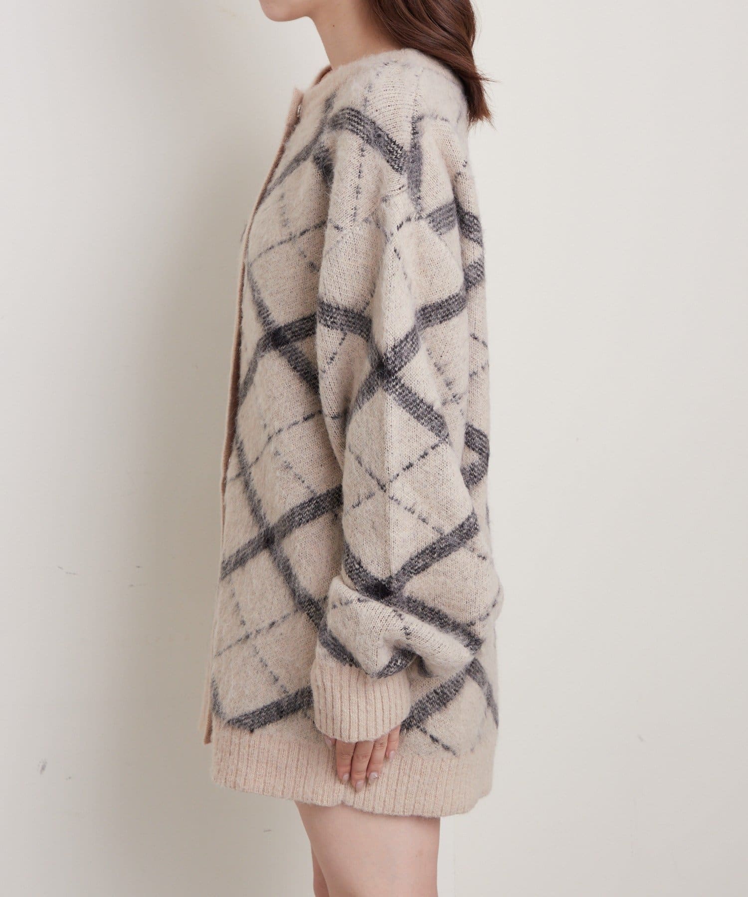 • OUTLET(アウトレット) 【Chico】チェックジャガードクルーネックルーズカーディガン