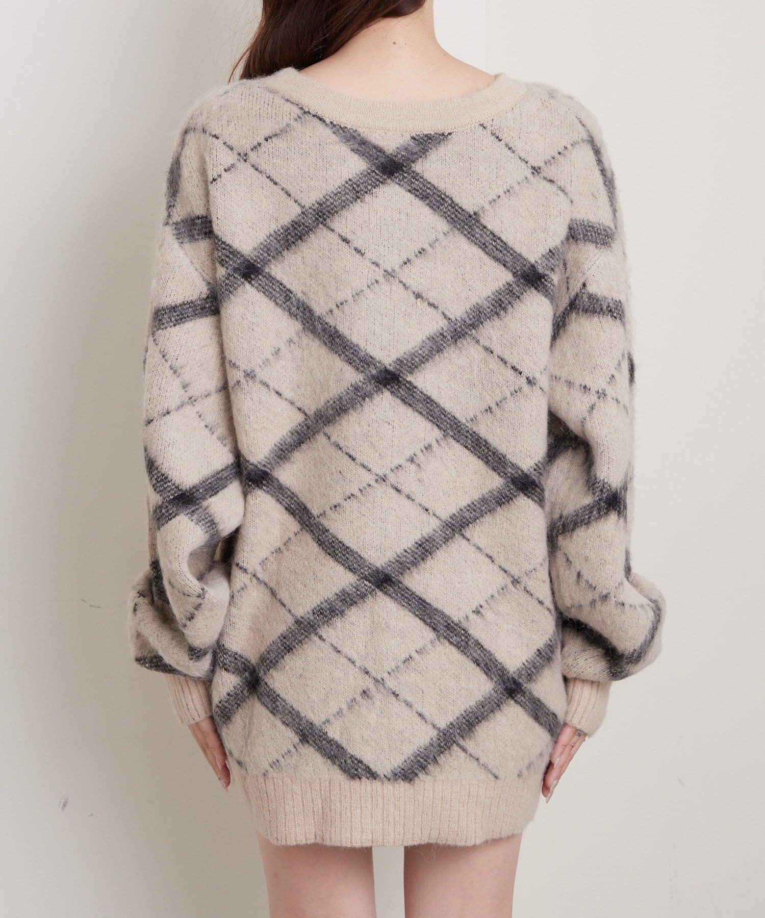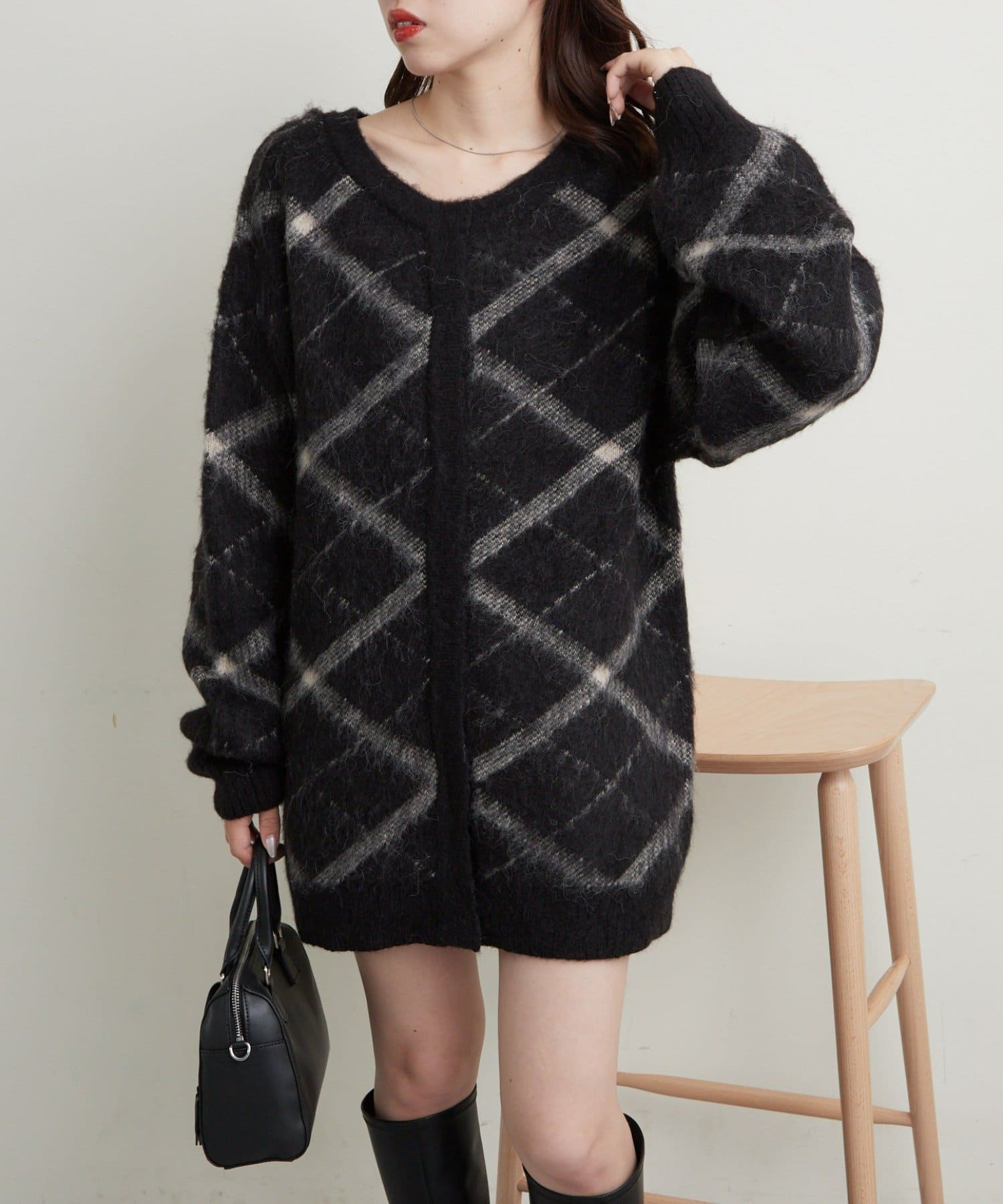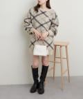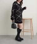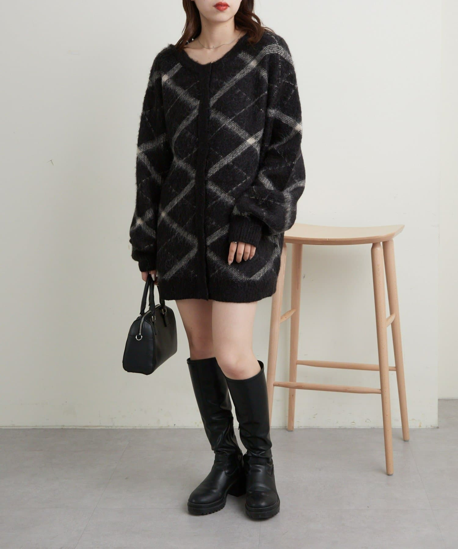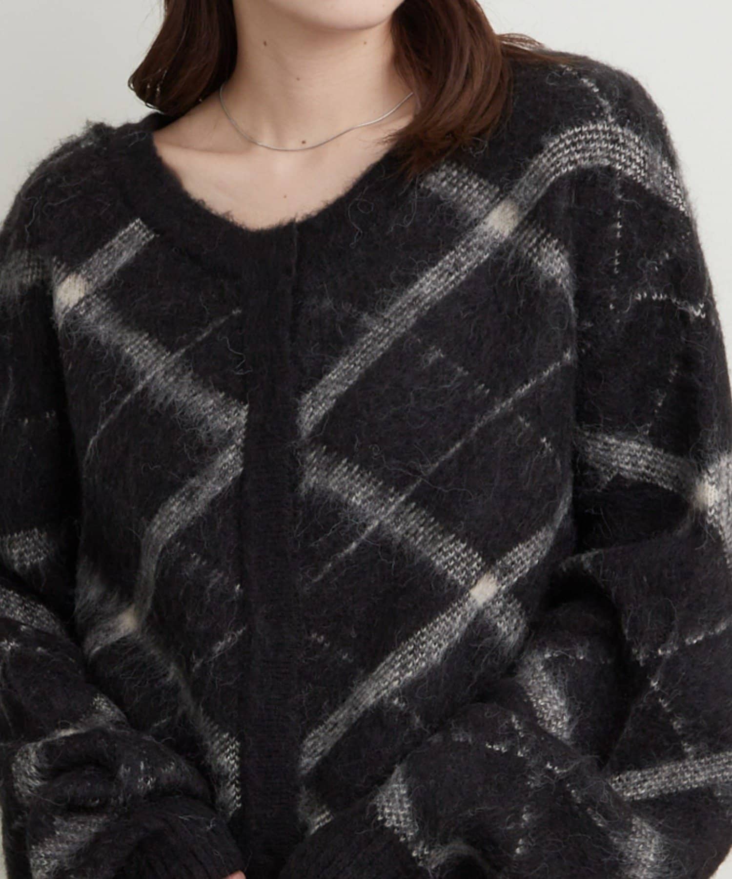 • OUTLET(アウトレット) 【Chico】チェックジャガードクルーネックルーズカーディガン
