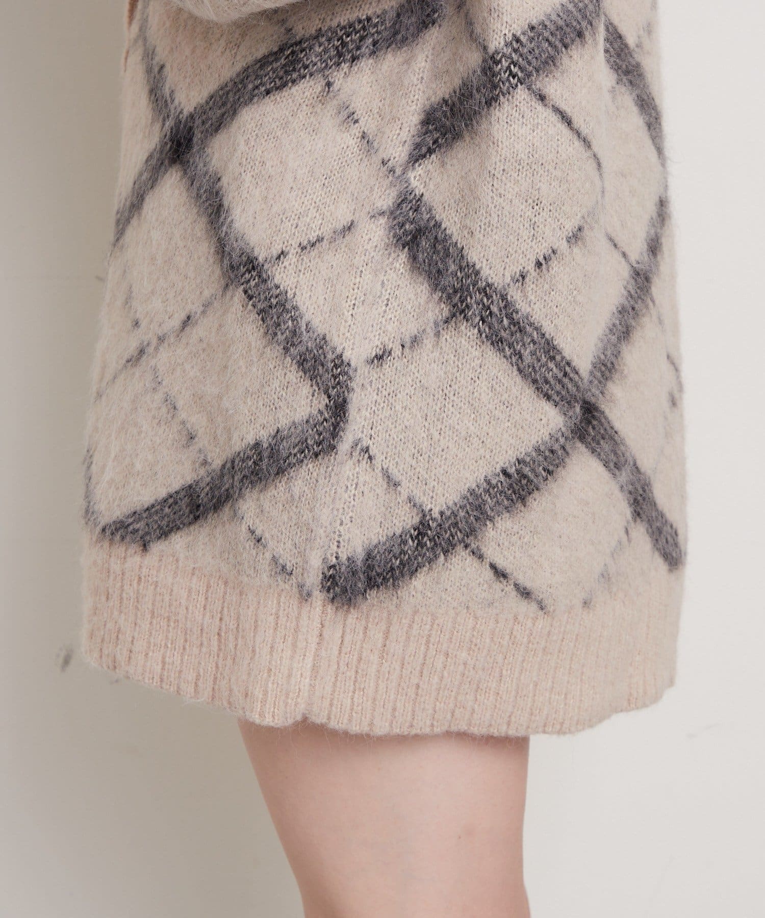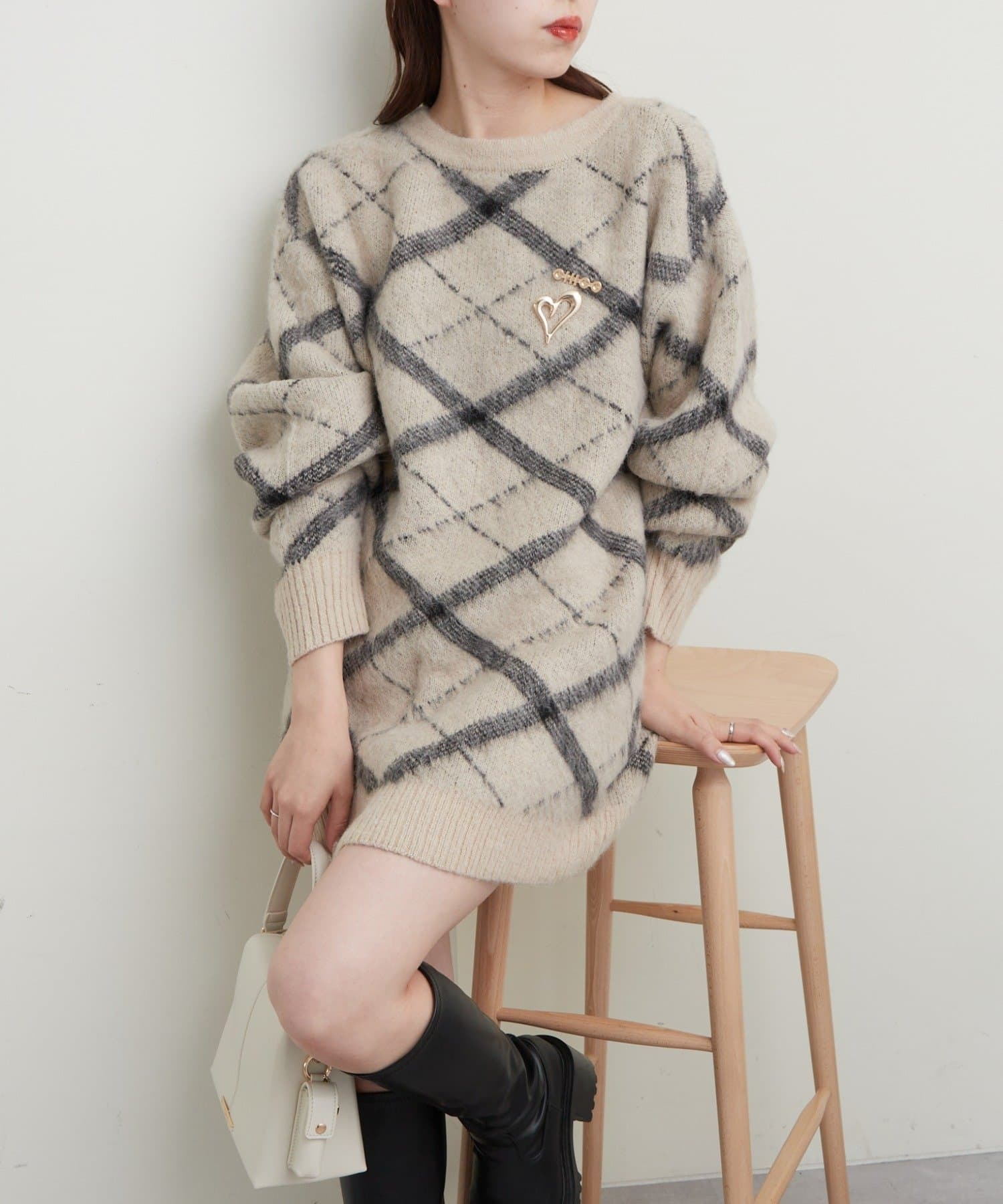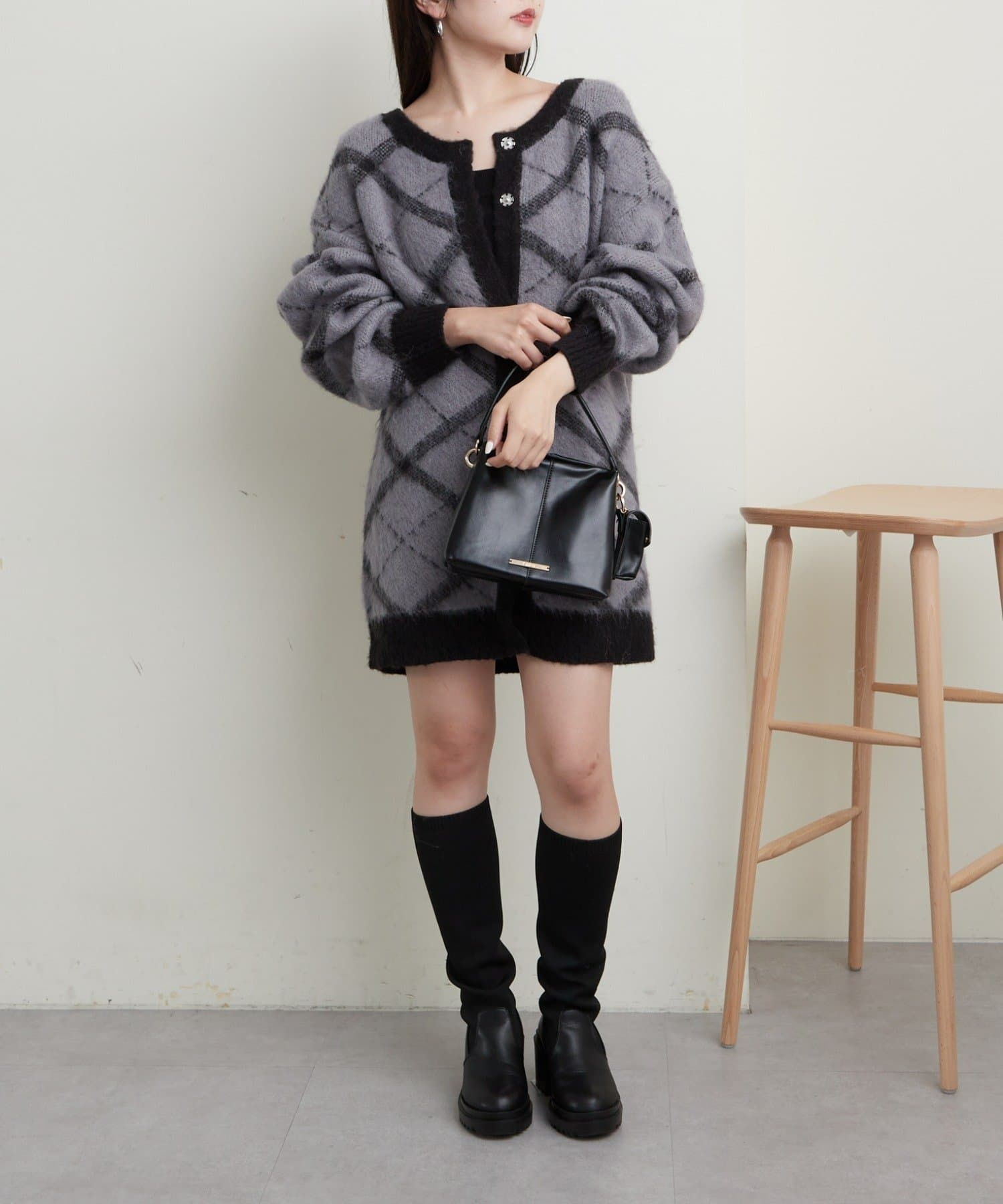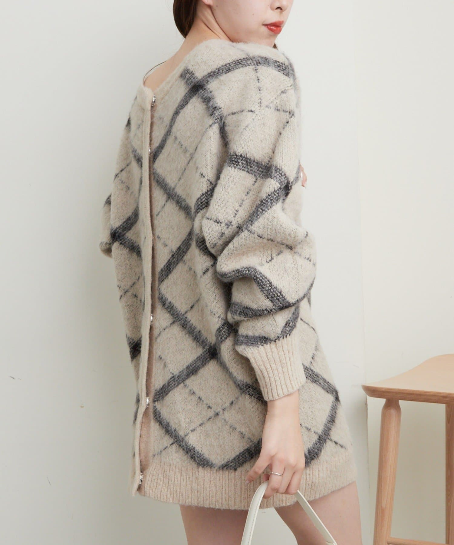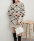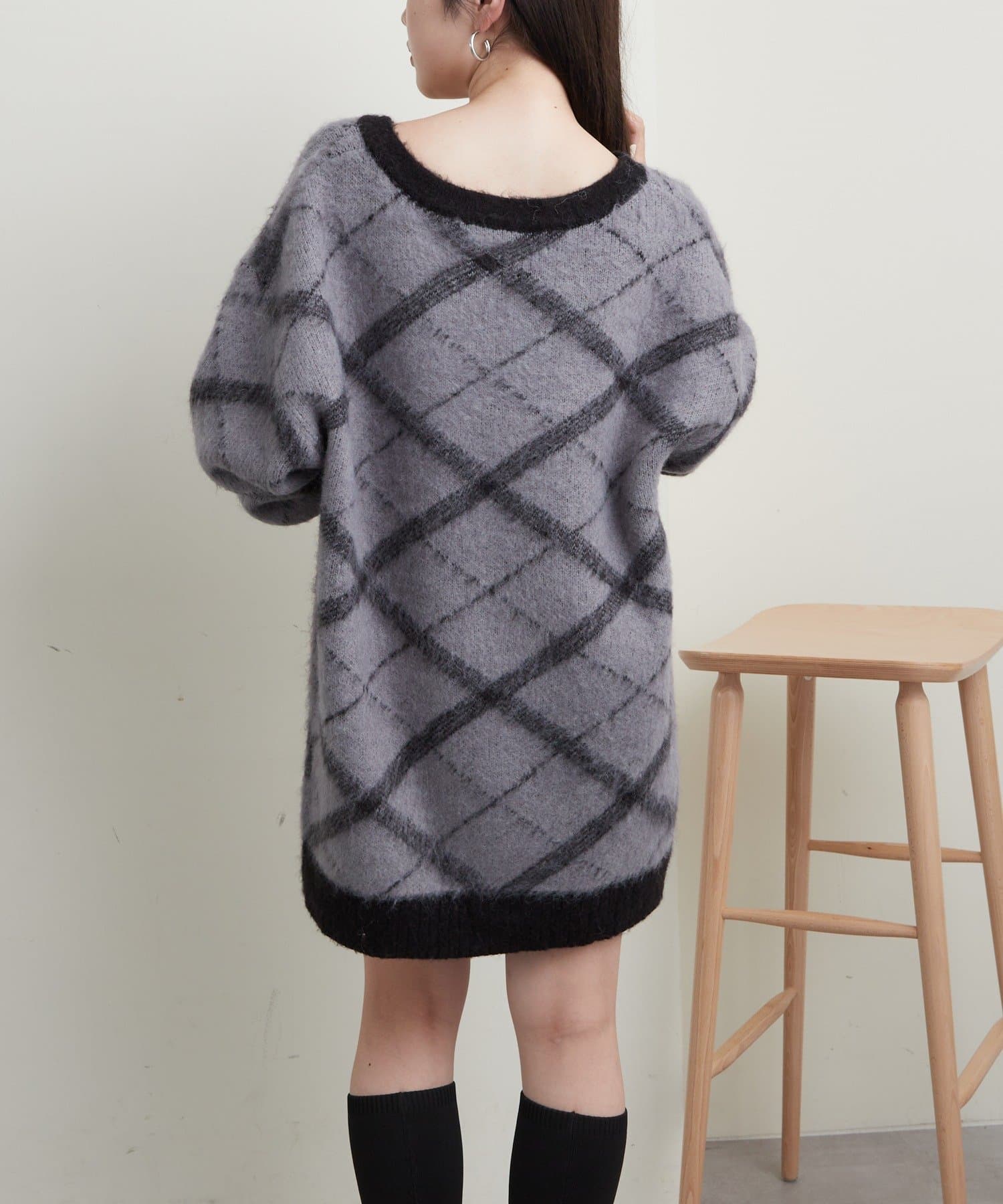 • OUTLET(アウトレット) 【Chico】チェックジャガードクルーネックルーズカーディガン