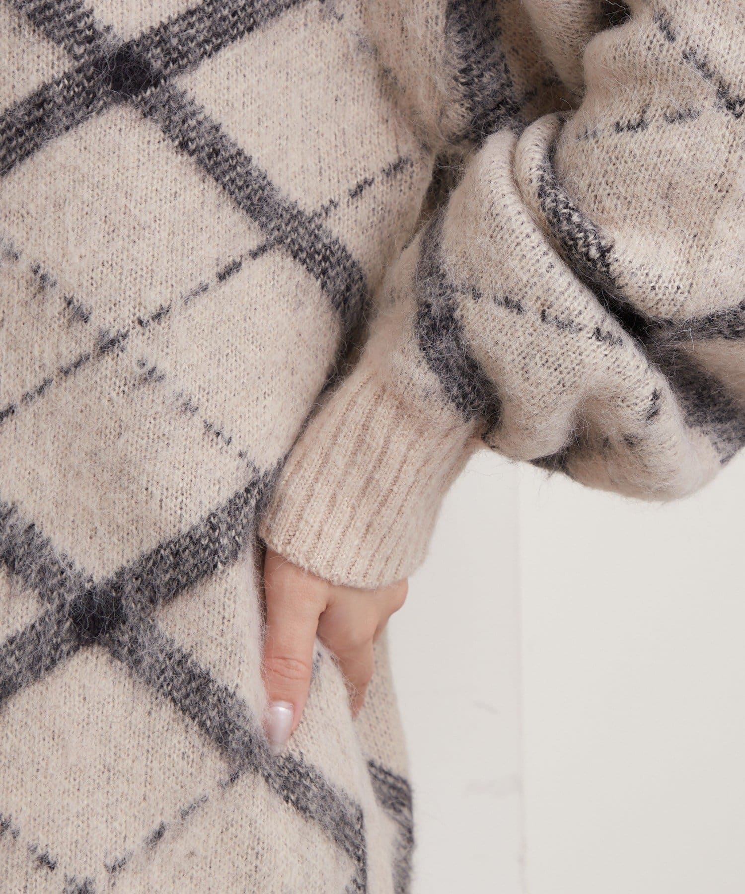TOP > OUTLET > レディース > トップス > カーディガン/ボレロ > 【Chico】チェックジャガードクルーネックルーズカーディガン