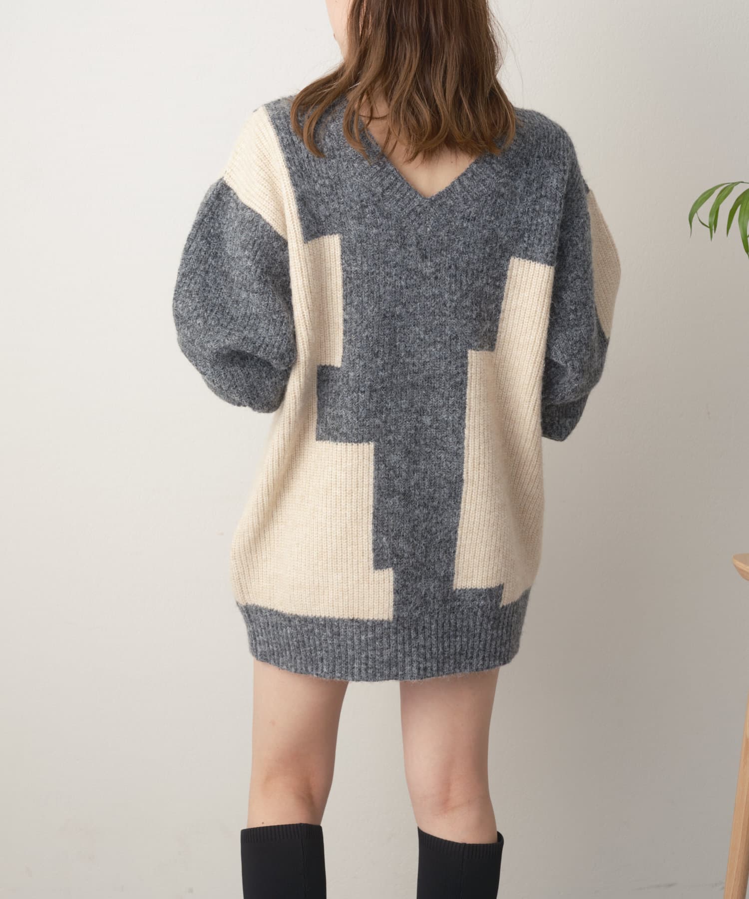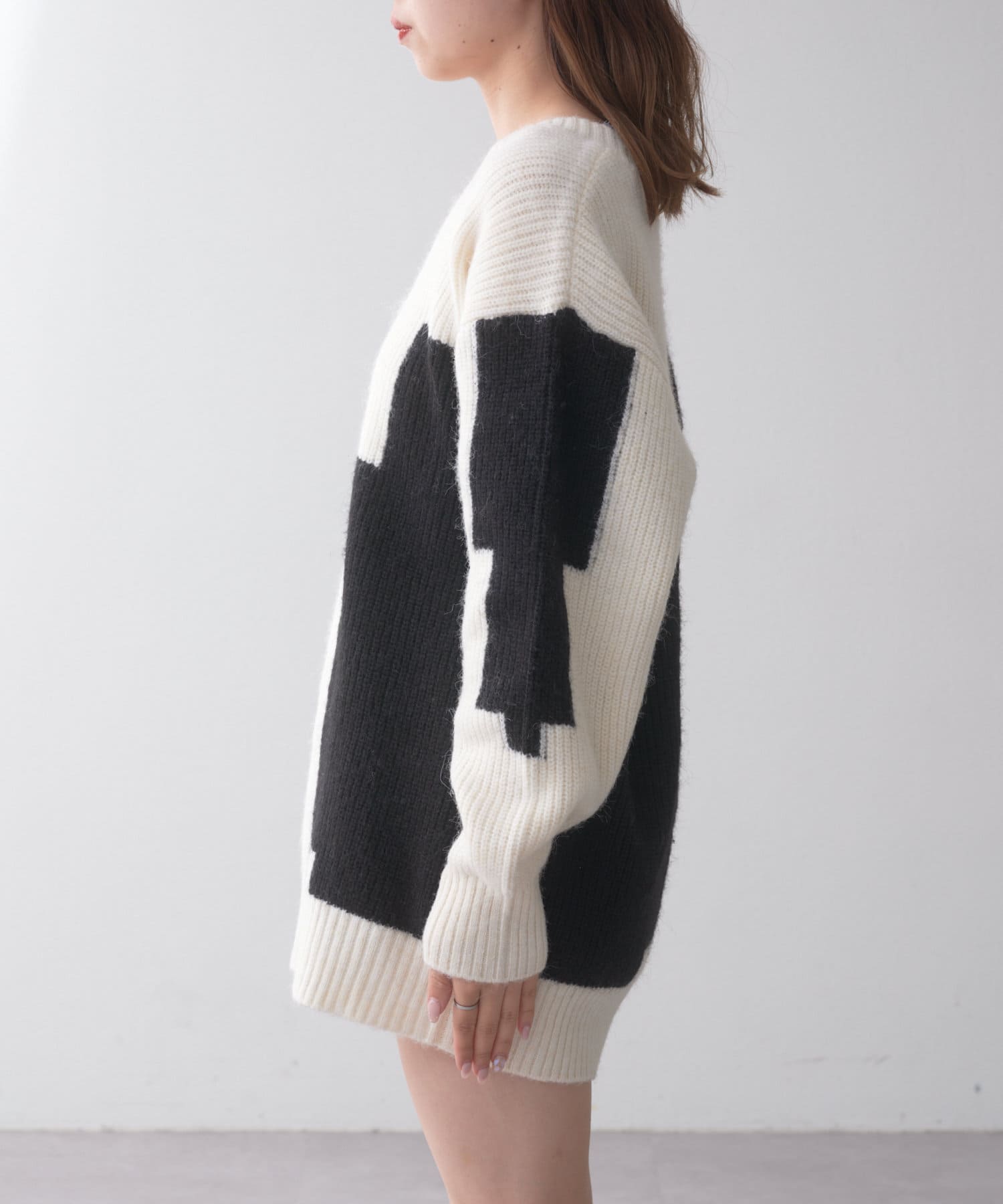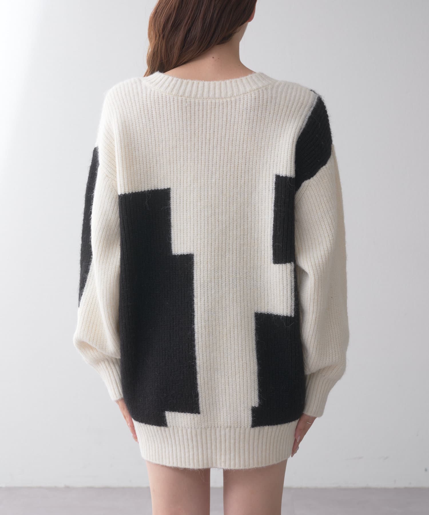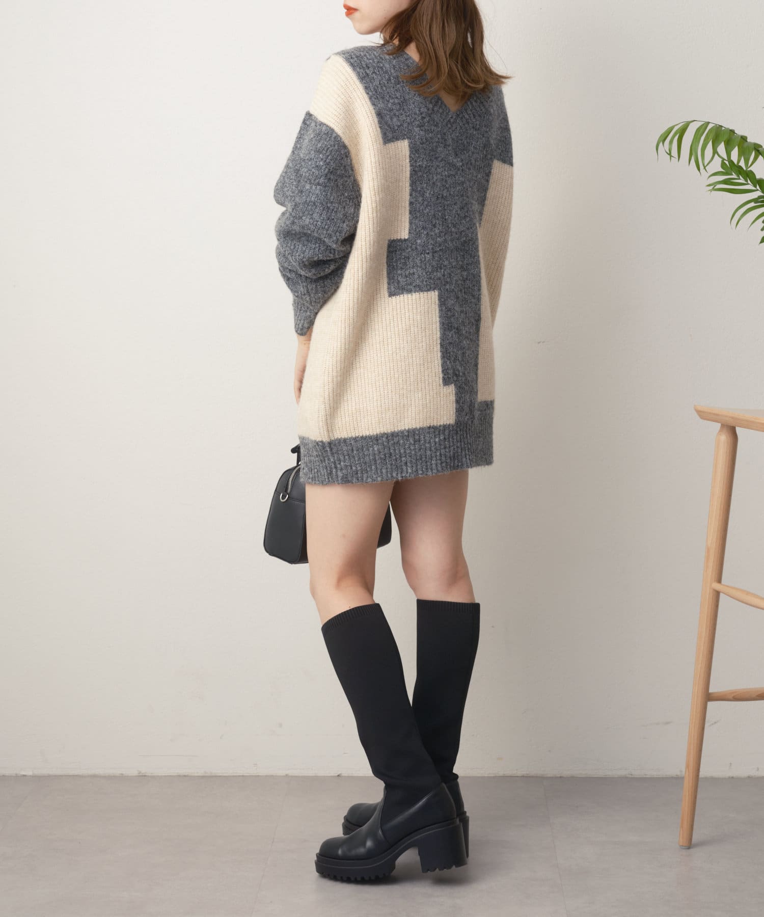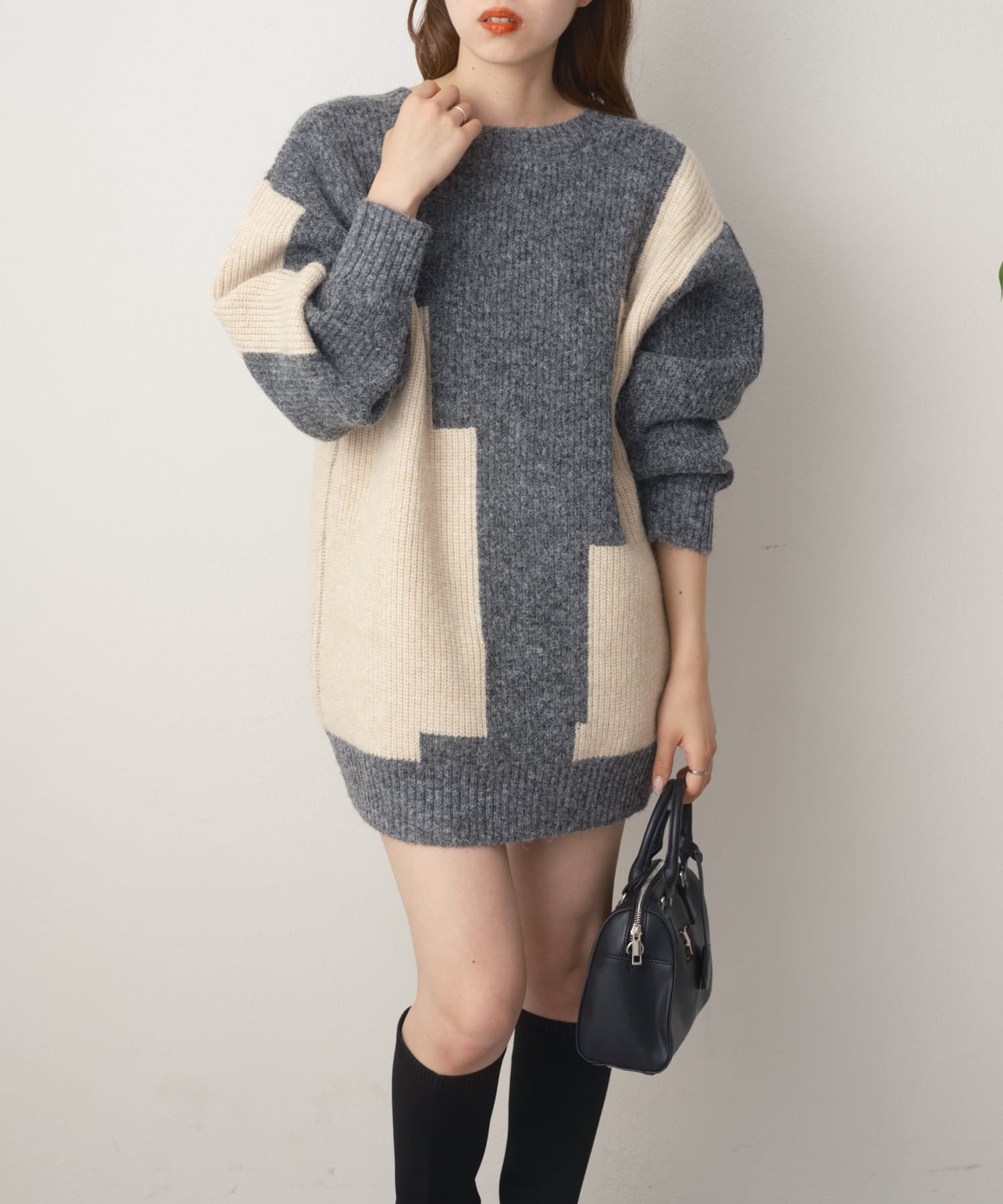 ・大きめのパネル柄で1枚でスタイリングが決まるニットワンピが登場!