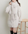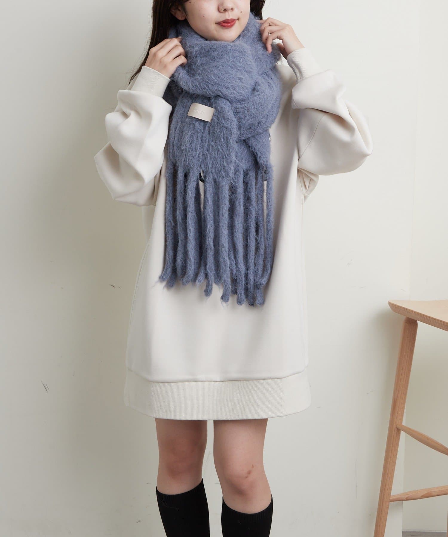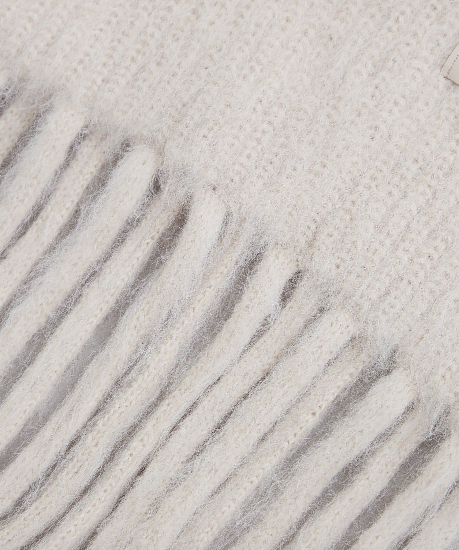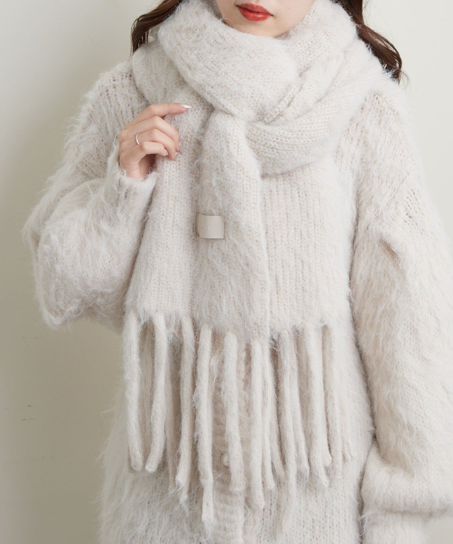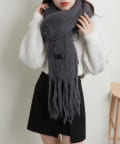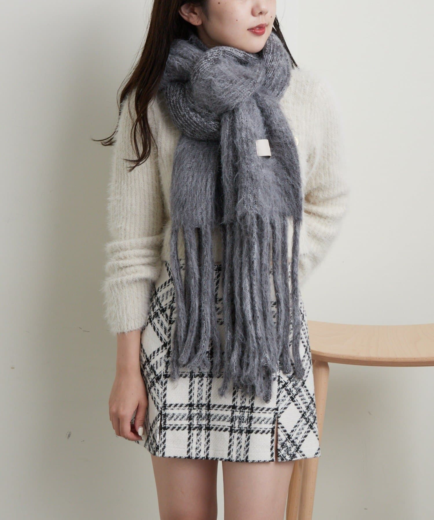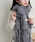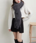・ナチュラルに肌になじみいやすい単色と太めのフリンジデザインが目を惹く一枚です。