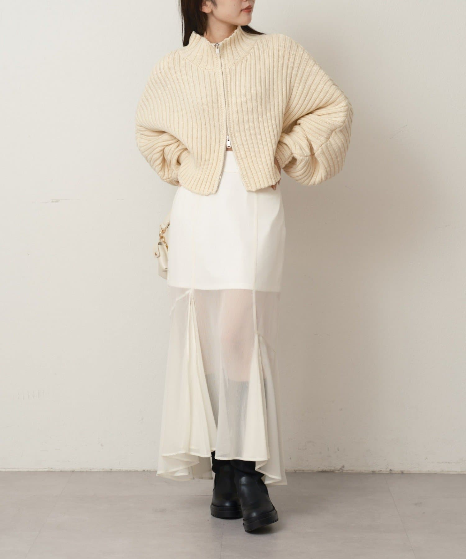 ・ボリュームがあるのでミニボトムやタイトスカートと好相性。