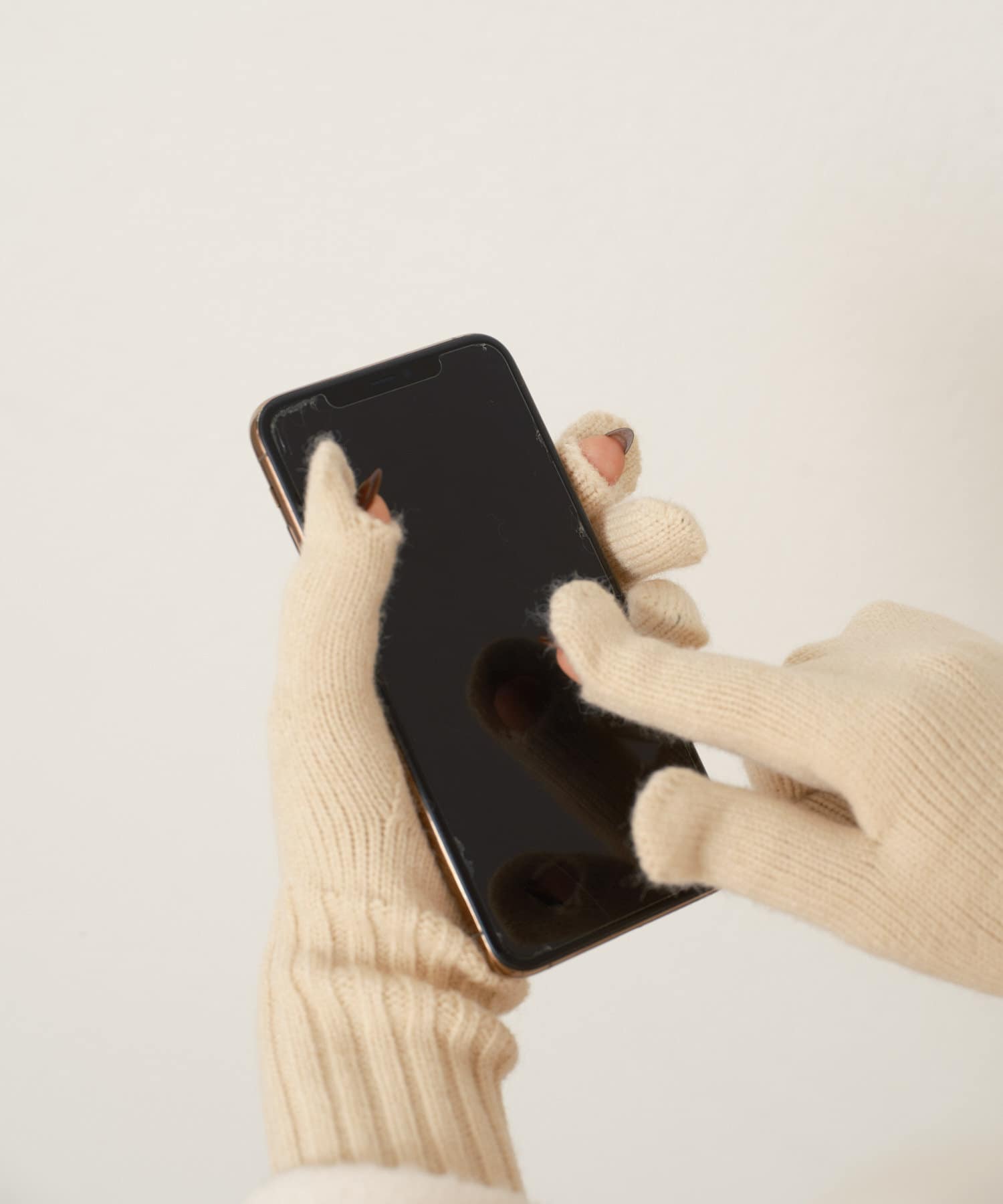指先に切れ込みが入っており、そこから指を出してスマホを操作していただけます。