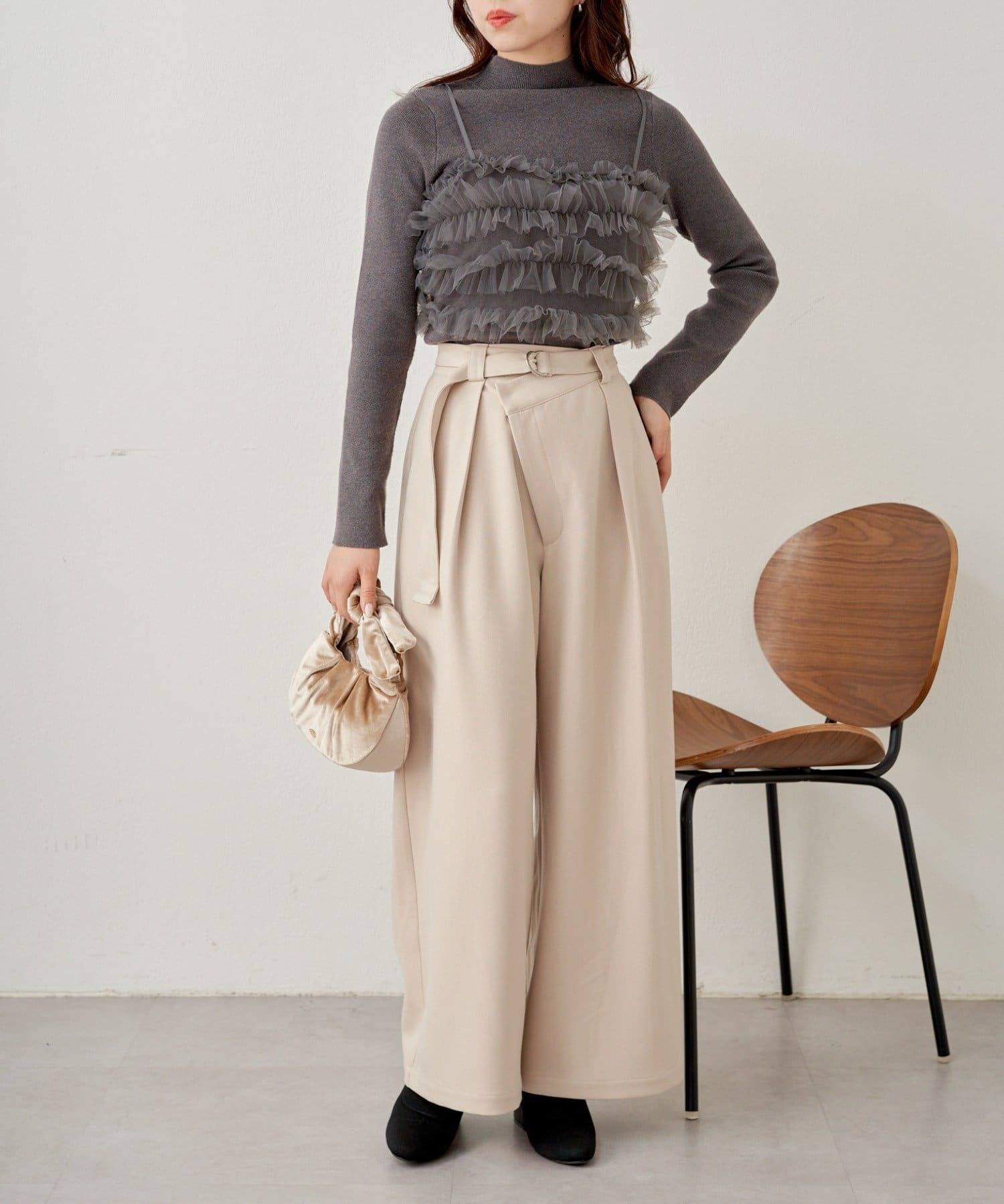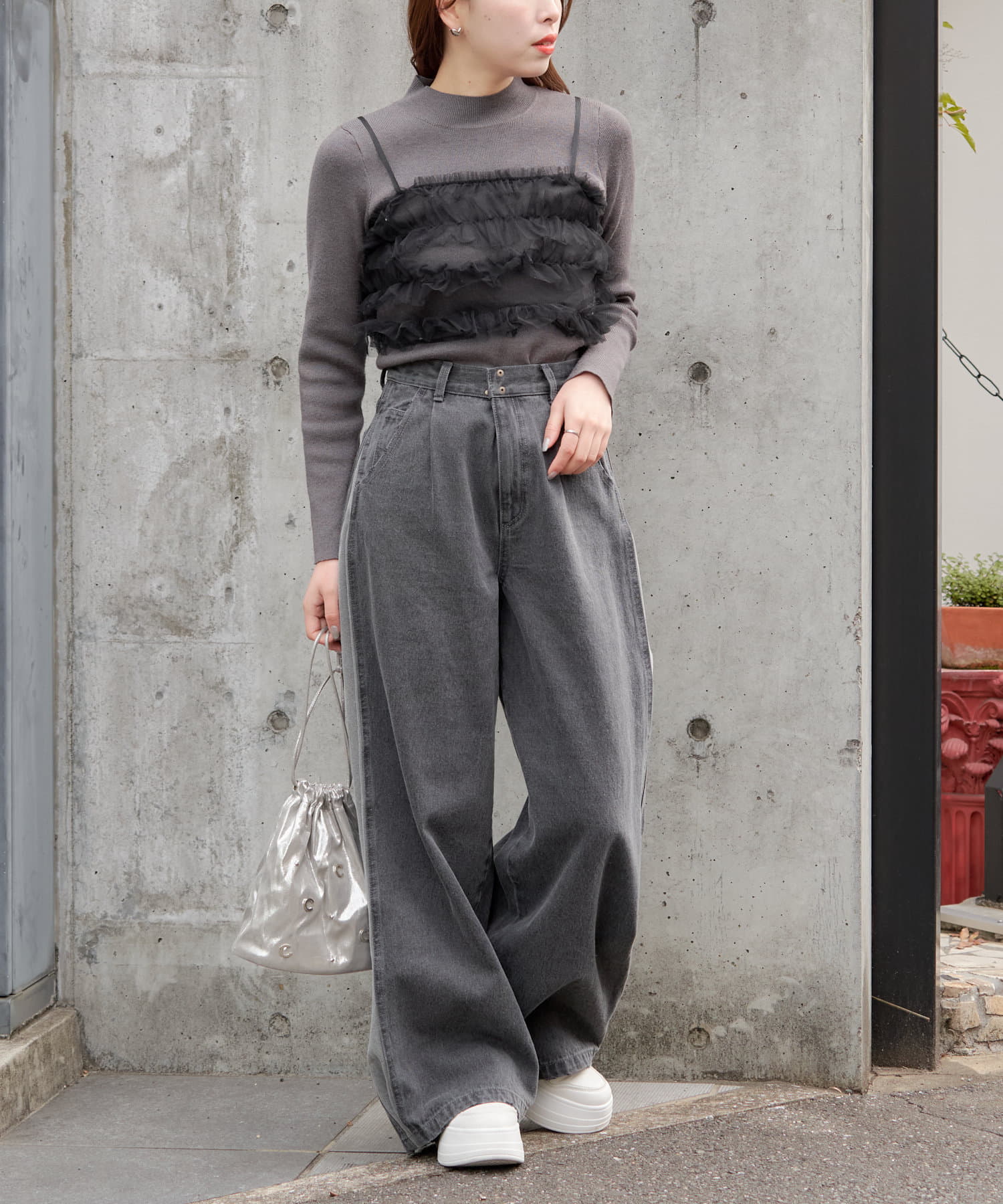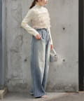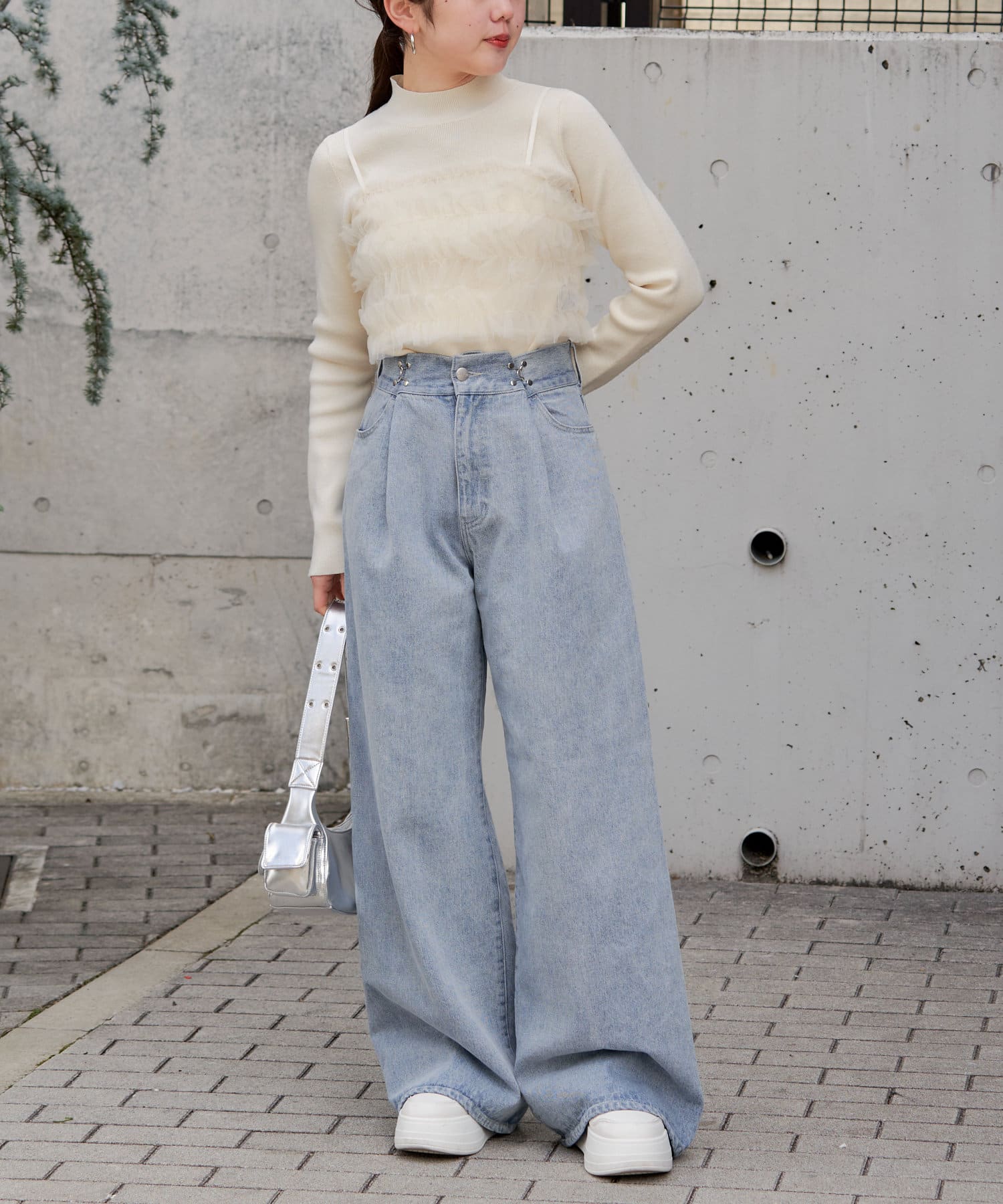 ▶おすすめアイテム:ハートプリントボックスワイドデニムパンツ ウエストベルトデザインワイドスラックスパンツ