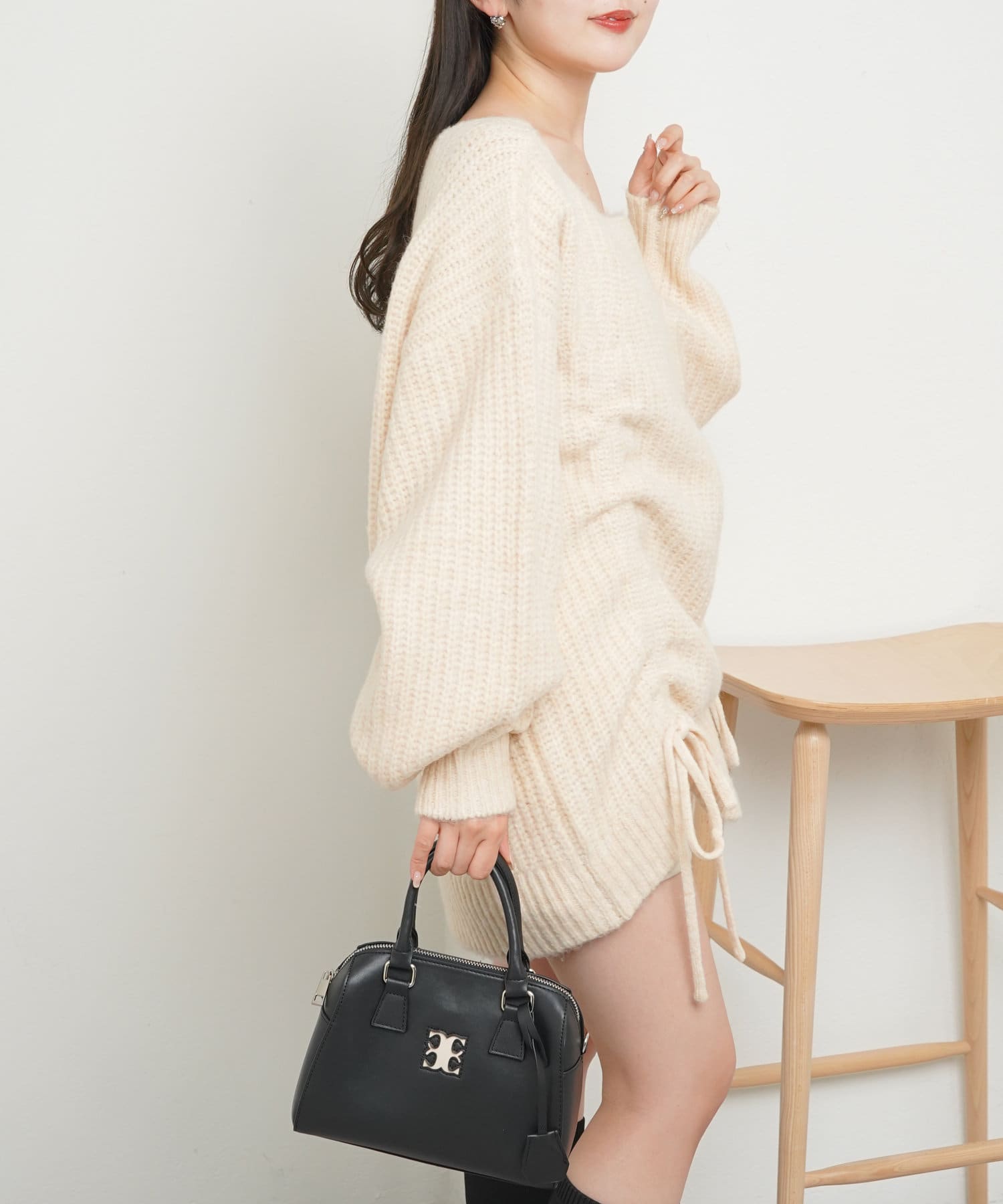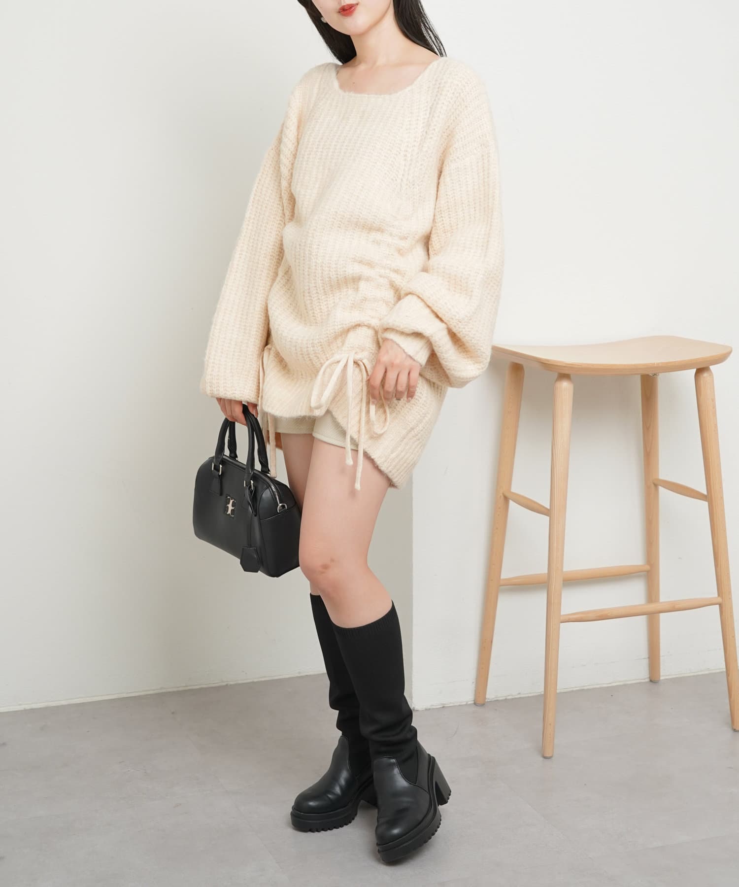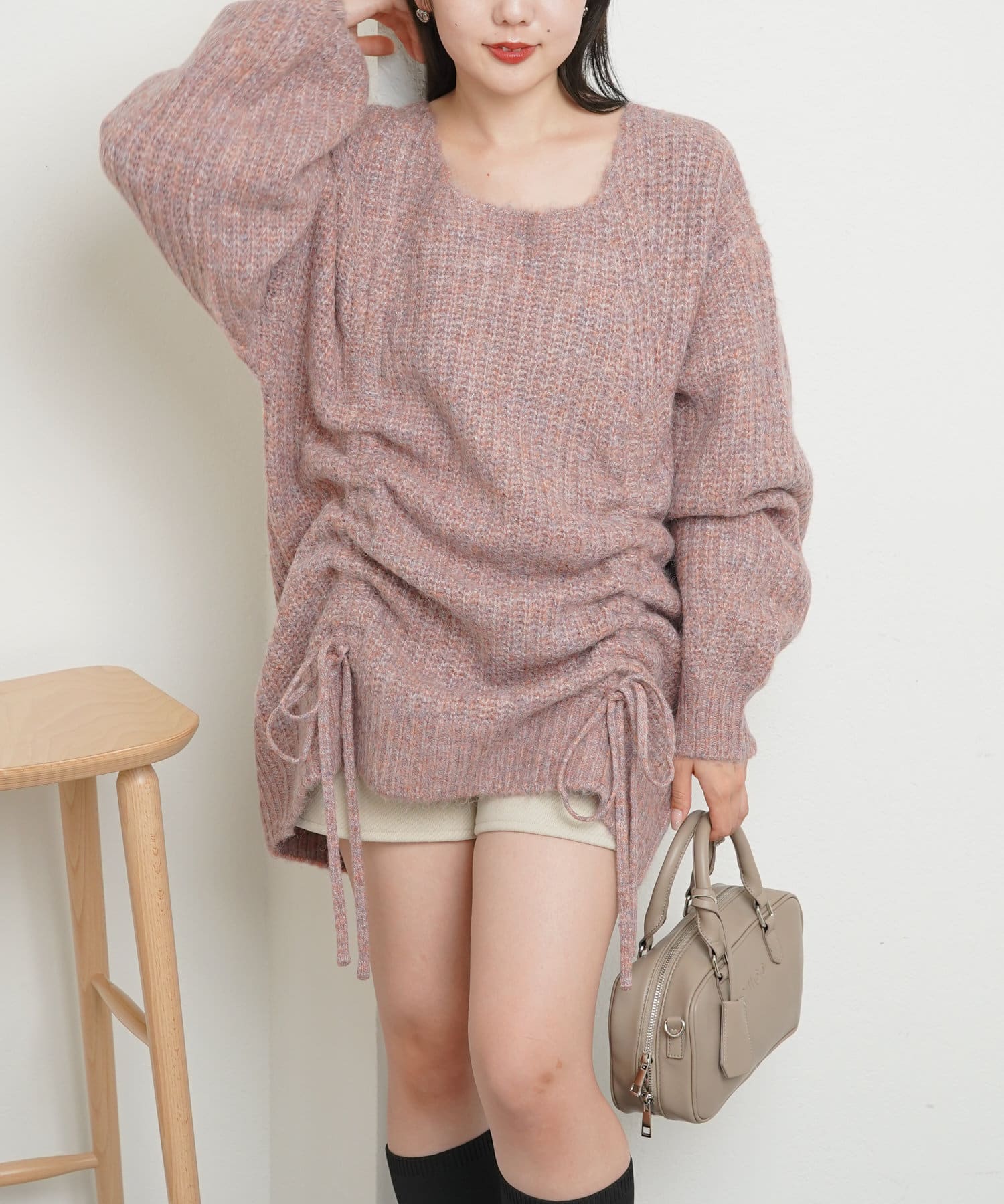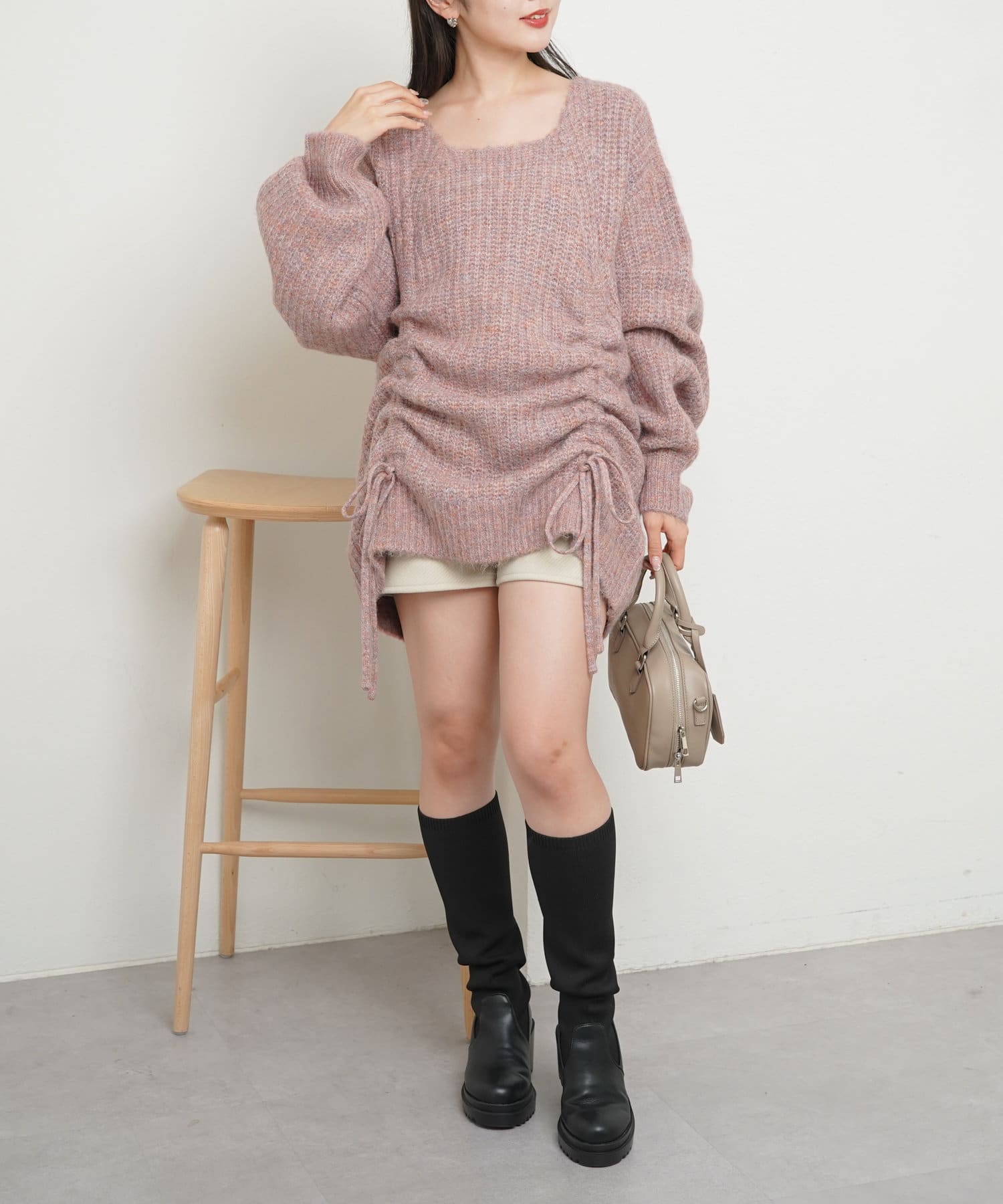 ・スクエアネックでデコルテラインをすっきりとした印象に。