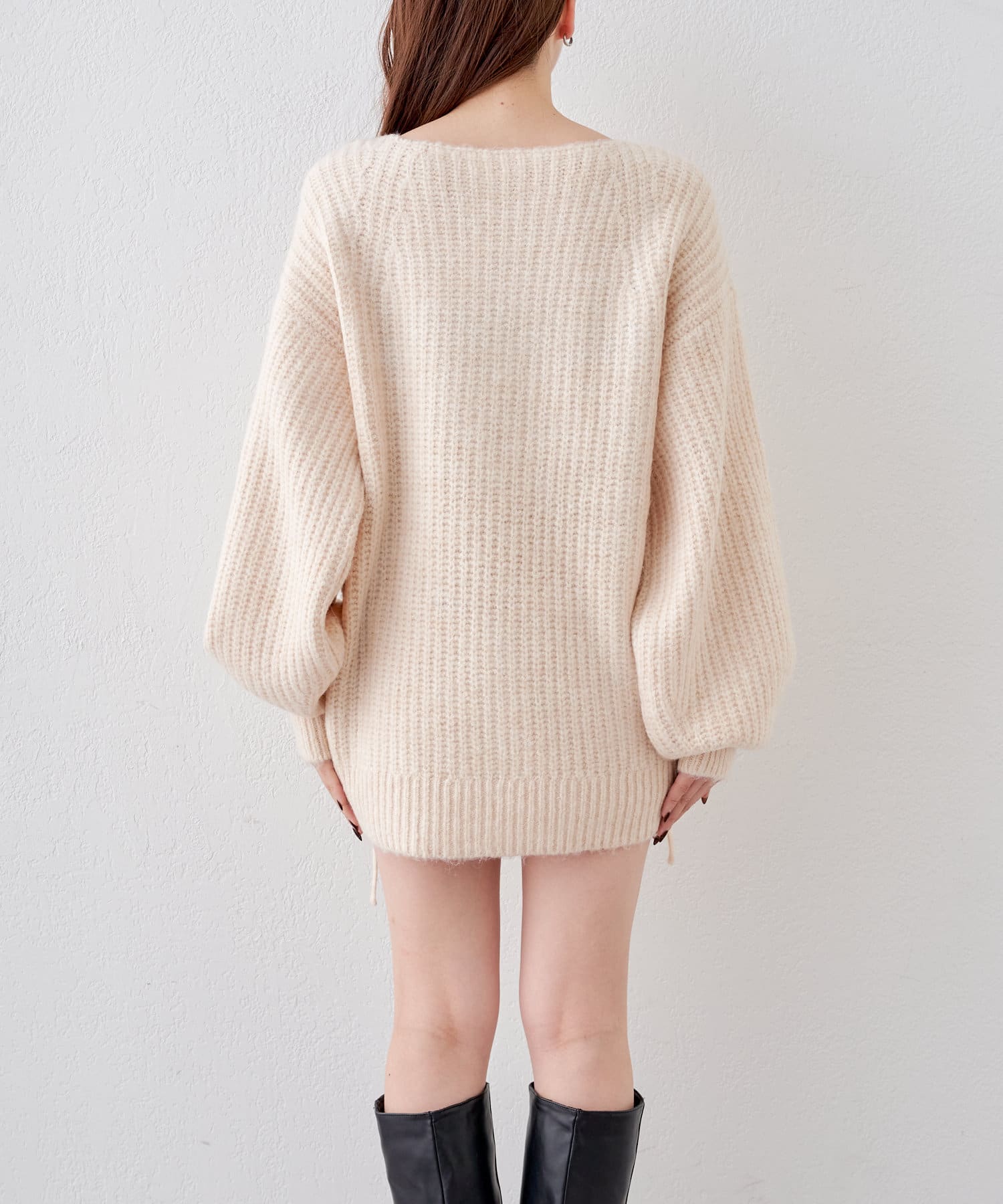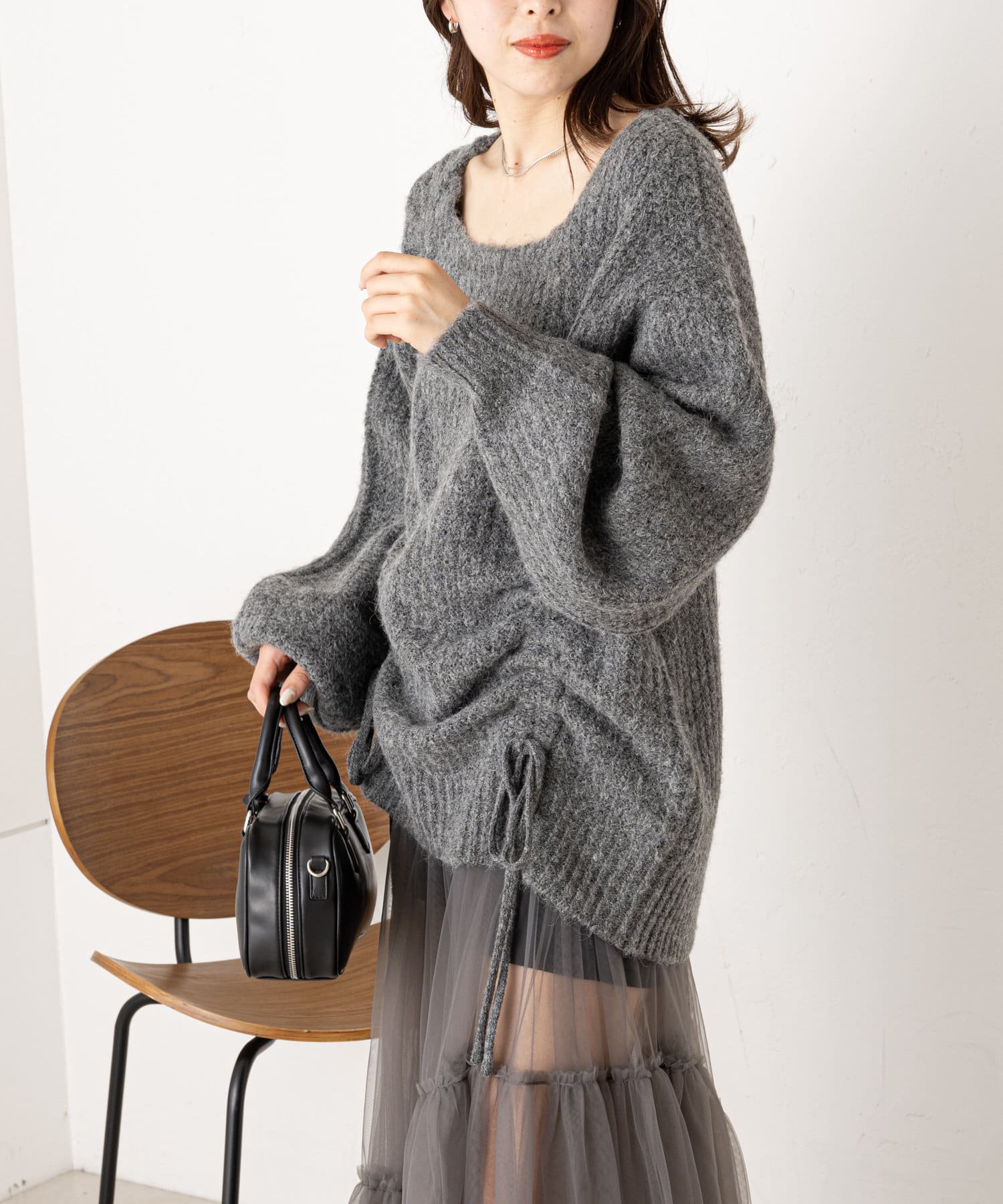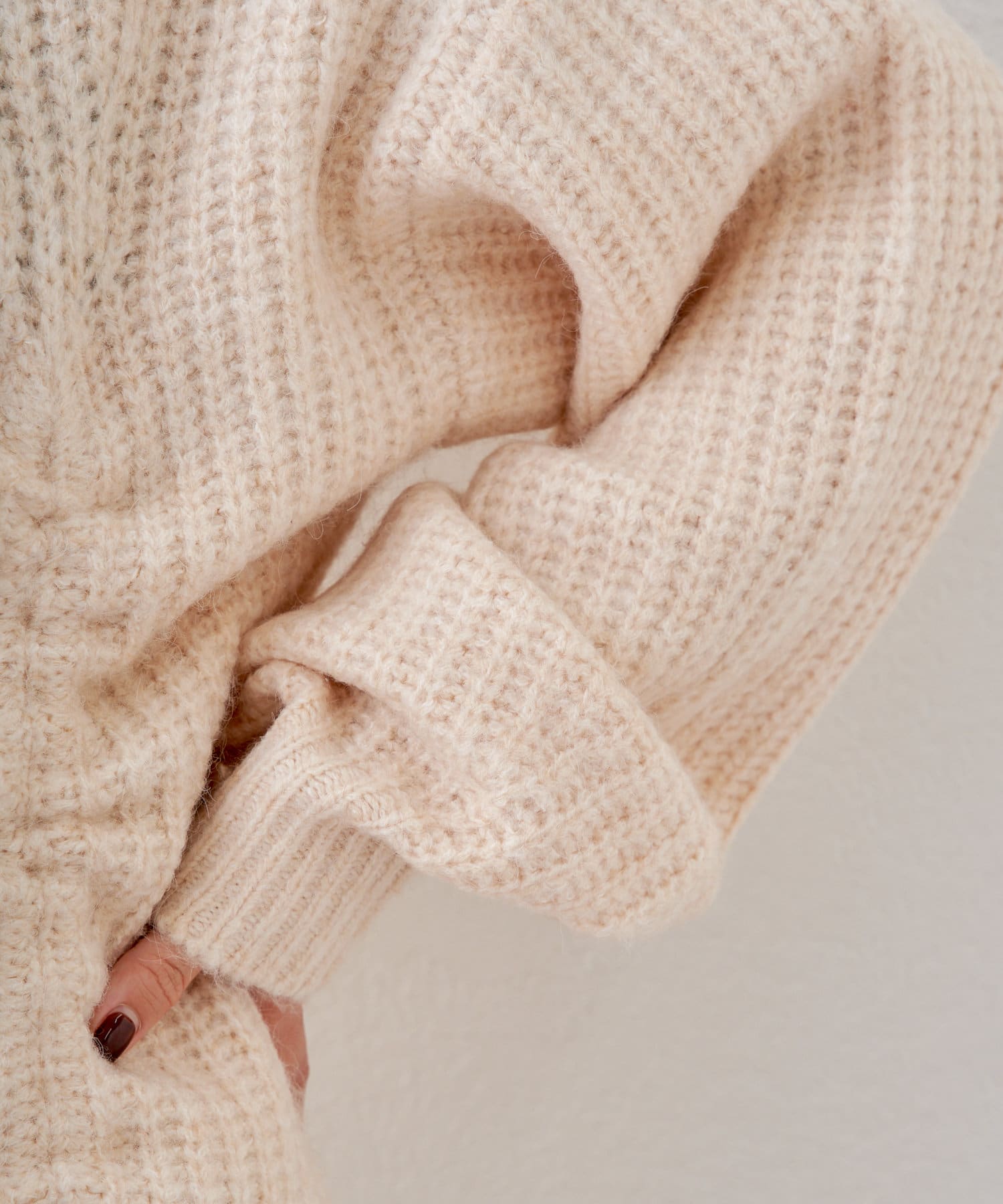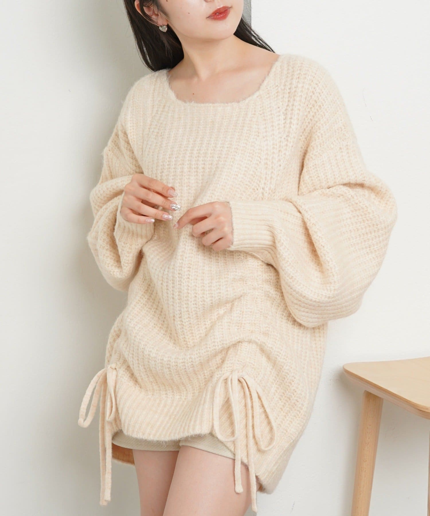 ・スクエアネックでデコルテラインをすっきりとした印象に。