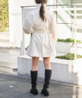 ・ミニ合わせで前を閉めてワンピース風に着ていただくのもあすすめです。