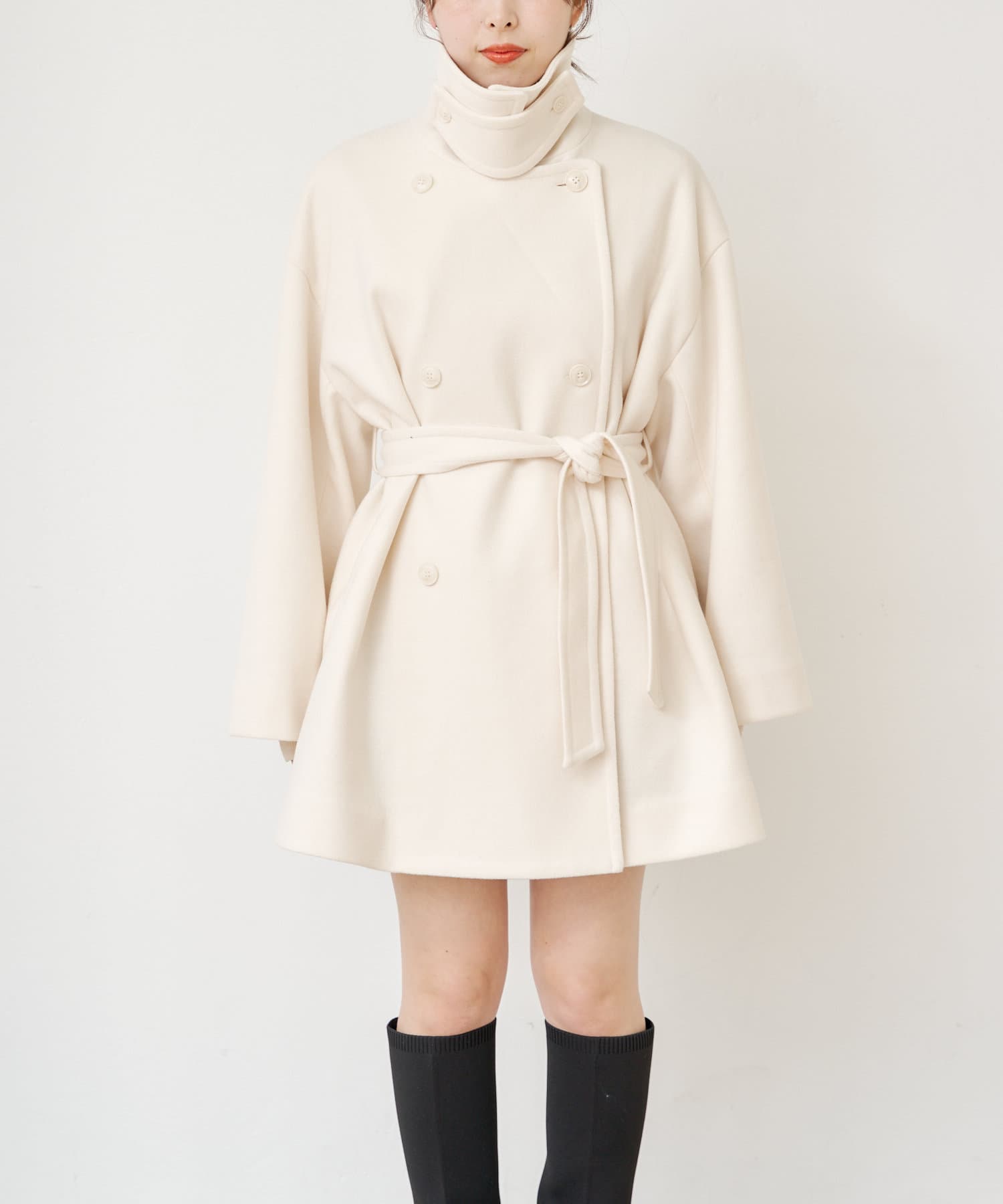 ・スタンドカラーとテーラードカラーの2wayでお使いいただけるミディアム丈コート。