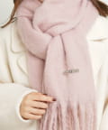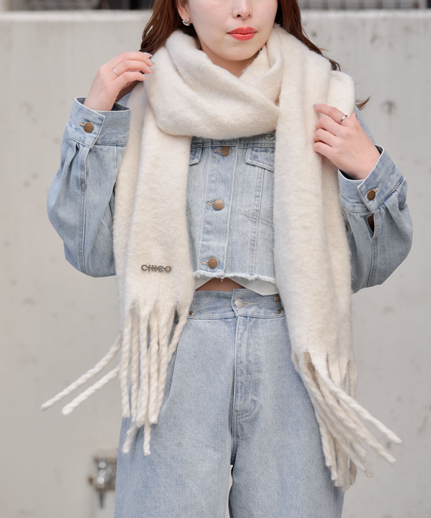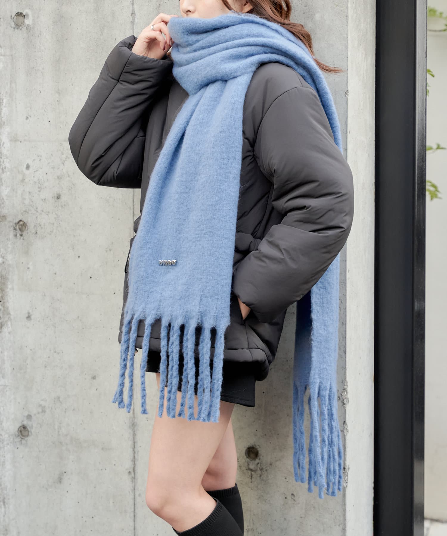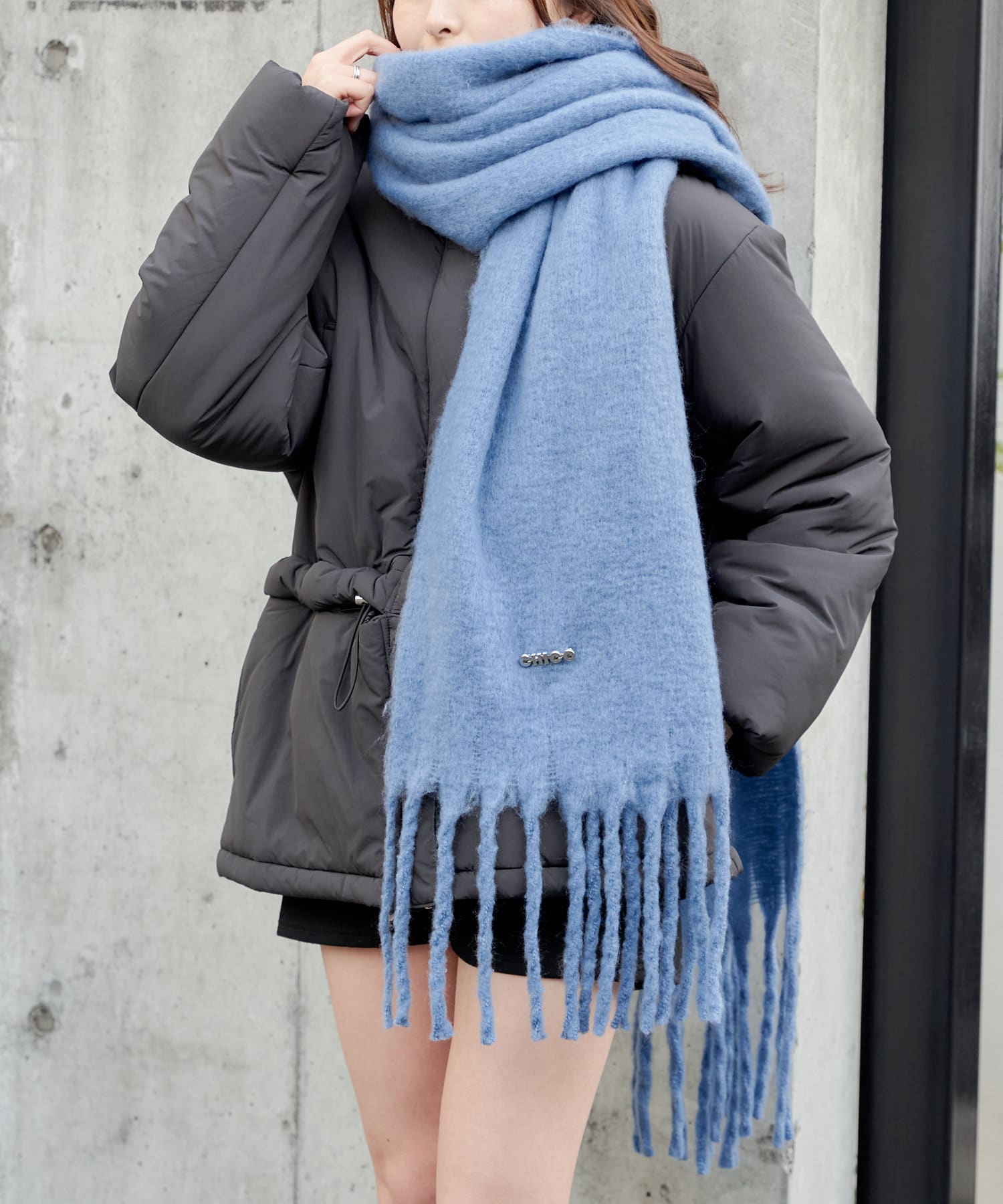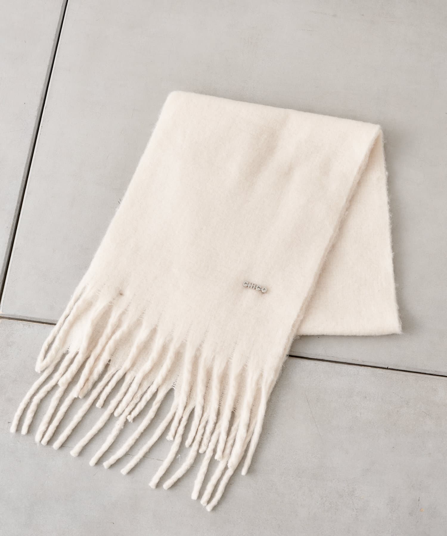 ナチュラルに肌になじみいやすい単色と太めのフリンジデザインが目を惹く一枚です。