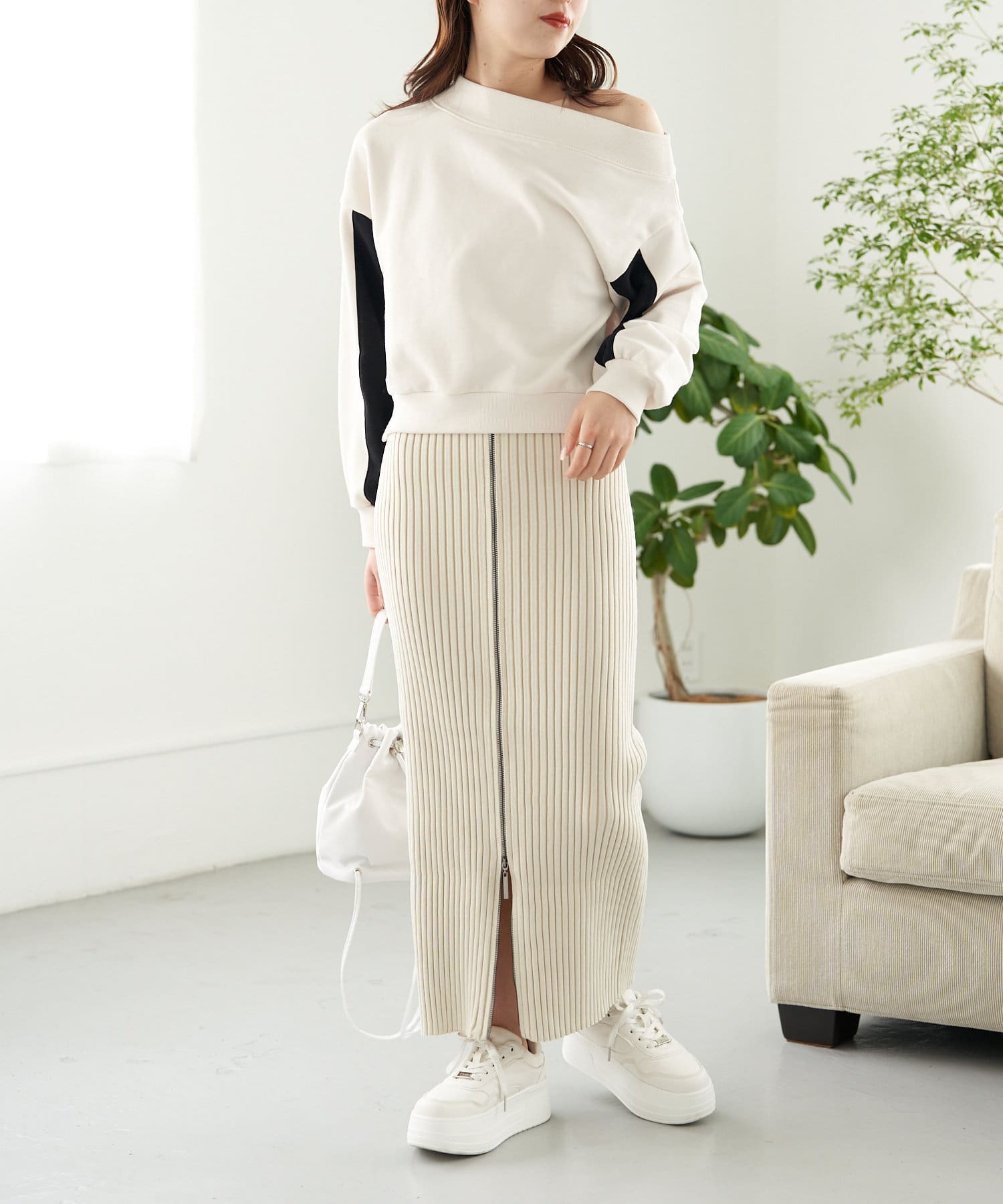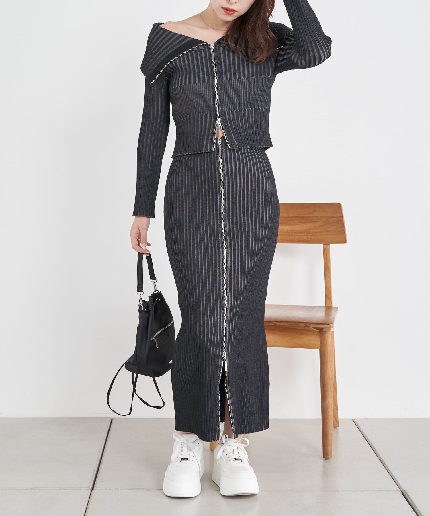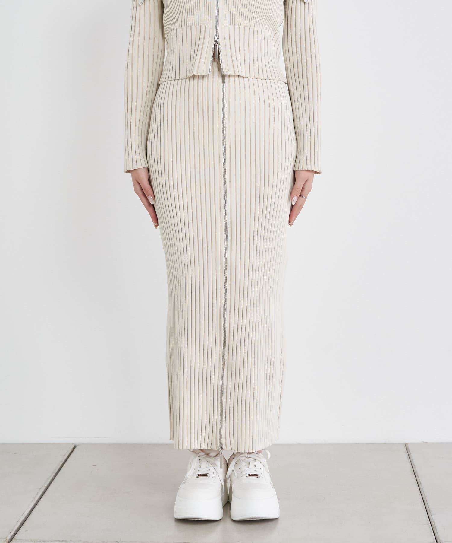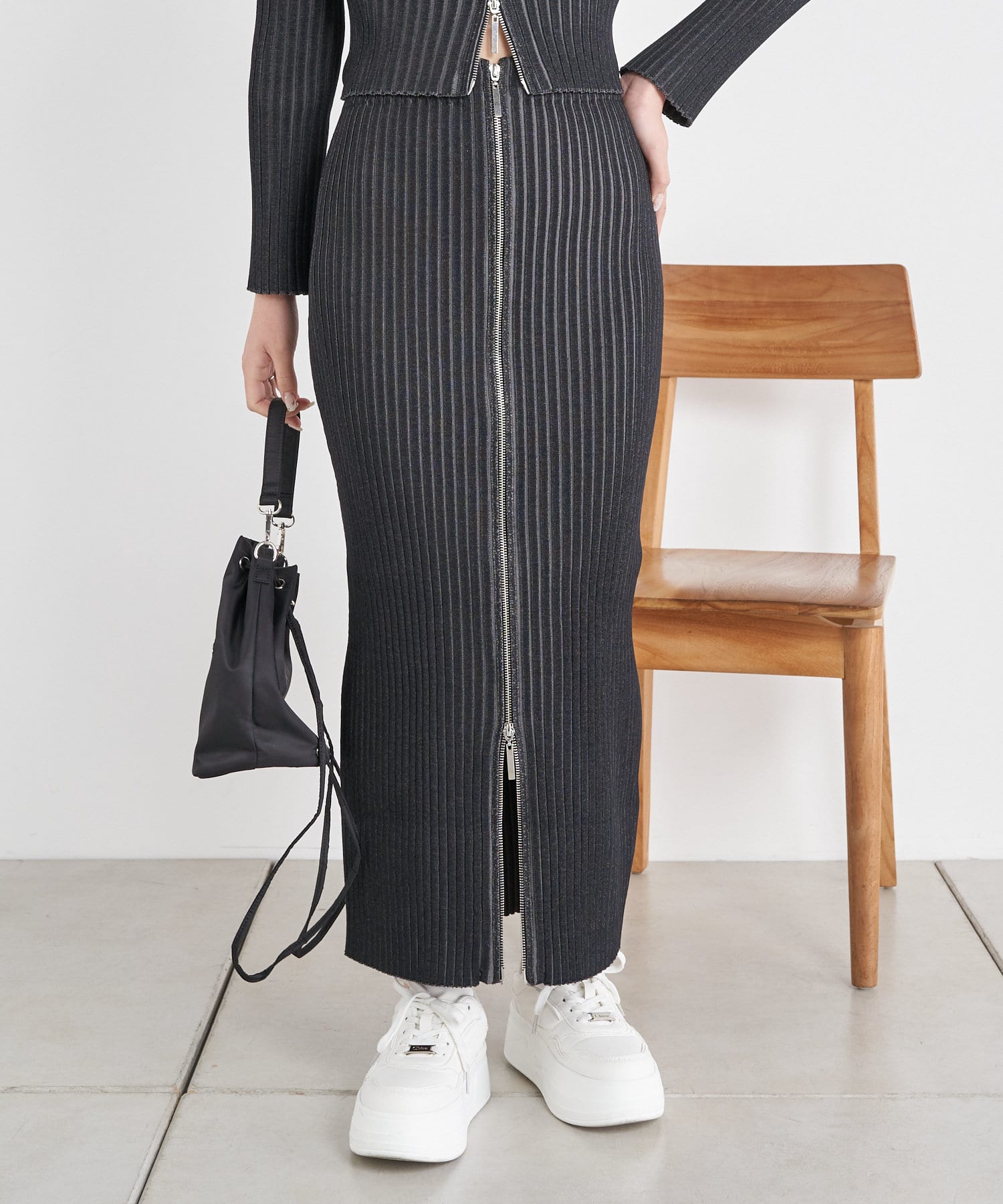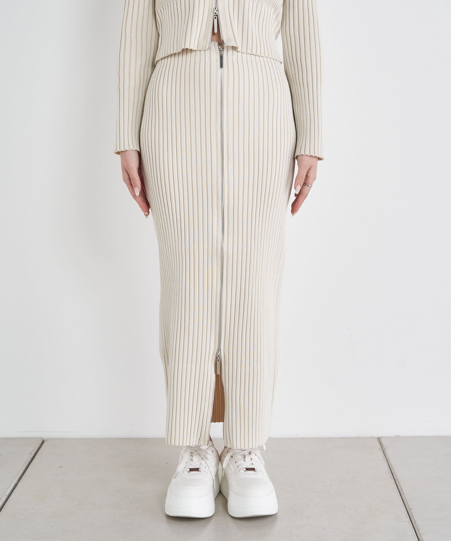 Wジップがトレンドライクなニットスカート