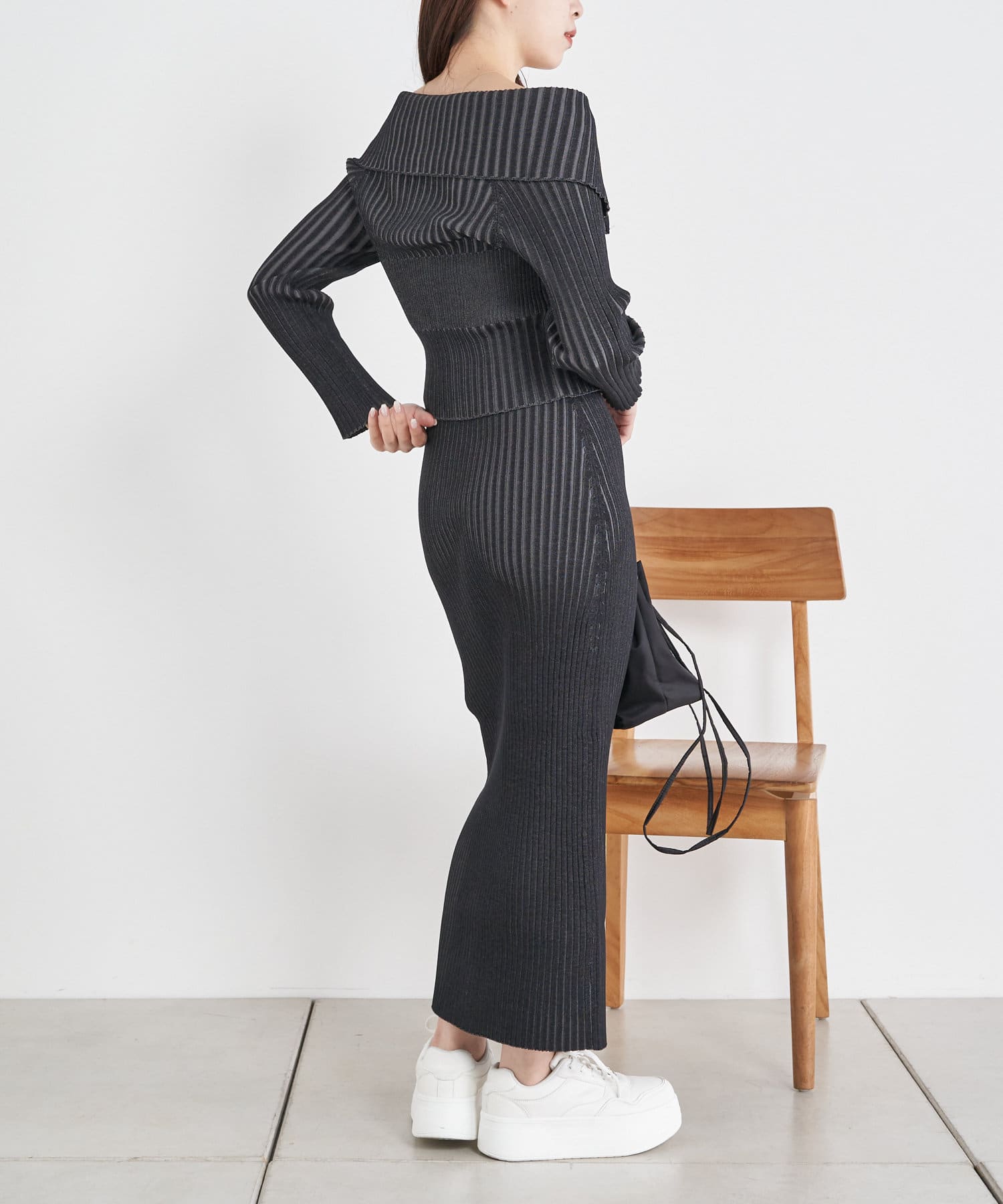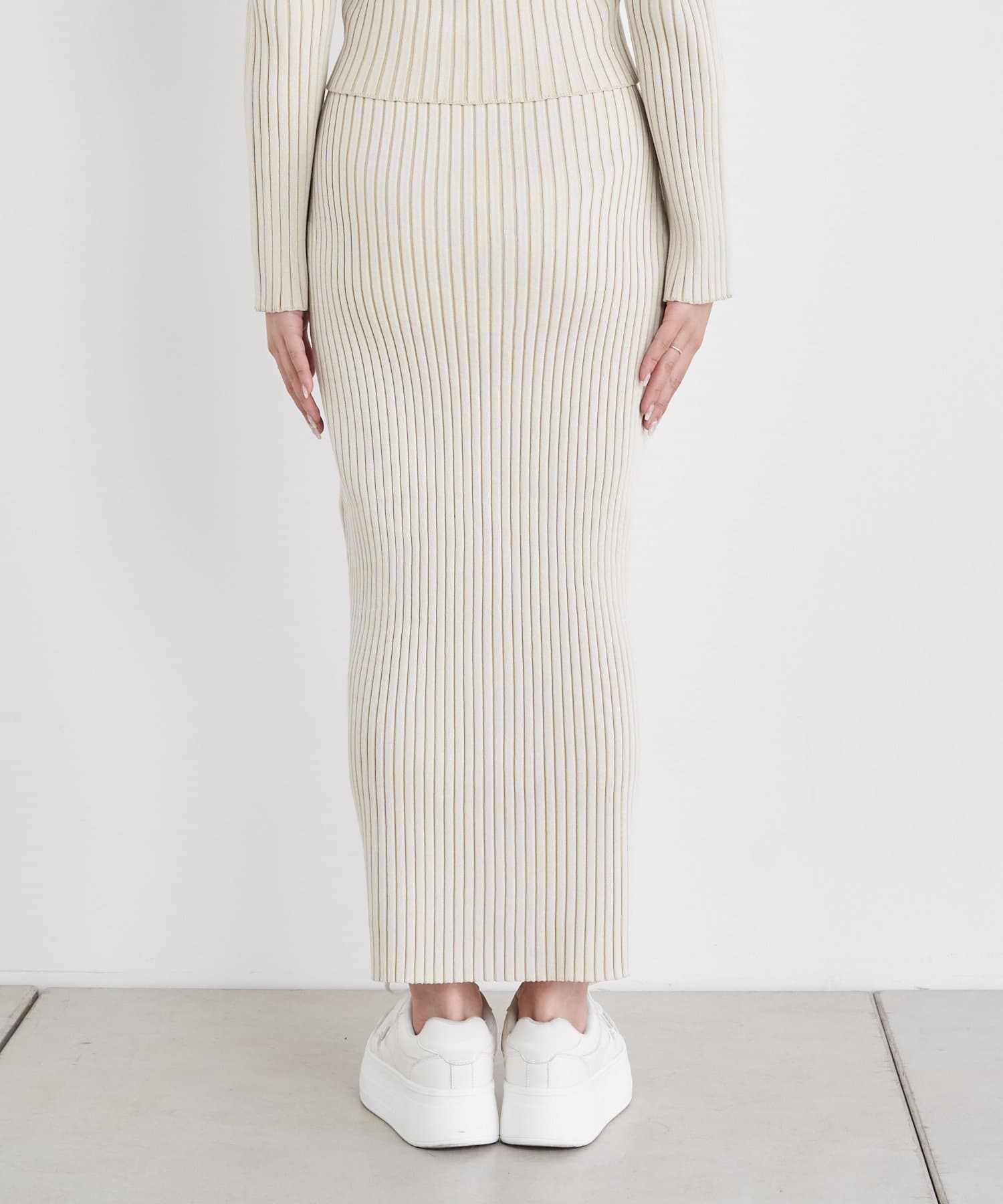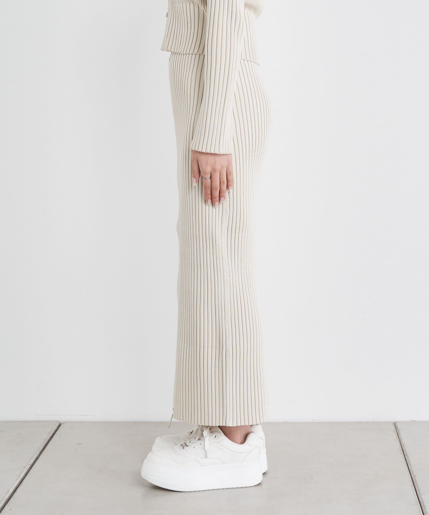 ・同素材のニットでセットアップでのスタイリングがおすすめです。