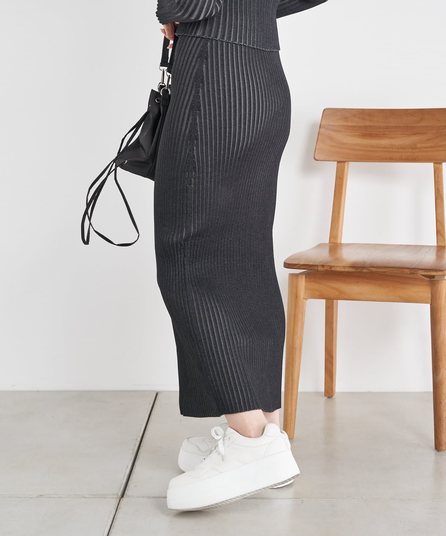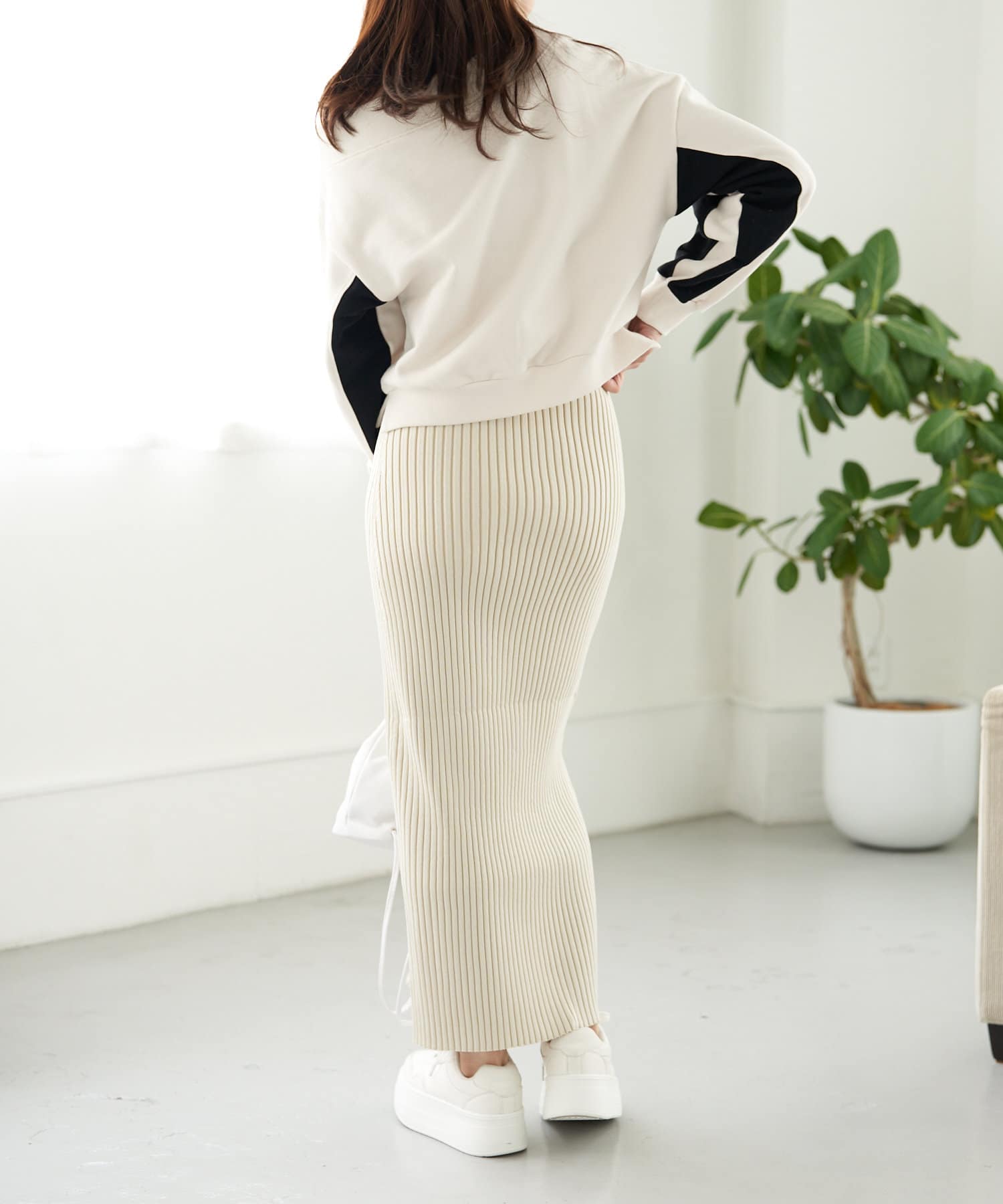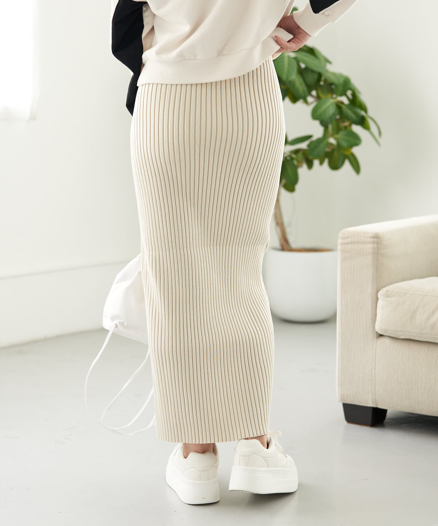 ・同素材のニットでセットアップでのスタイリングがおすすめです。
