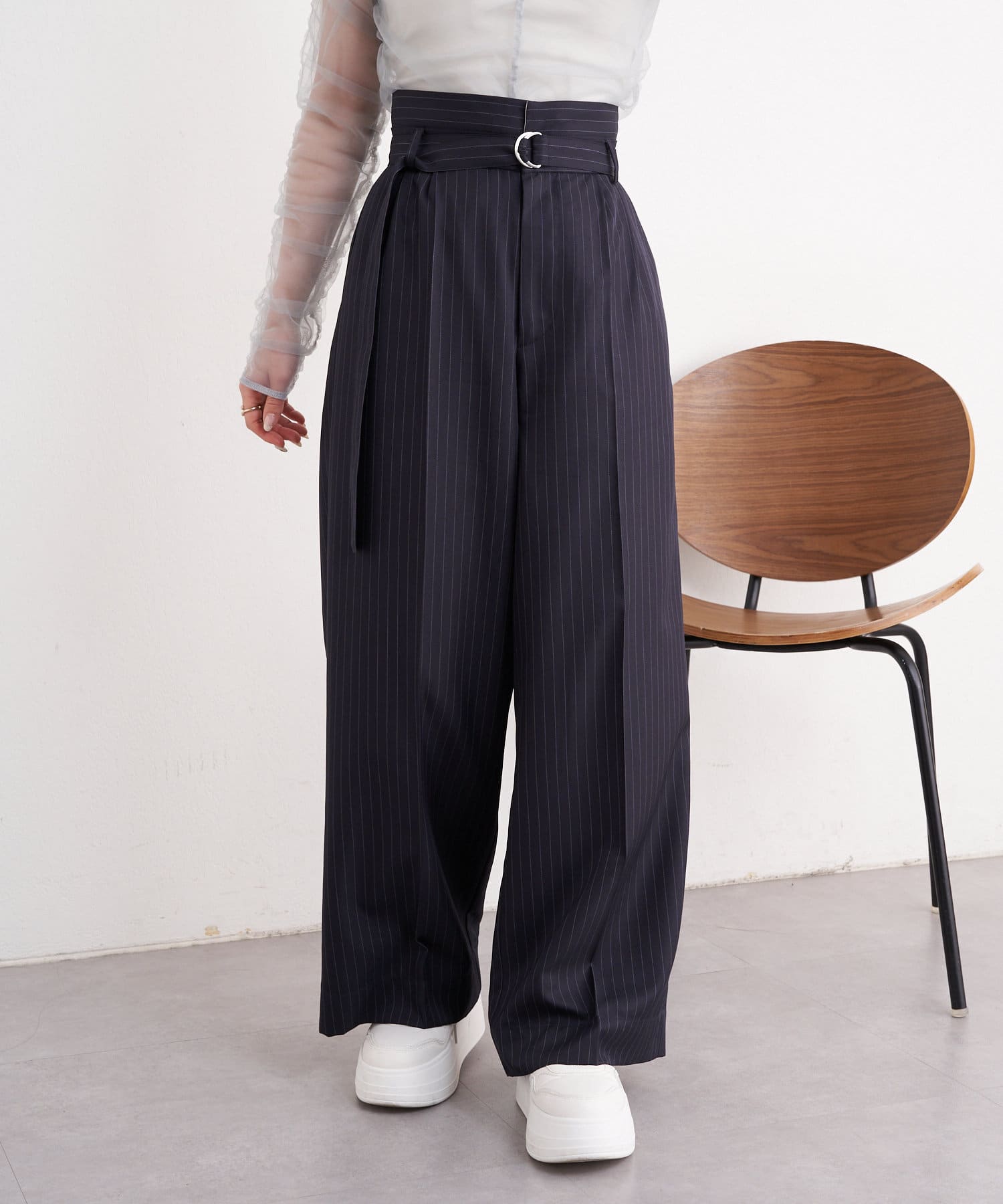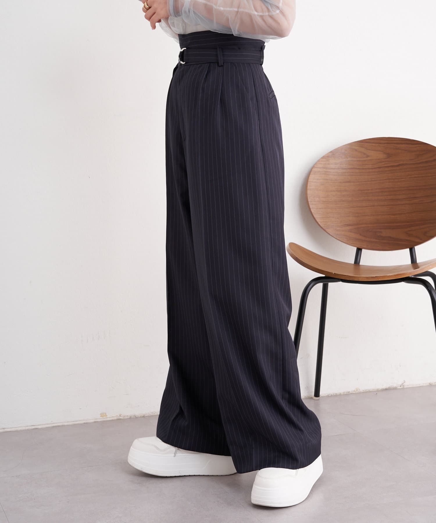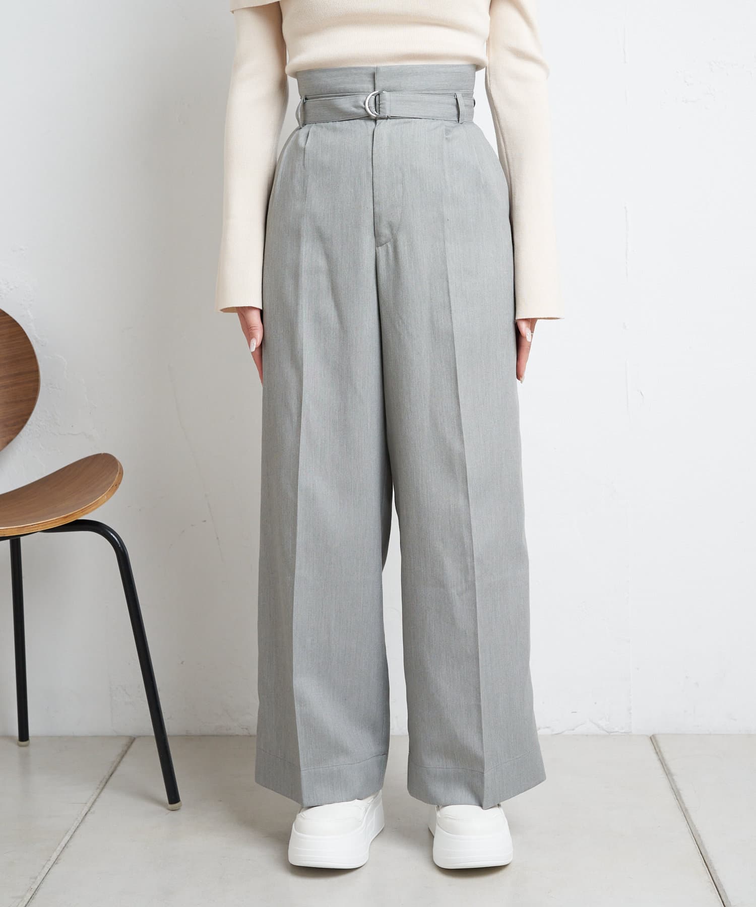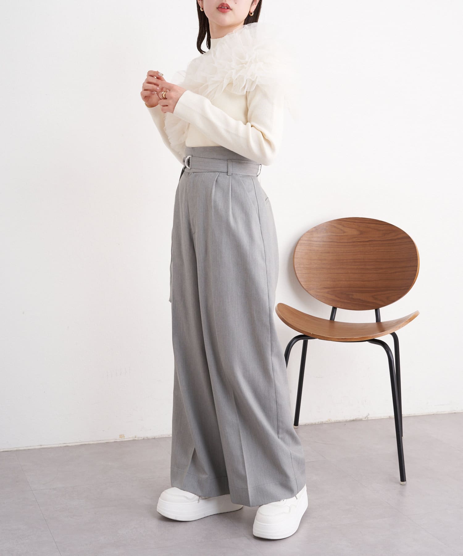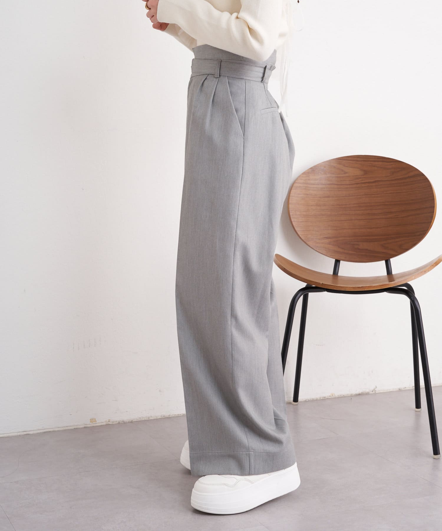 【Chico】ウエストベルトデザインワイドスラックスパンツ