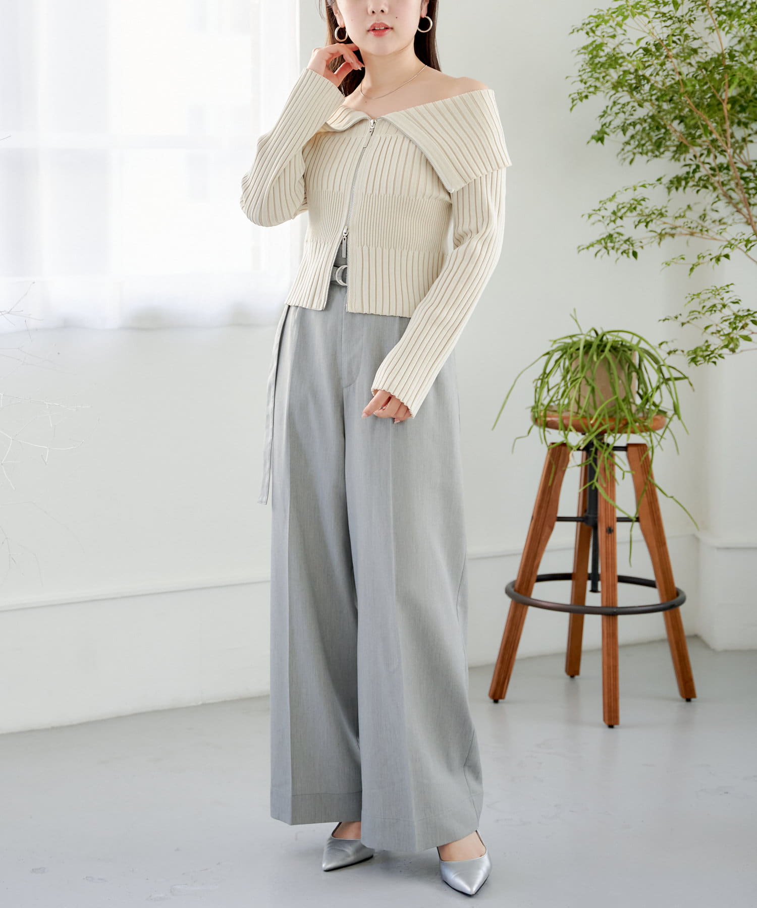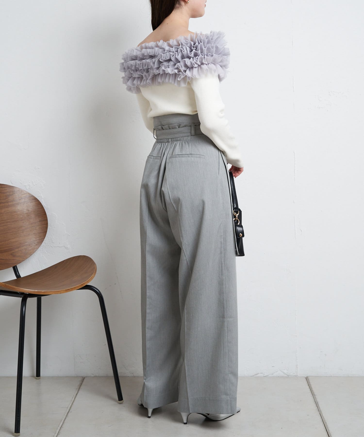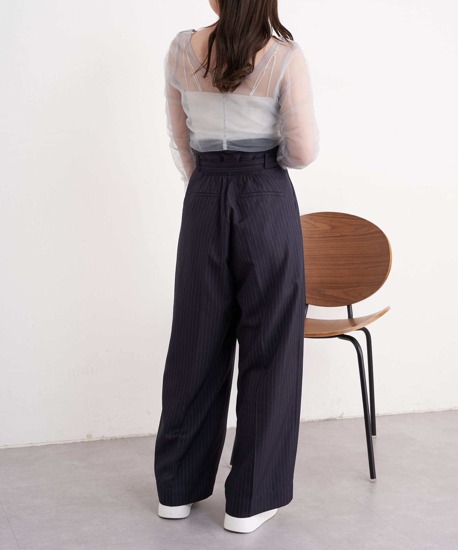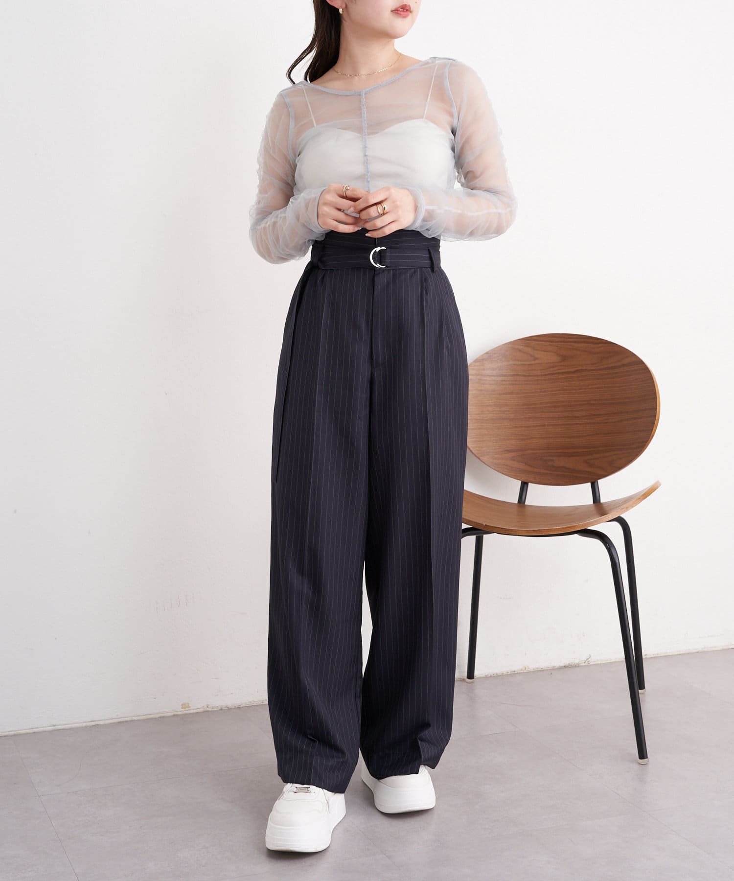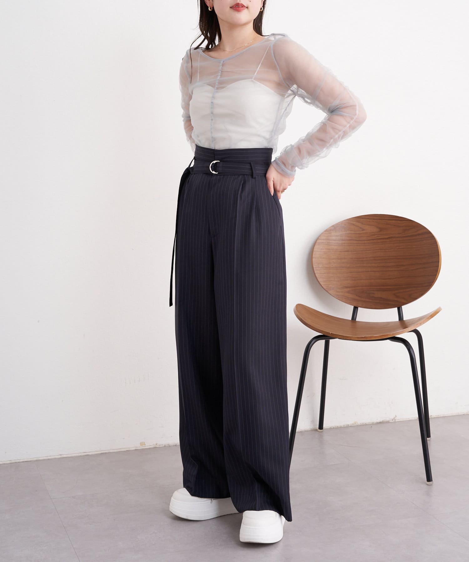 【Chico】ウエストベルトデザインワイドスラックスパンツ