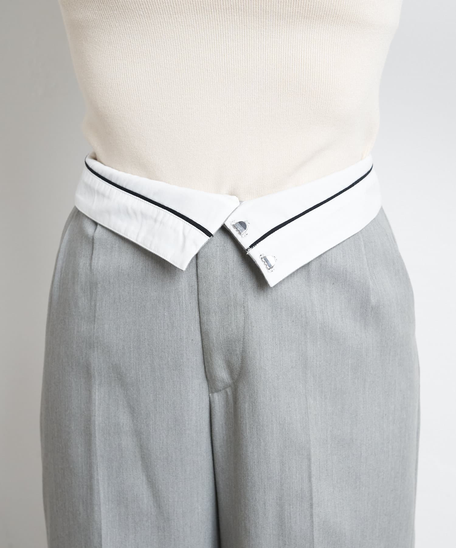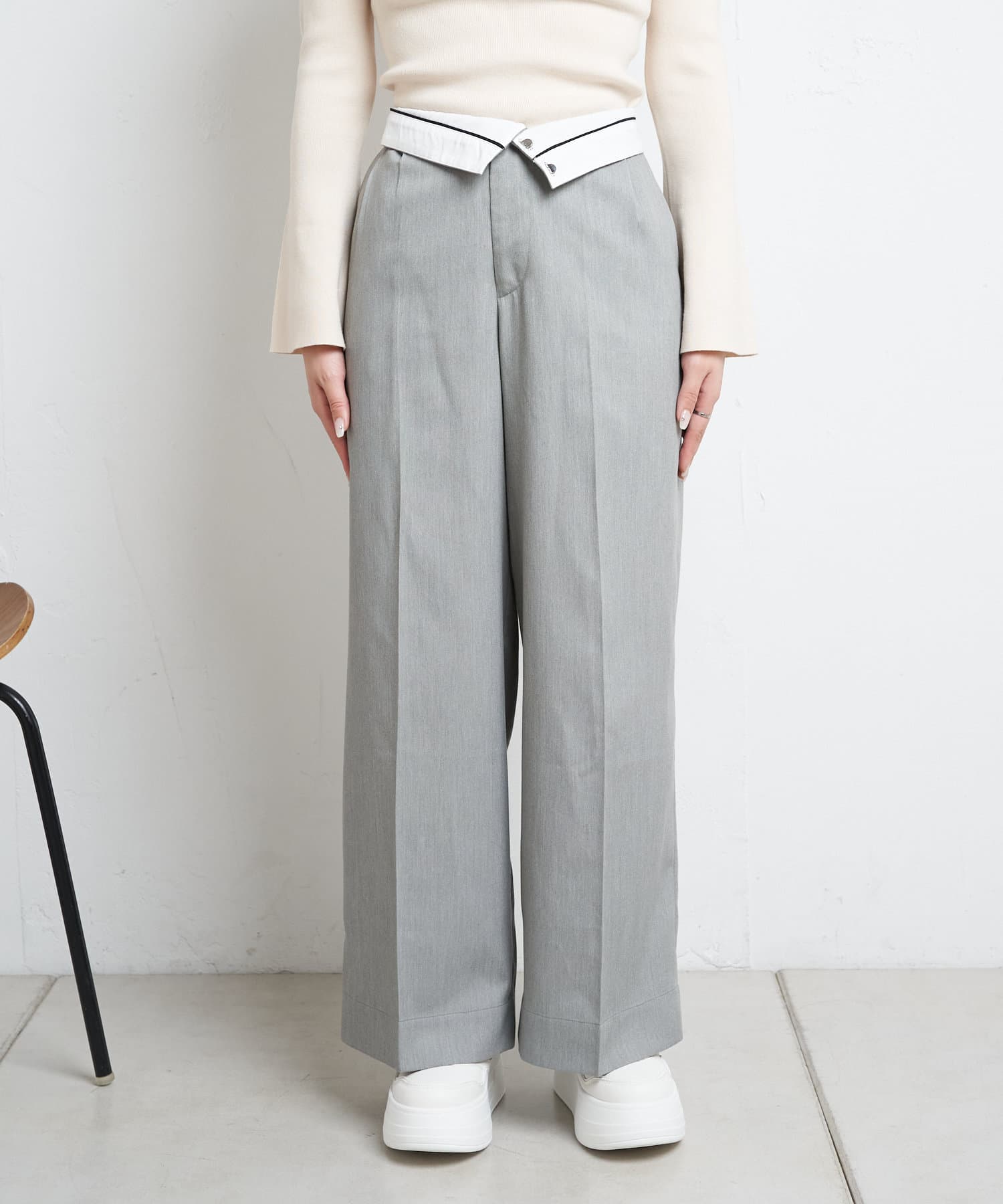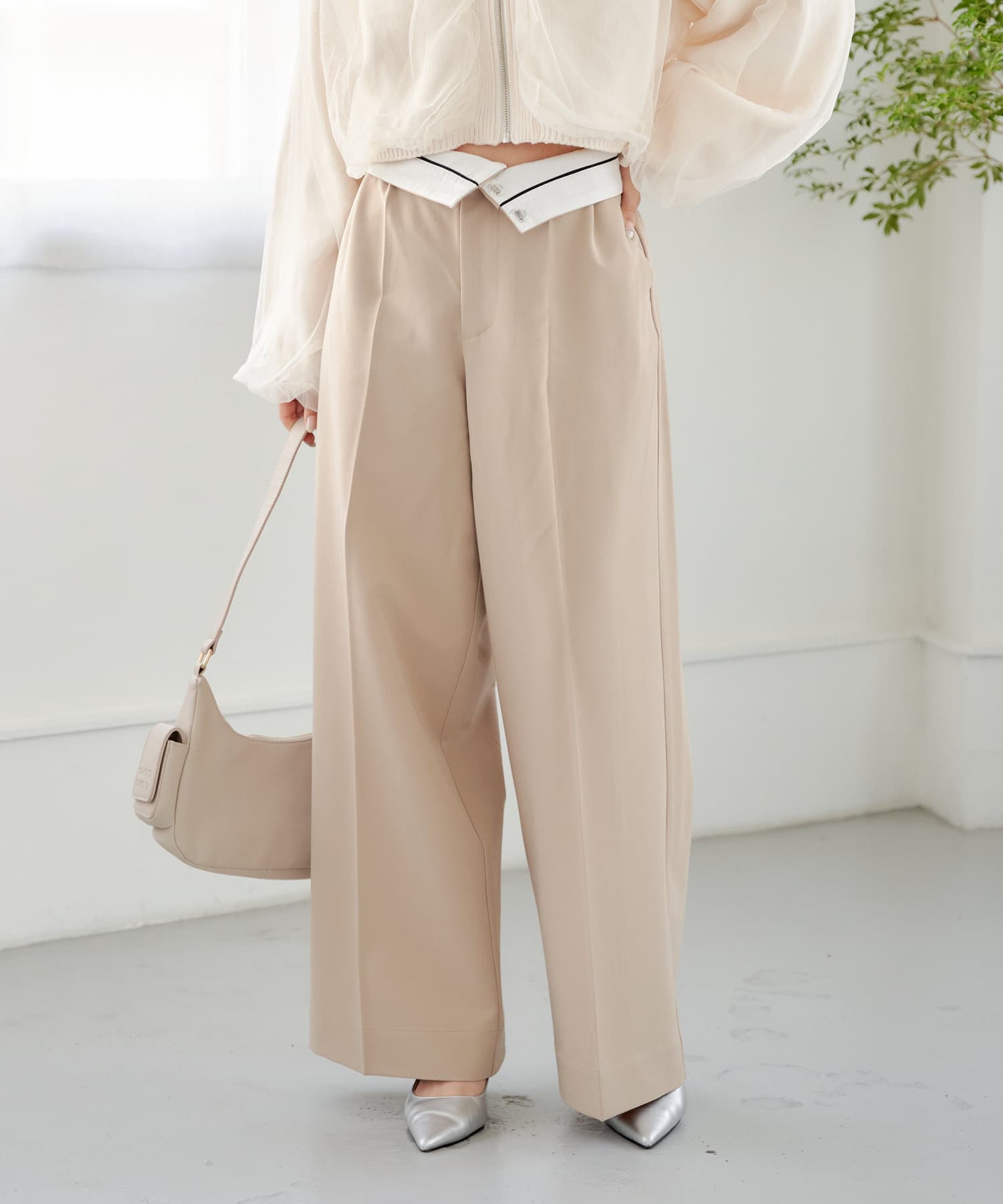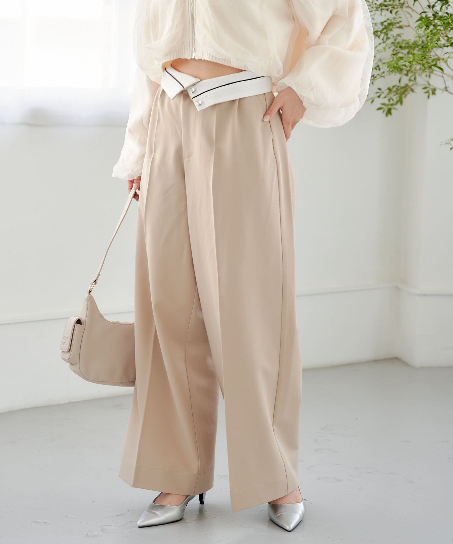 折り返しデザインのウエストがポイントのスラックスパンツ