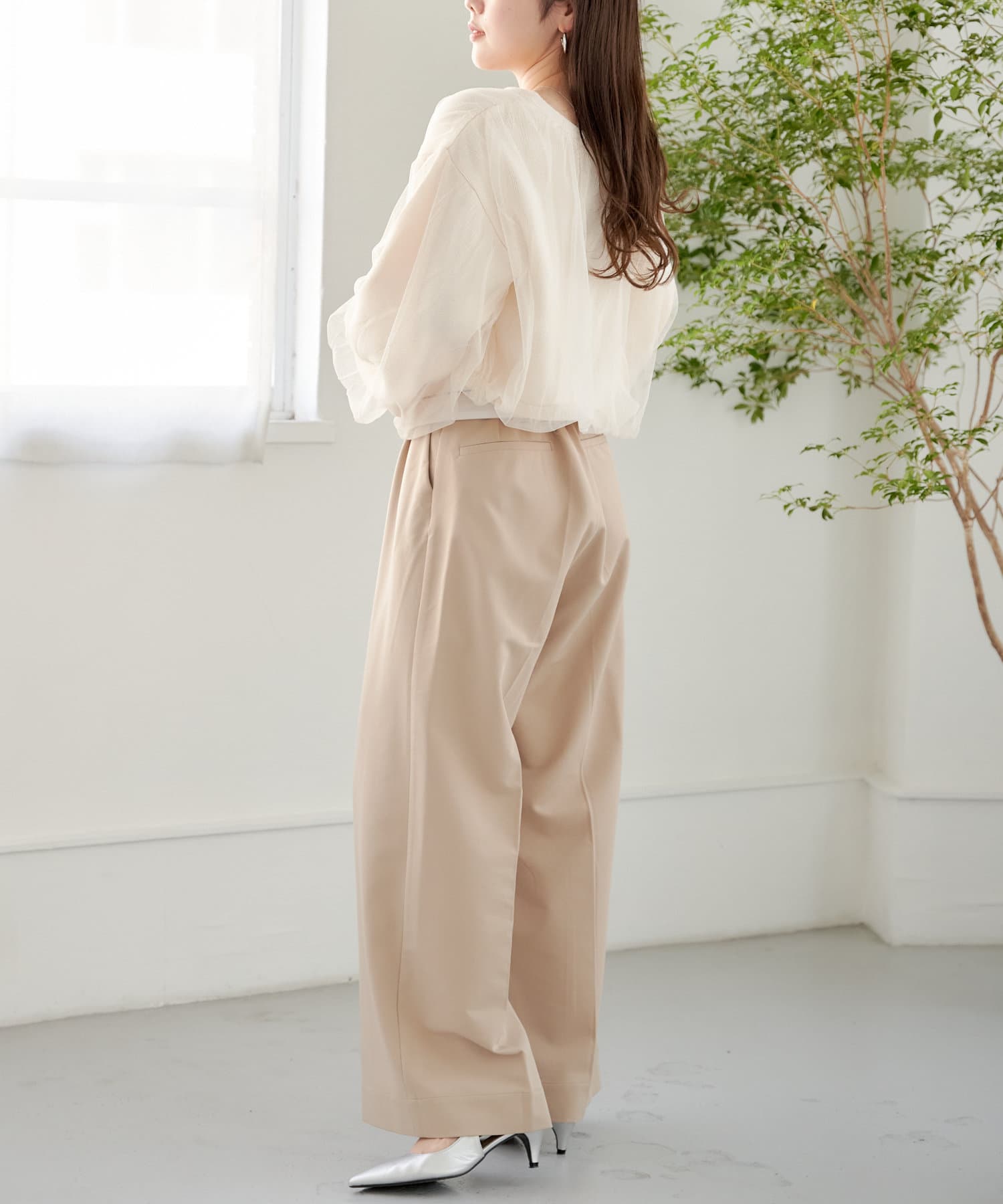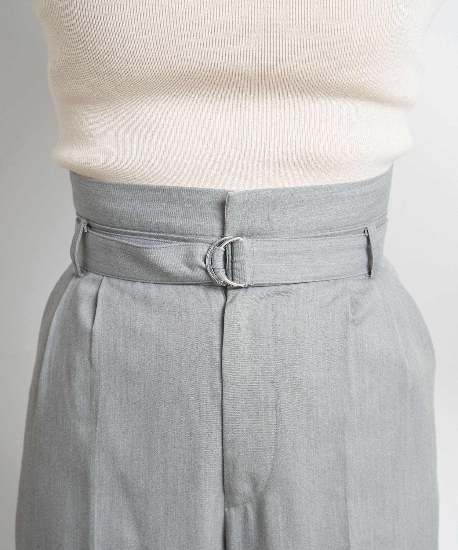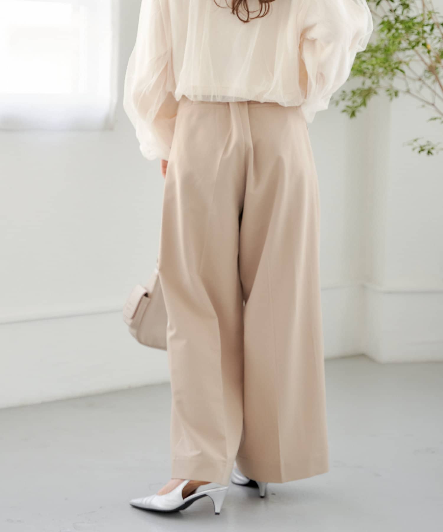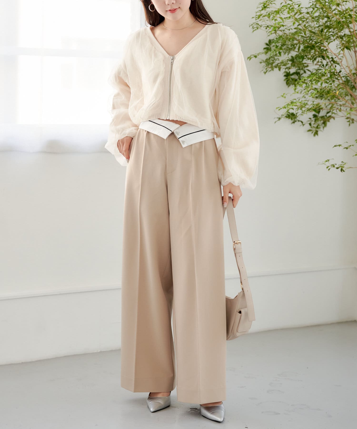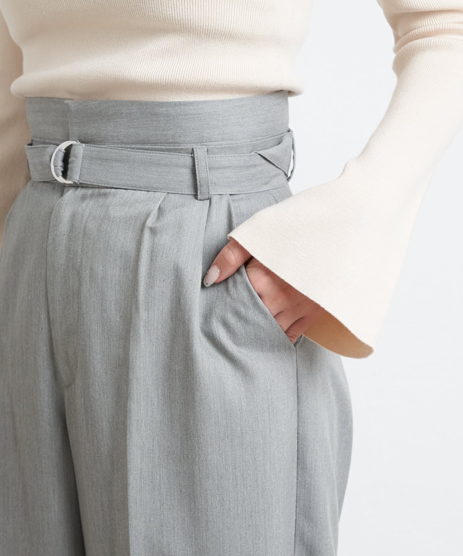 折り返しデザインのウエストがポイントのスラックスパンツ