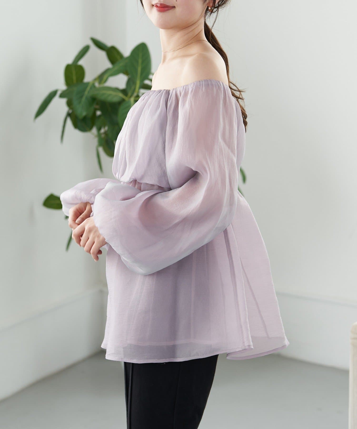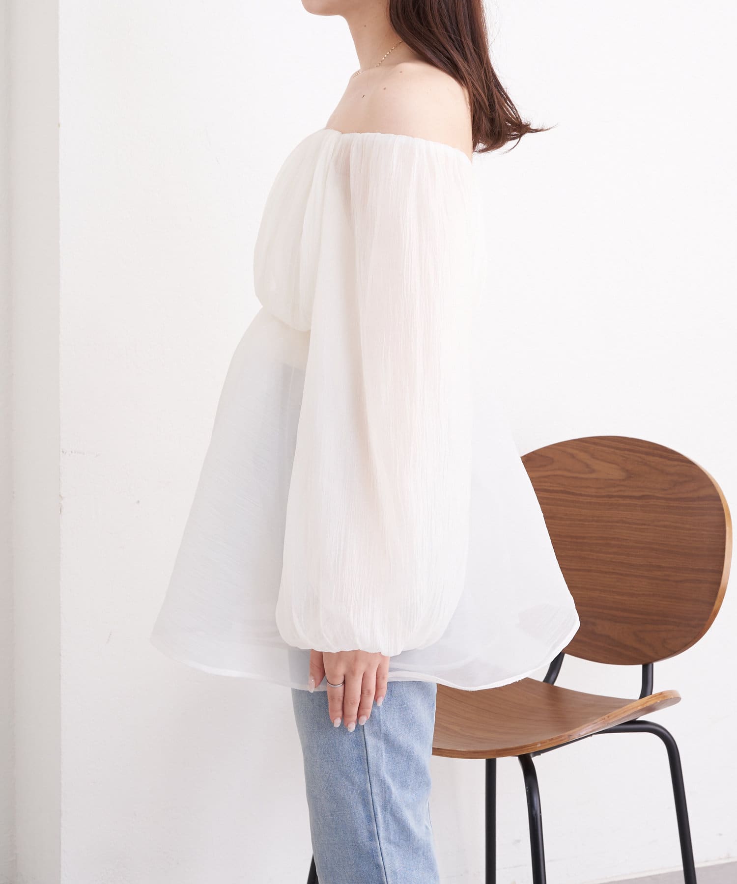 ふんわりと広がる袖と程よい肌見せでレディライクに仕上がります。