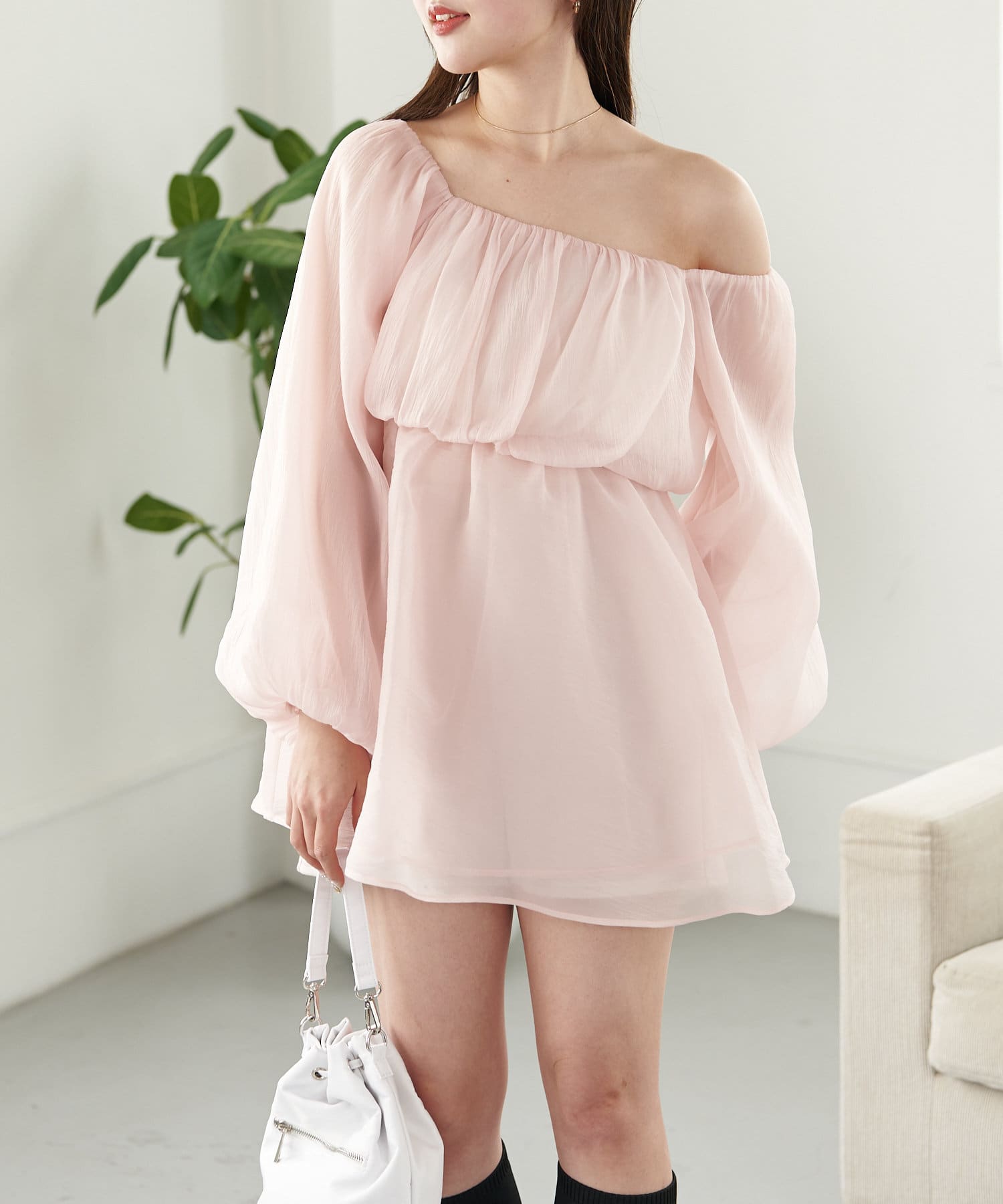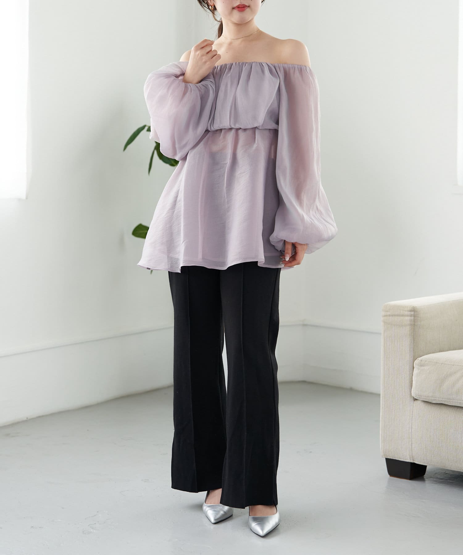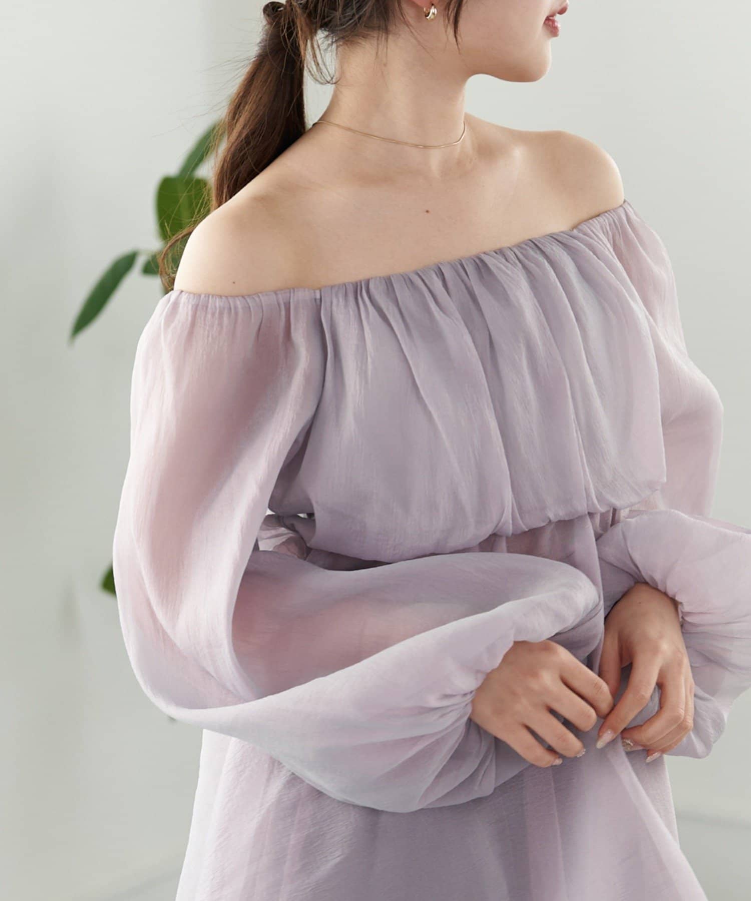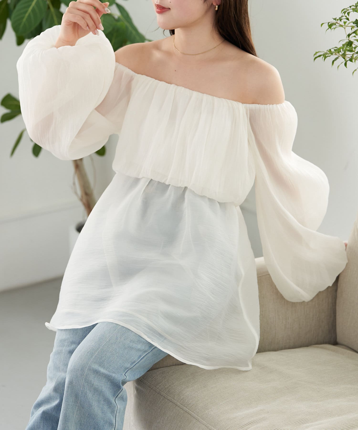 シアー感が可愛いオフショルチュニック