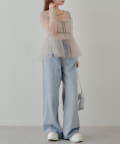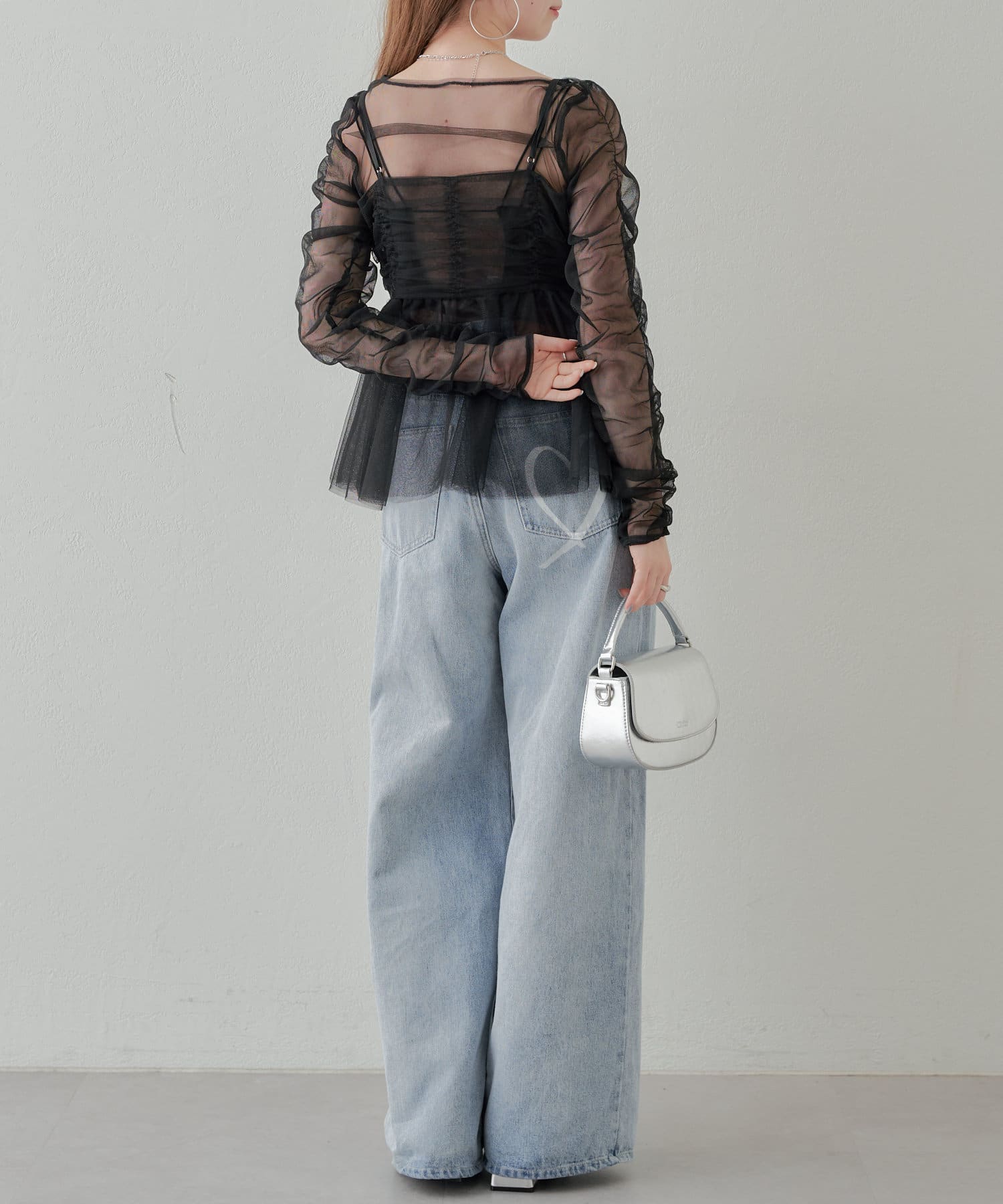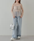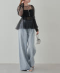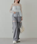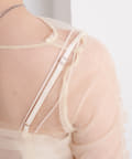 シアー素材の肌見せで女性らしい印象に。