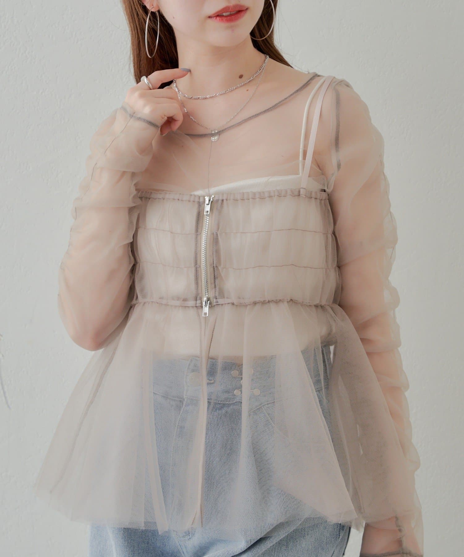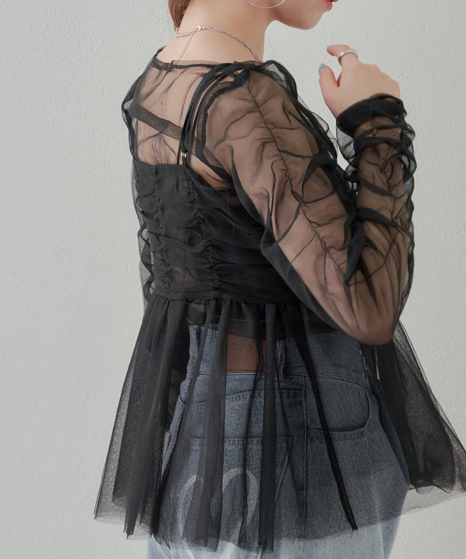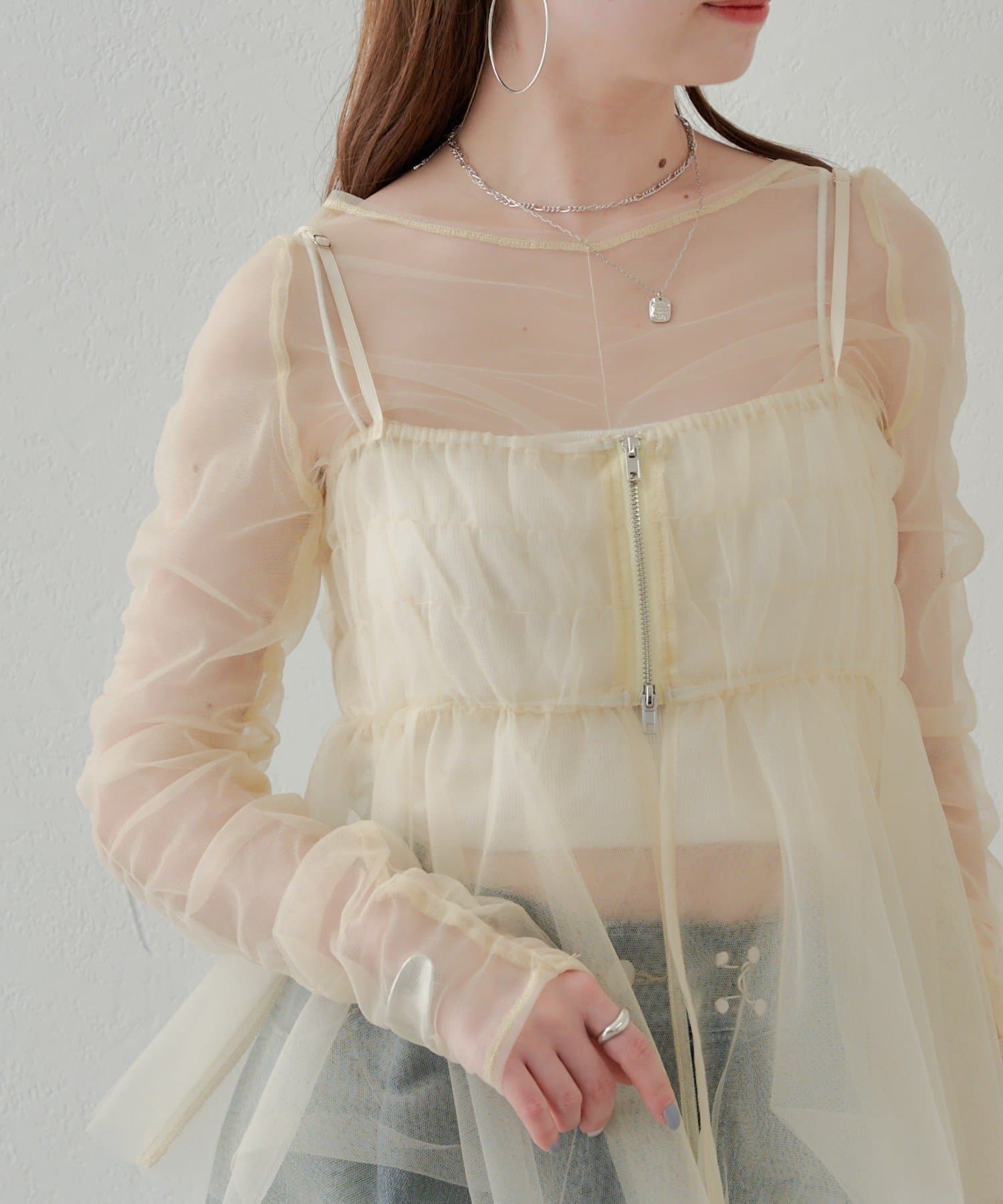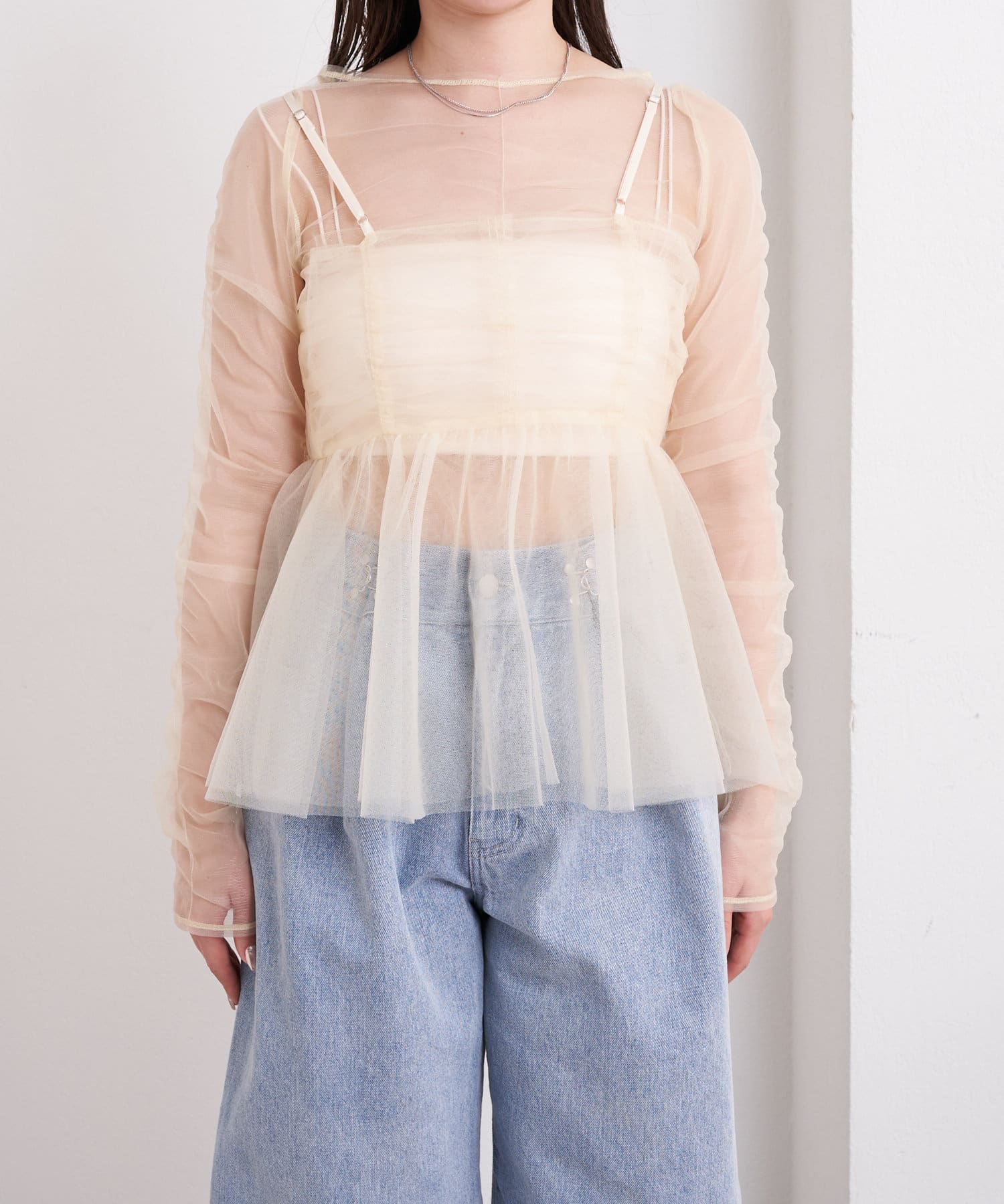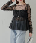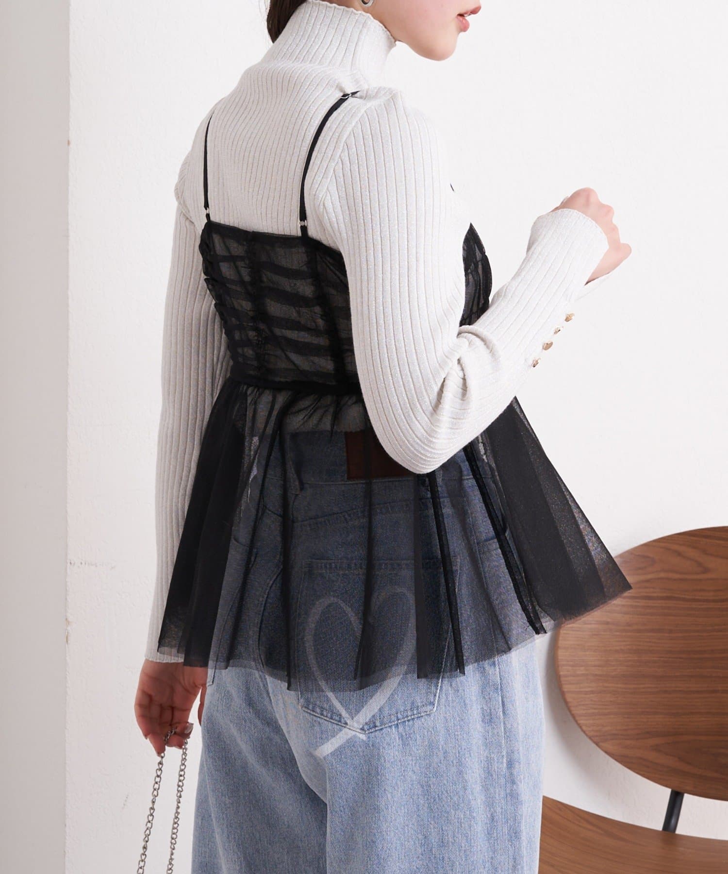華やかなチュールキャミとシアートップスのセットアイテム