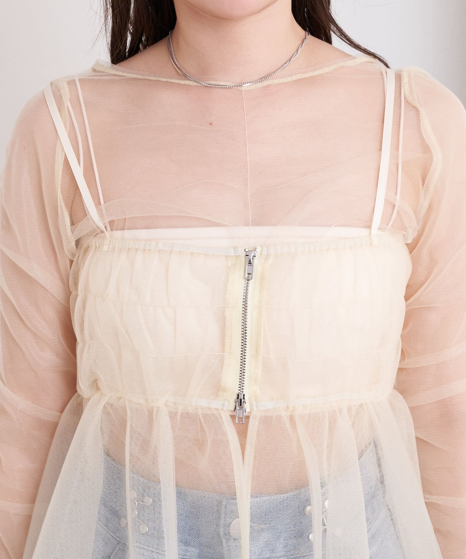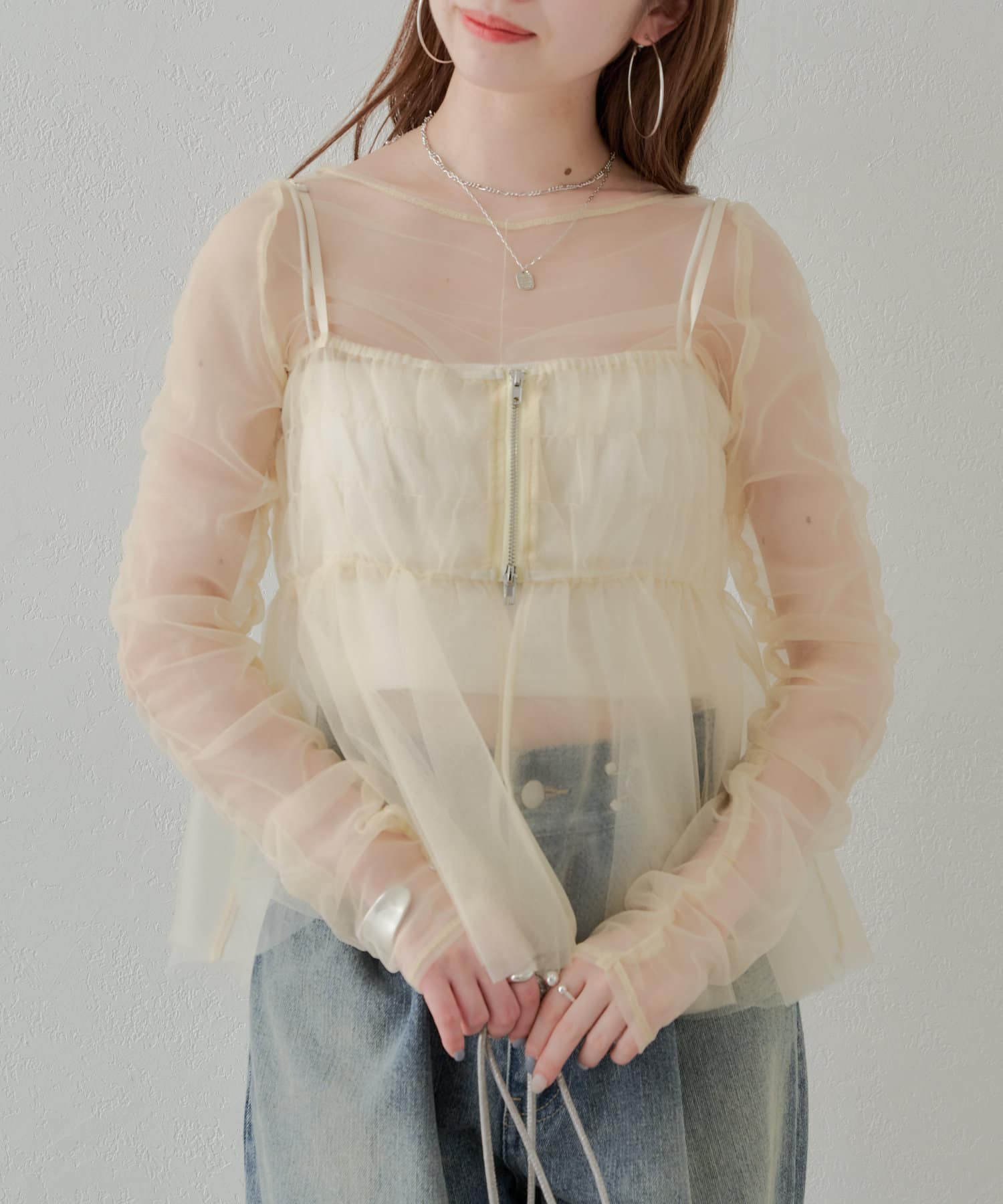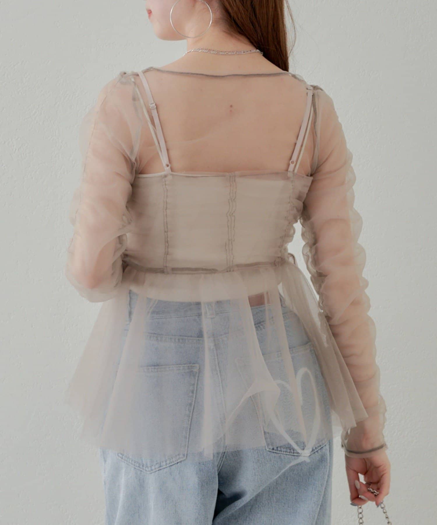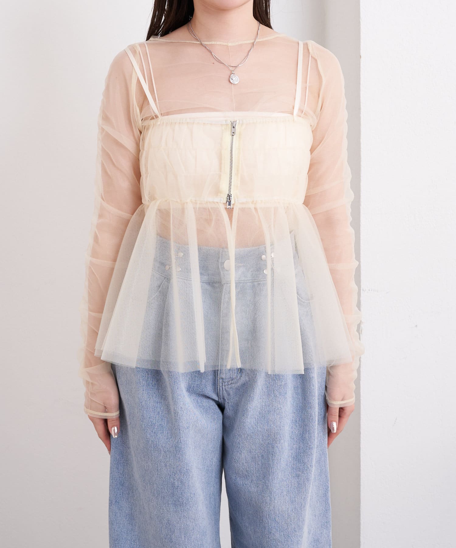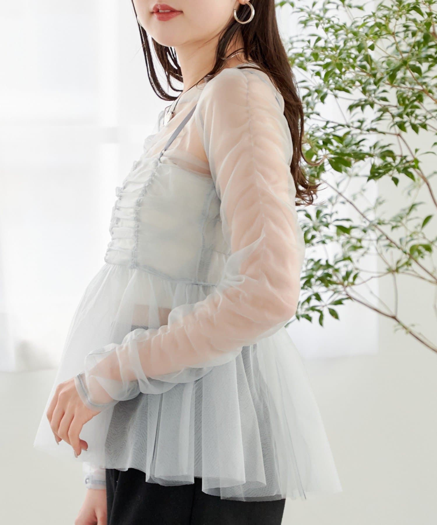 華やかなチュールキャミとシアートップスのセットアイテム