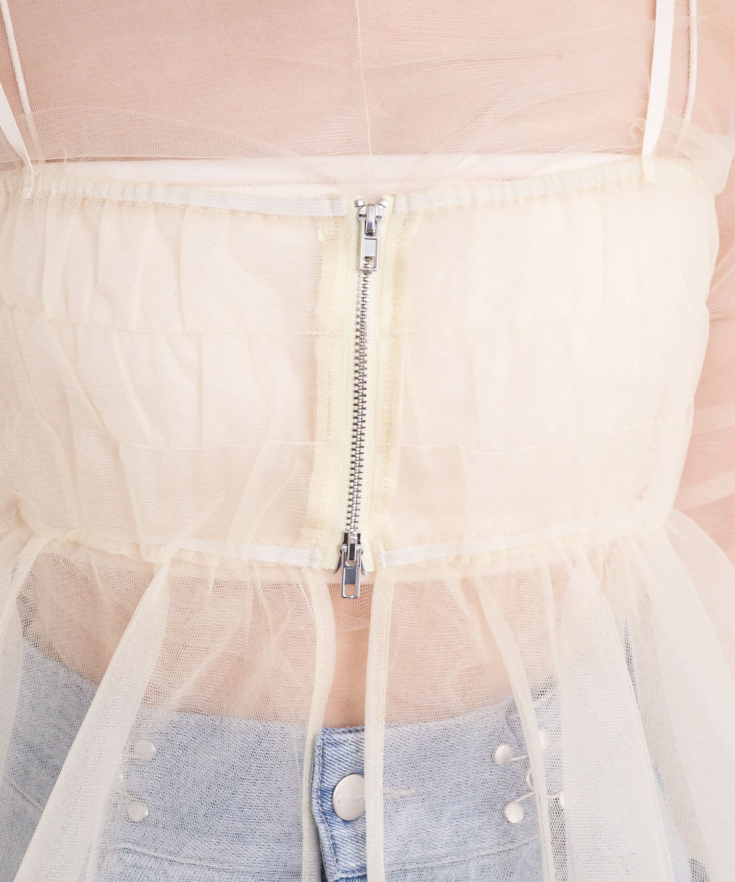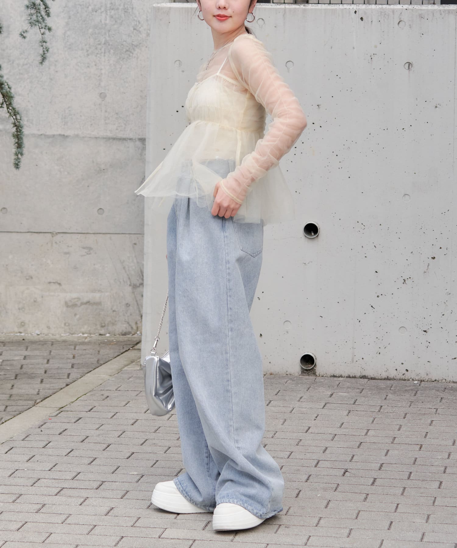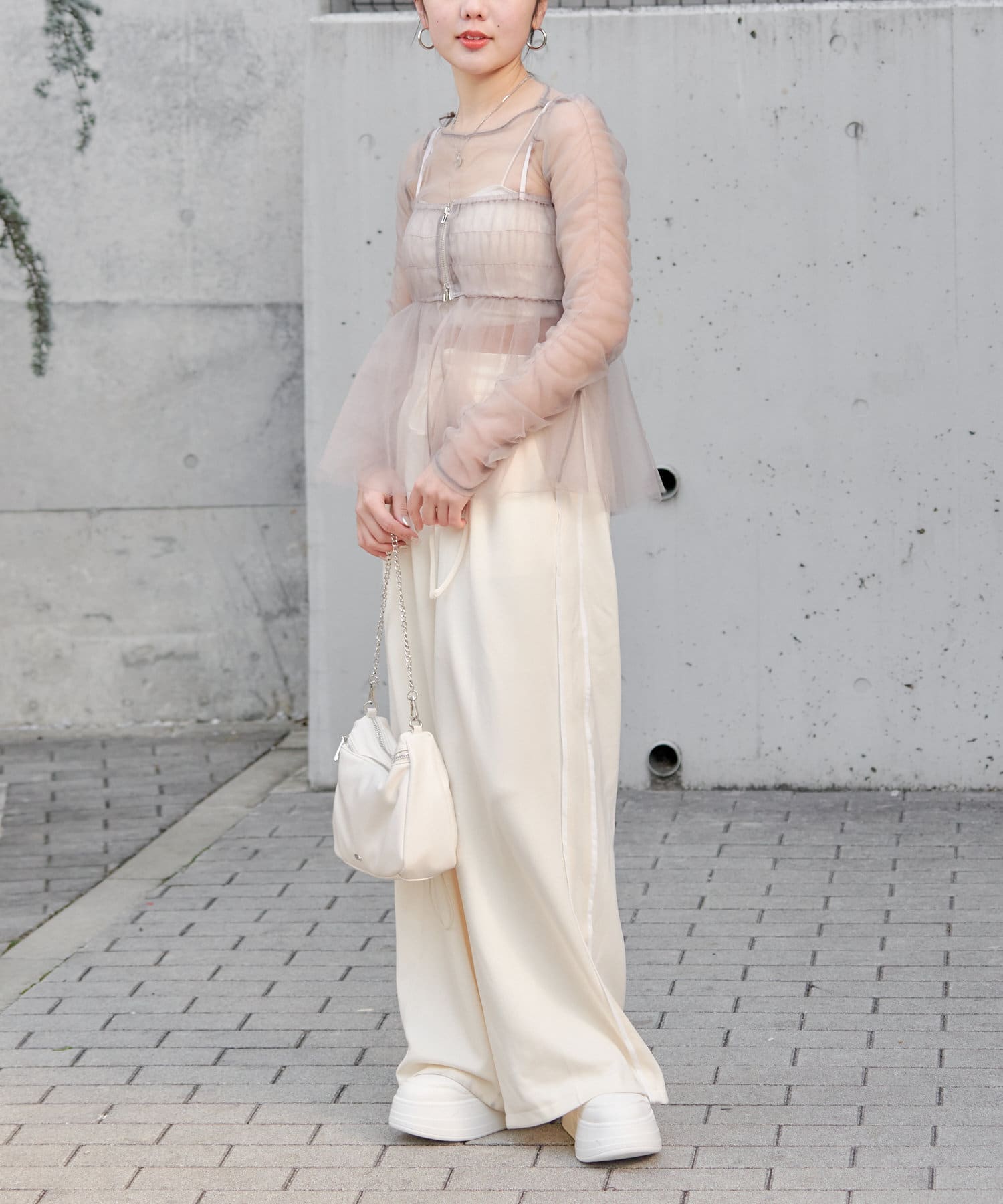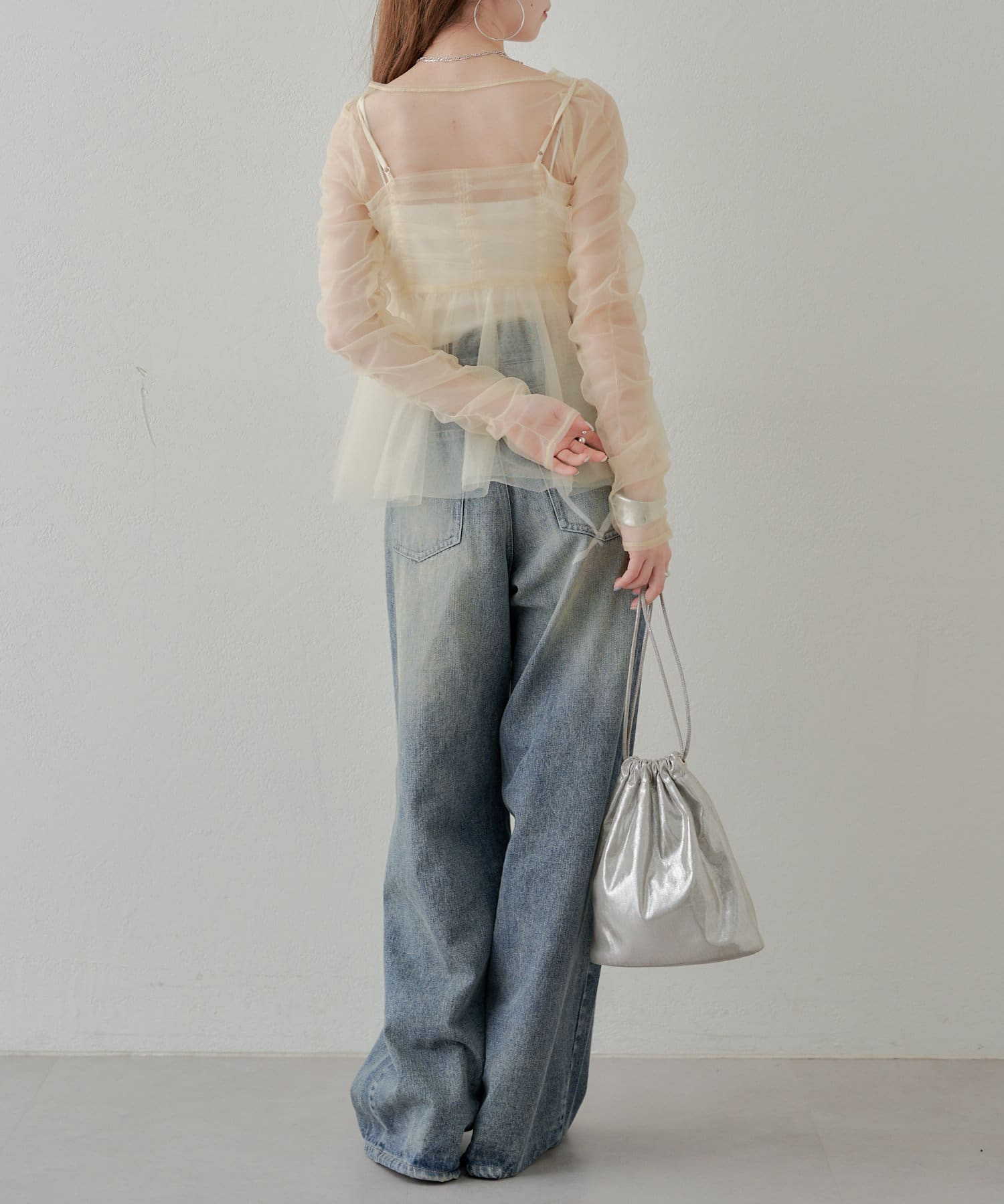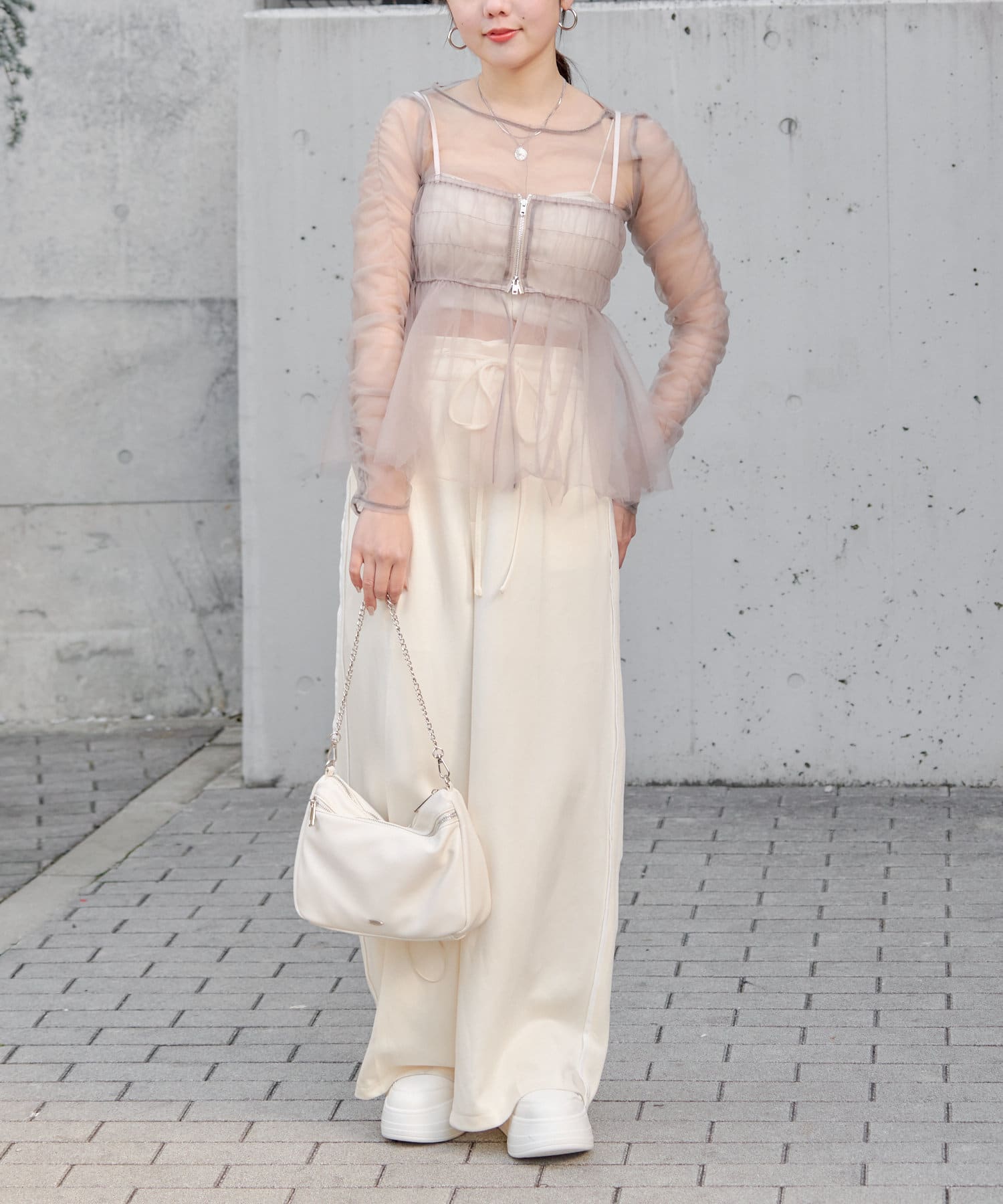 華やかなチュールキャミとシアートップスのセットアイテム