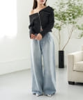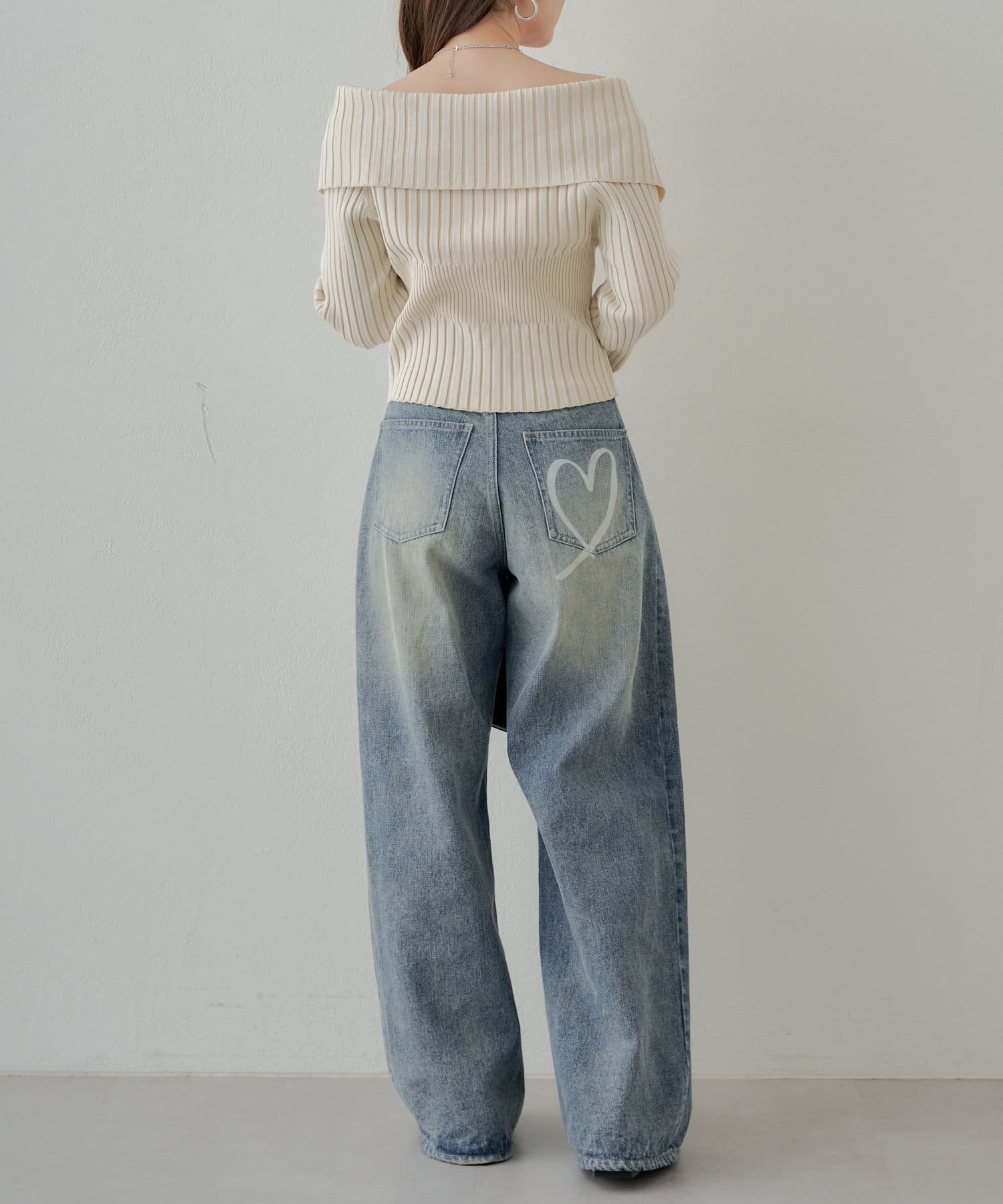 ▶おすすめアイテム:ハートプリントボックスワイドデニムパンツ ウエストベルトデザインワイドスラックスパンツ