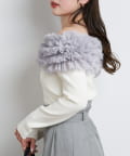 オフショルがちょうどよい感じで、デコルテが綺麗に見えます!とにかく首周りのふわふわがかわいいです♡色味のピンクも濃すぎず、ほどよい甘さです。