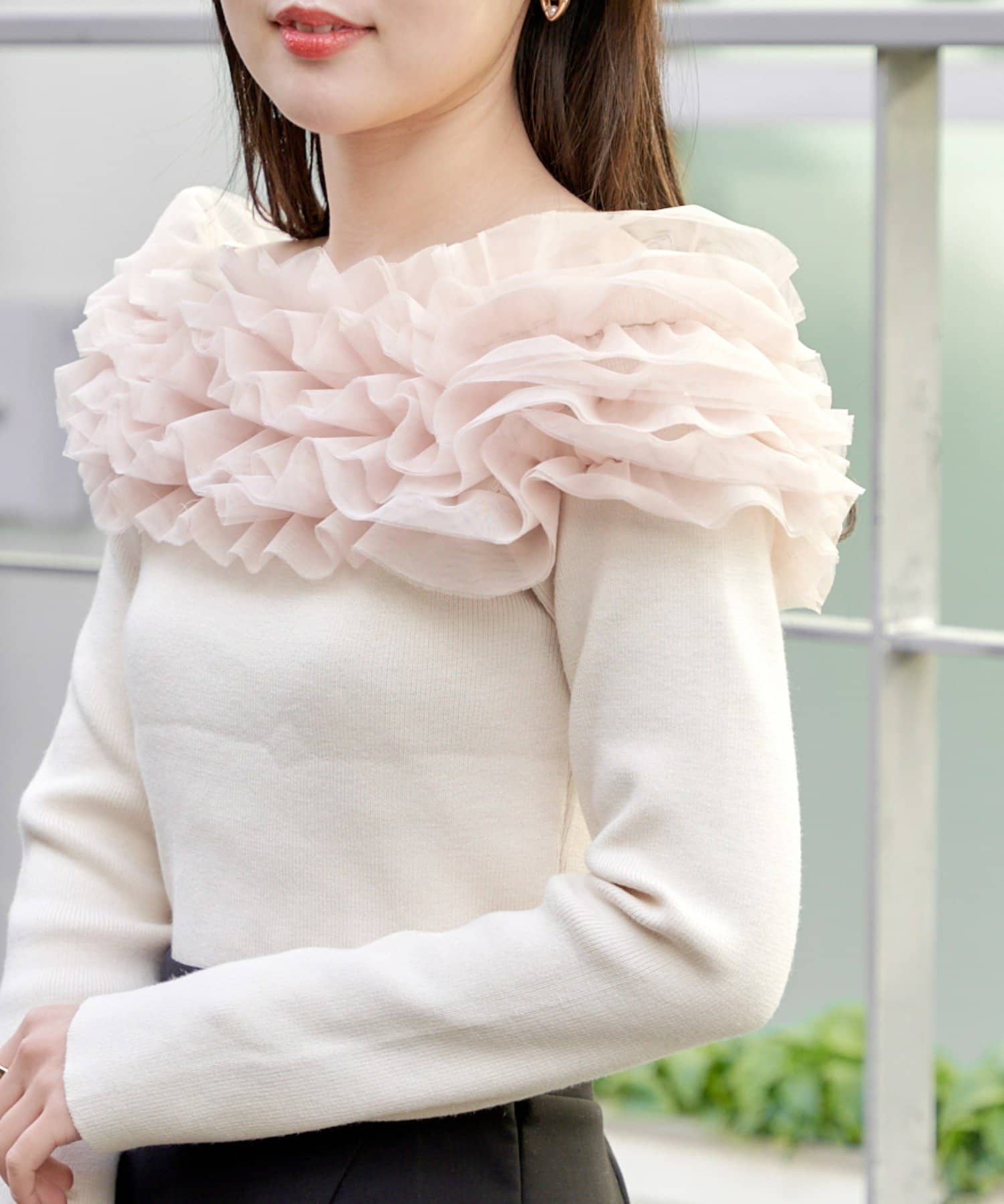 TOP > OUTLET > レディース > トップス > ニット/セーター > 【Chico】チュールボリュームオフショルニット