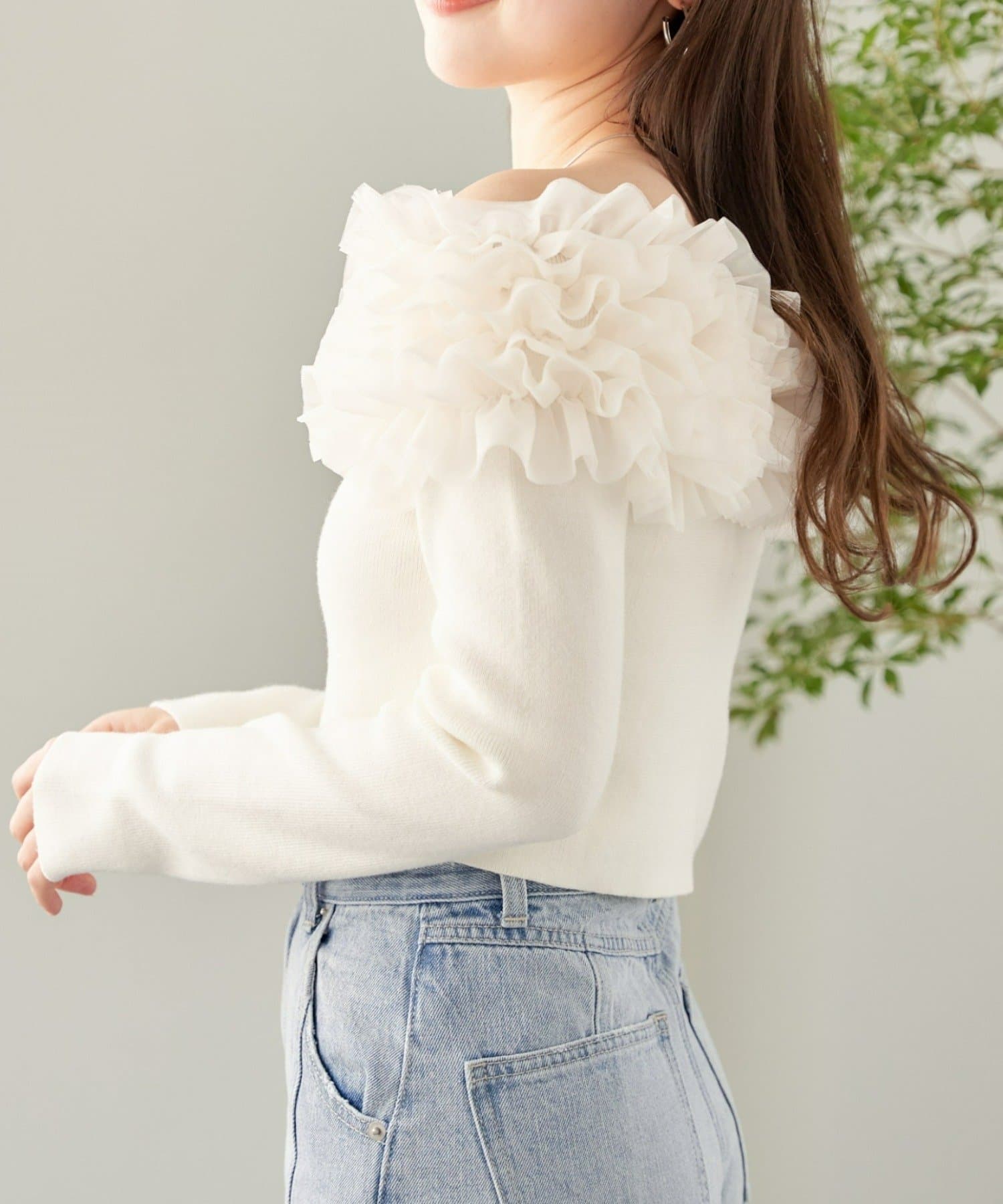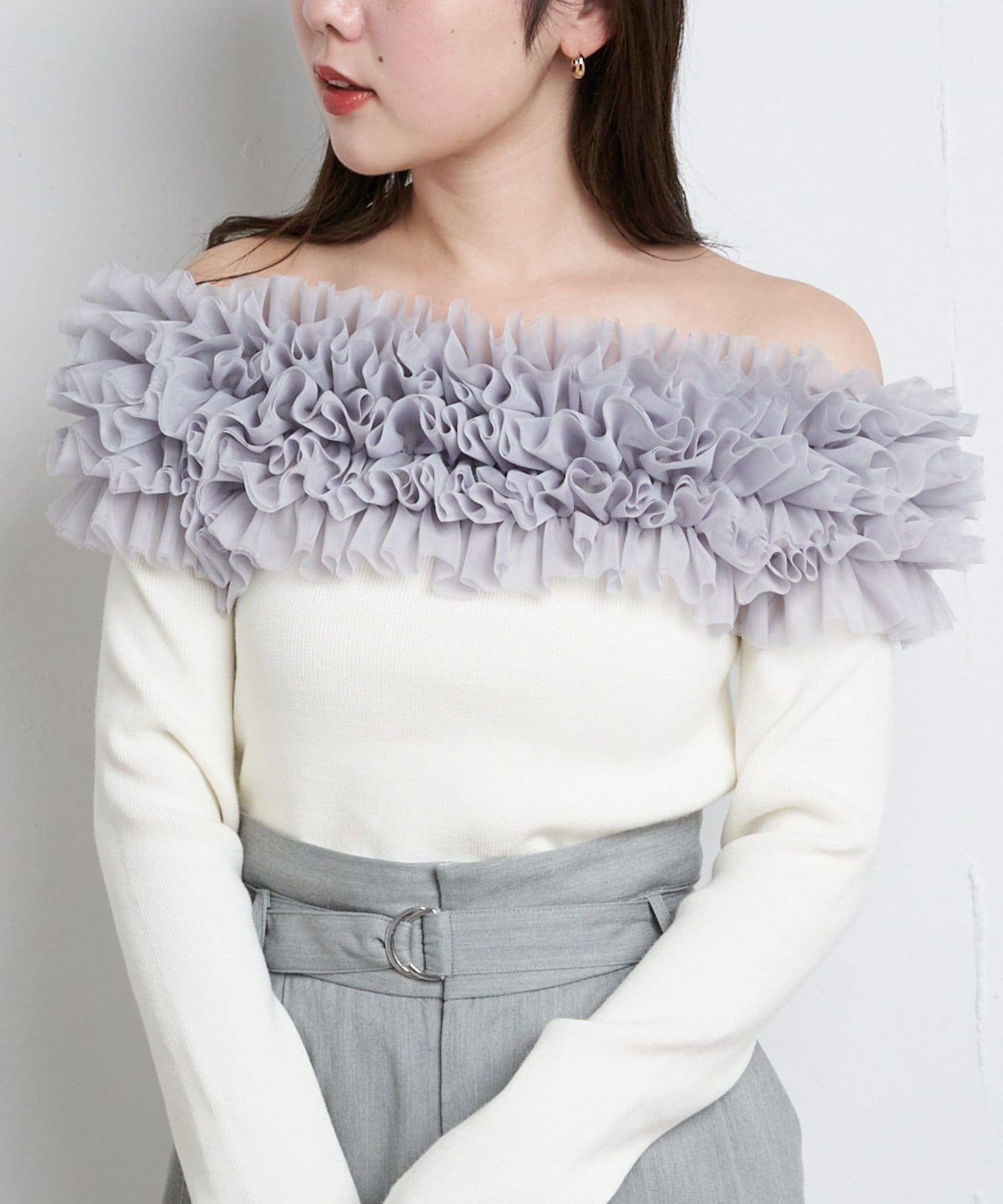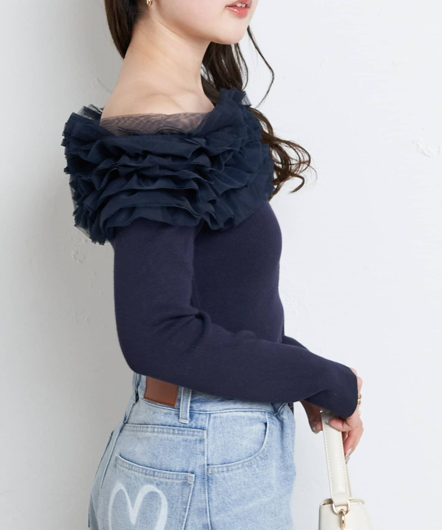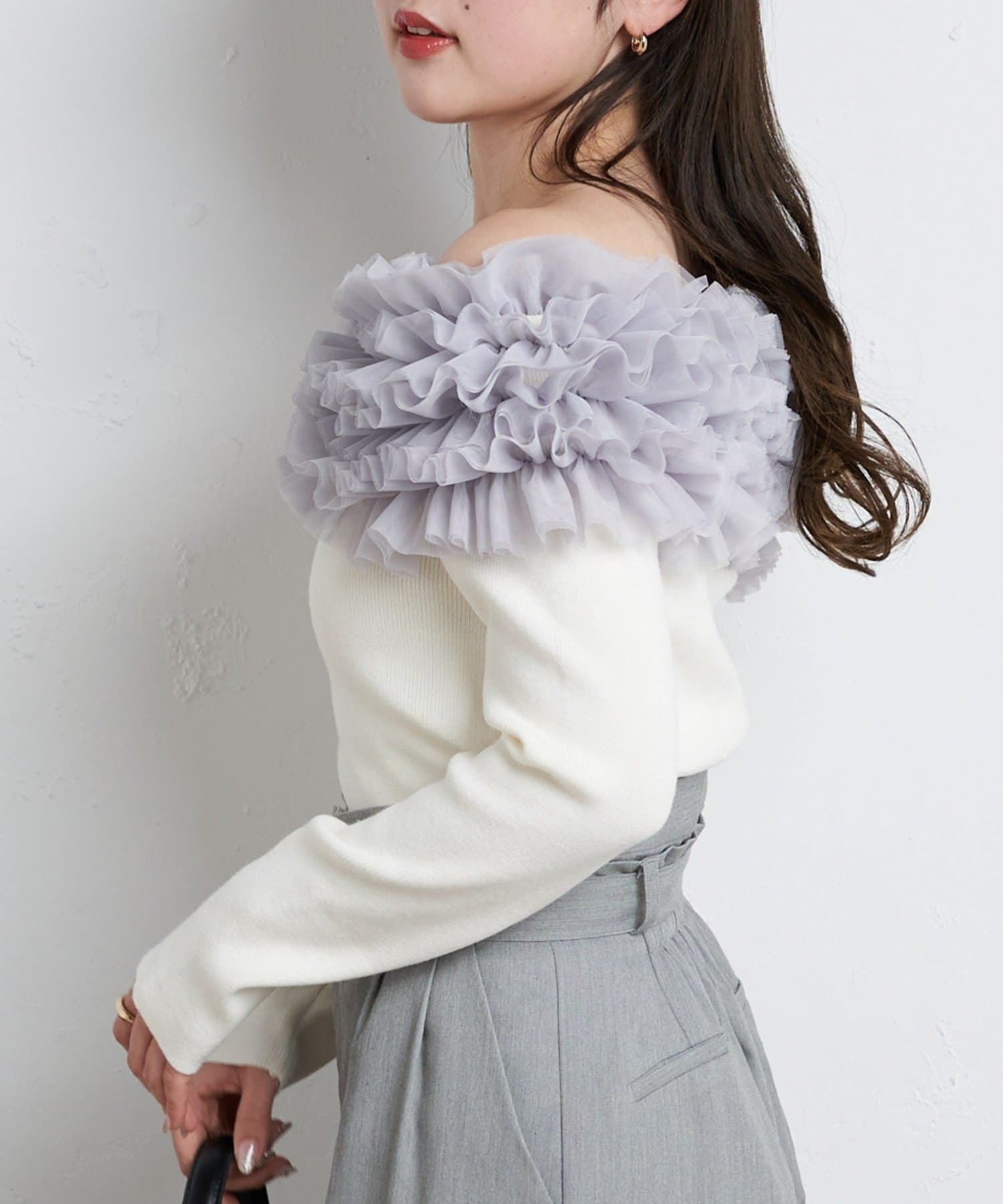 • OUTLET(アウトレット) 【Chico】チュールボリュームオフショルニット