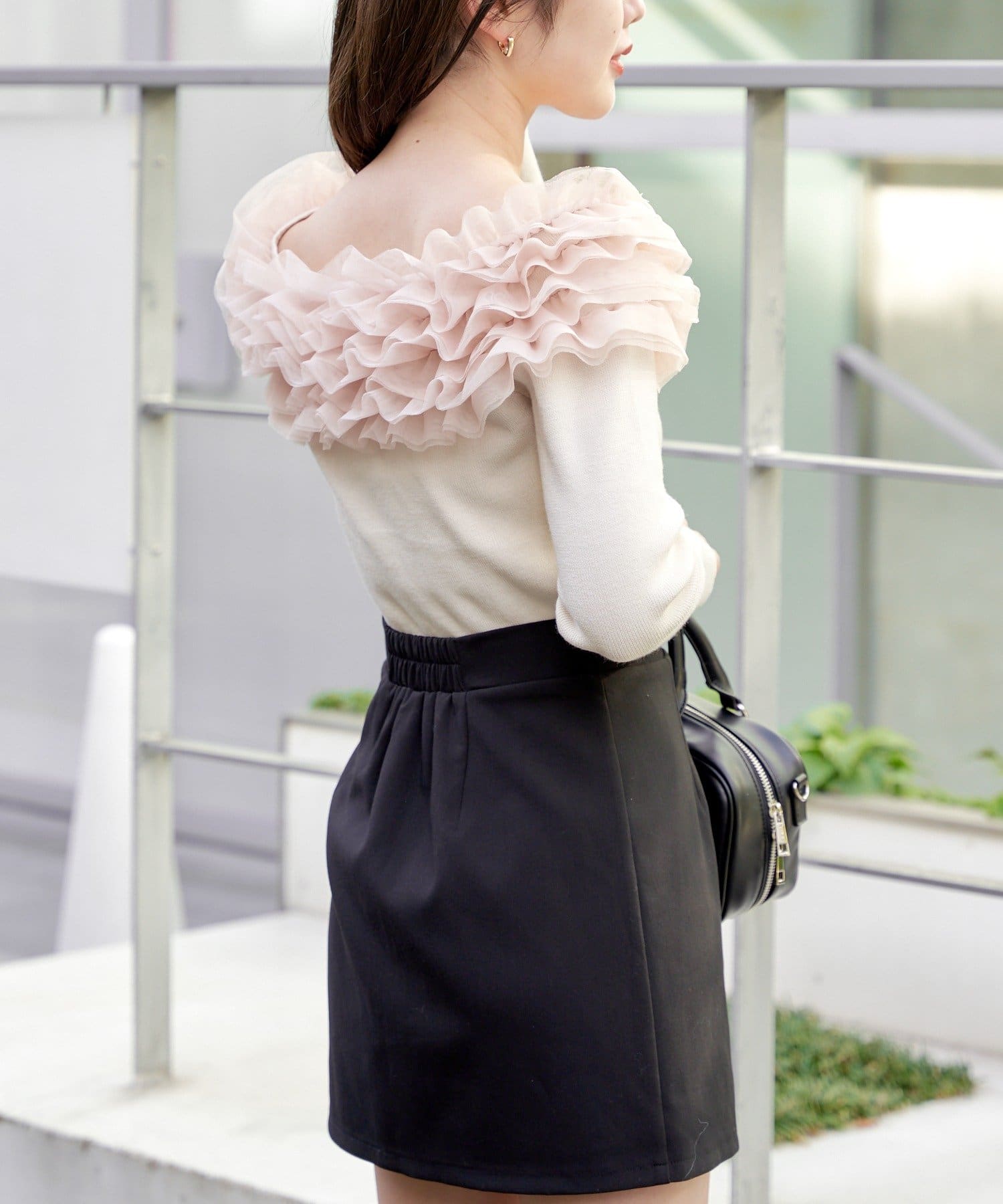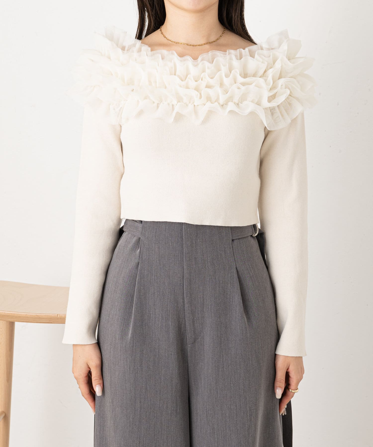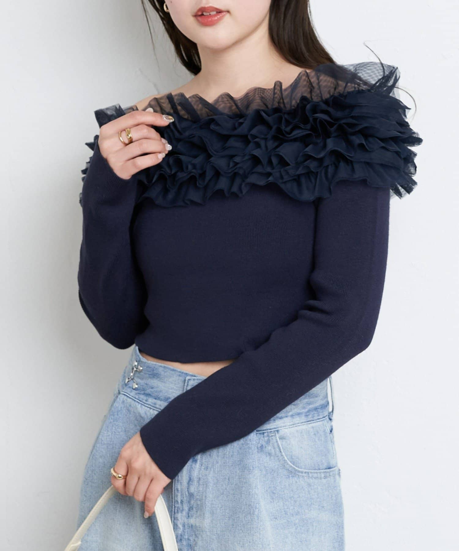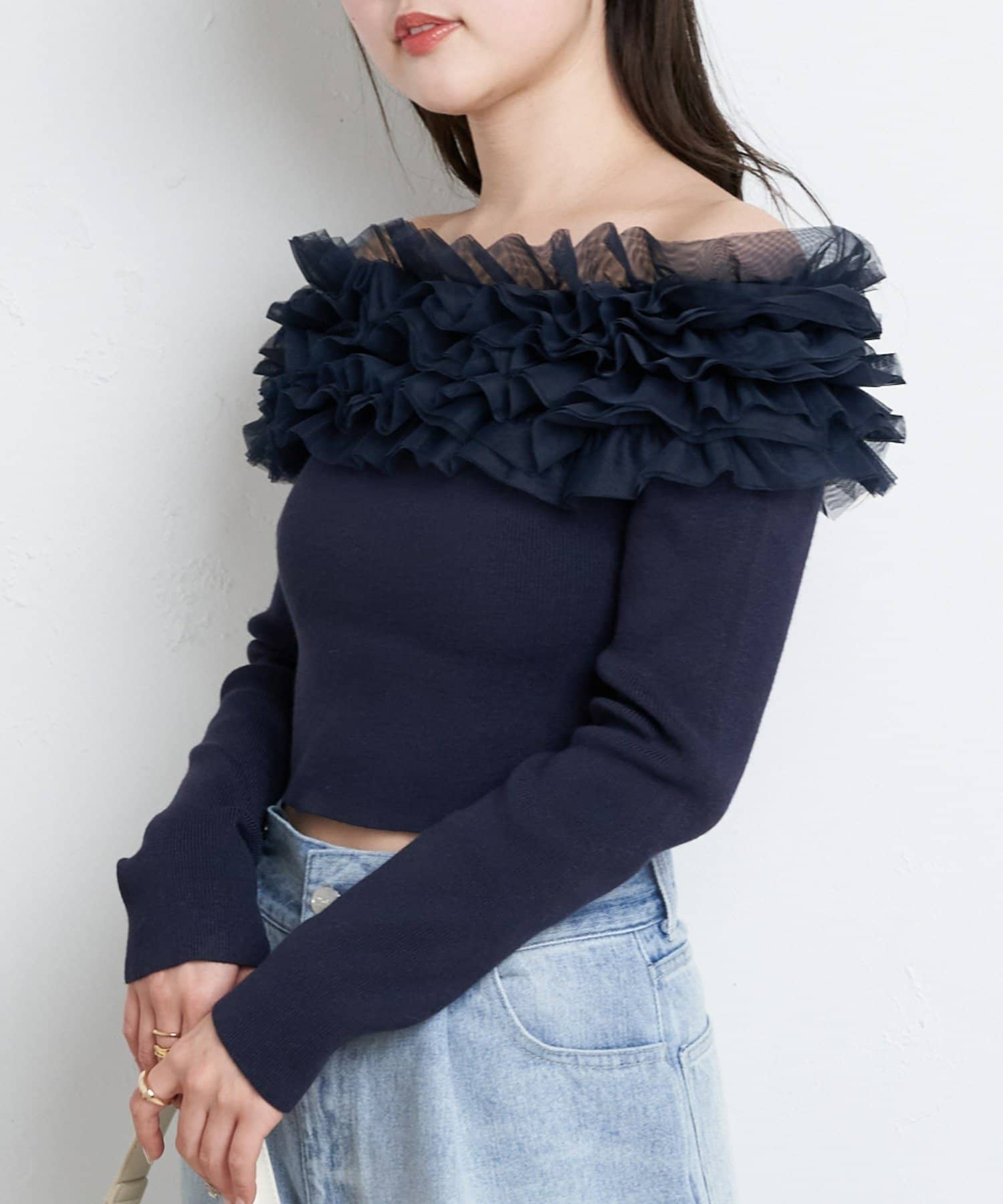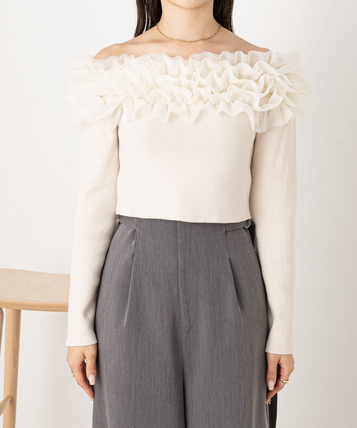 • OUTLET(アウトレット) 【Chico】チュールボリュームオフショルニット