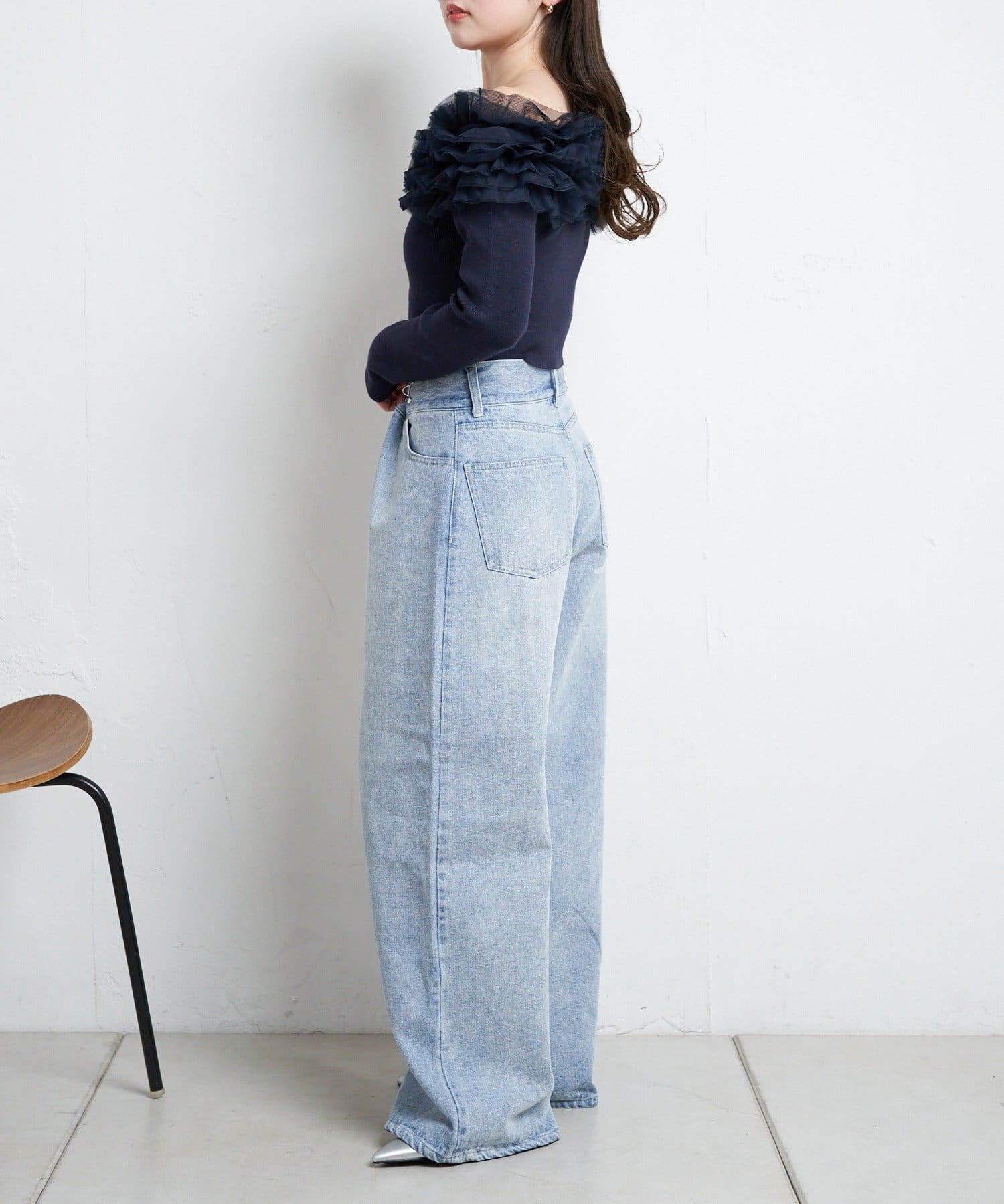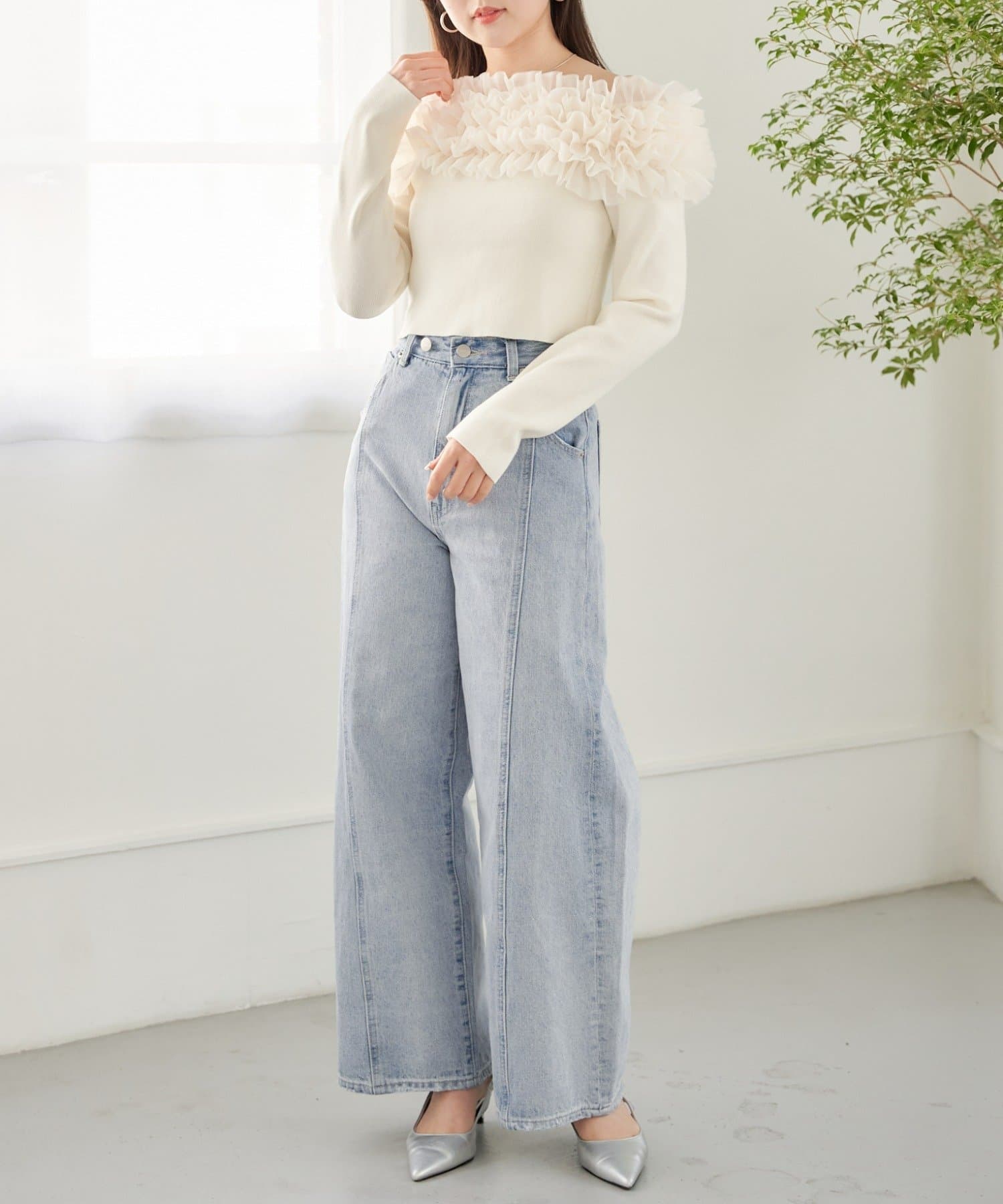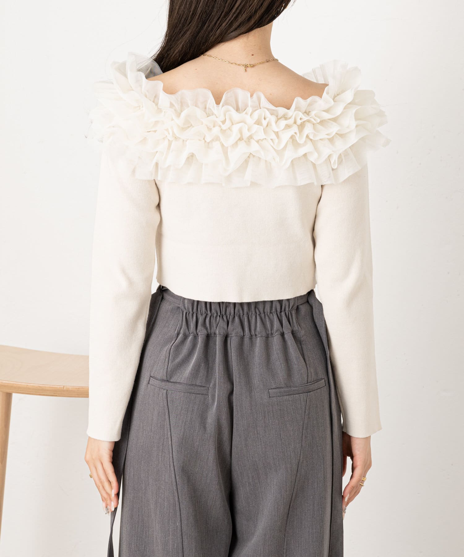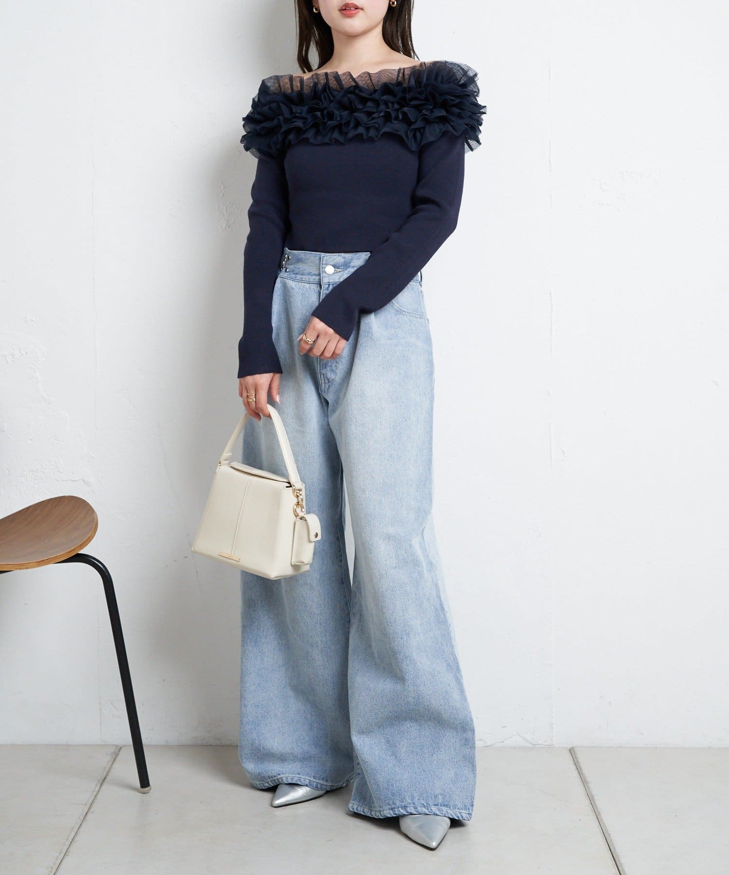 • OUTLET(アウトレット) 【Chico】チュールボリュームオフショルニット