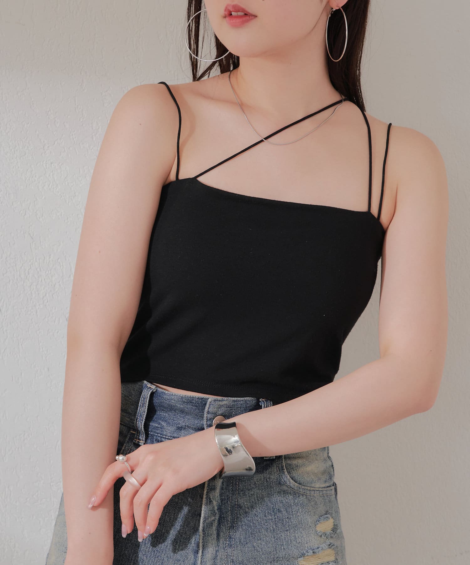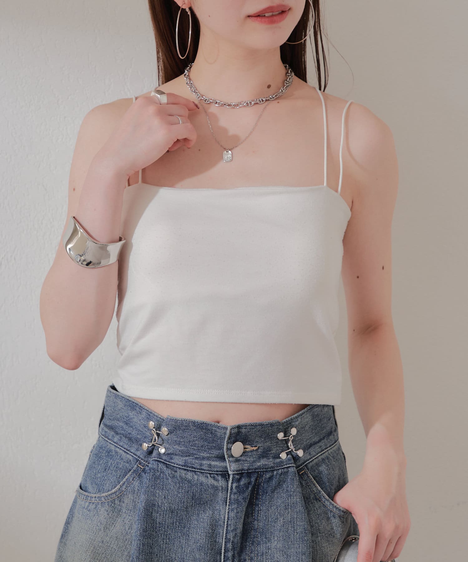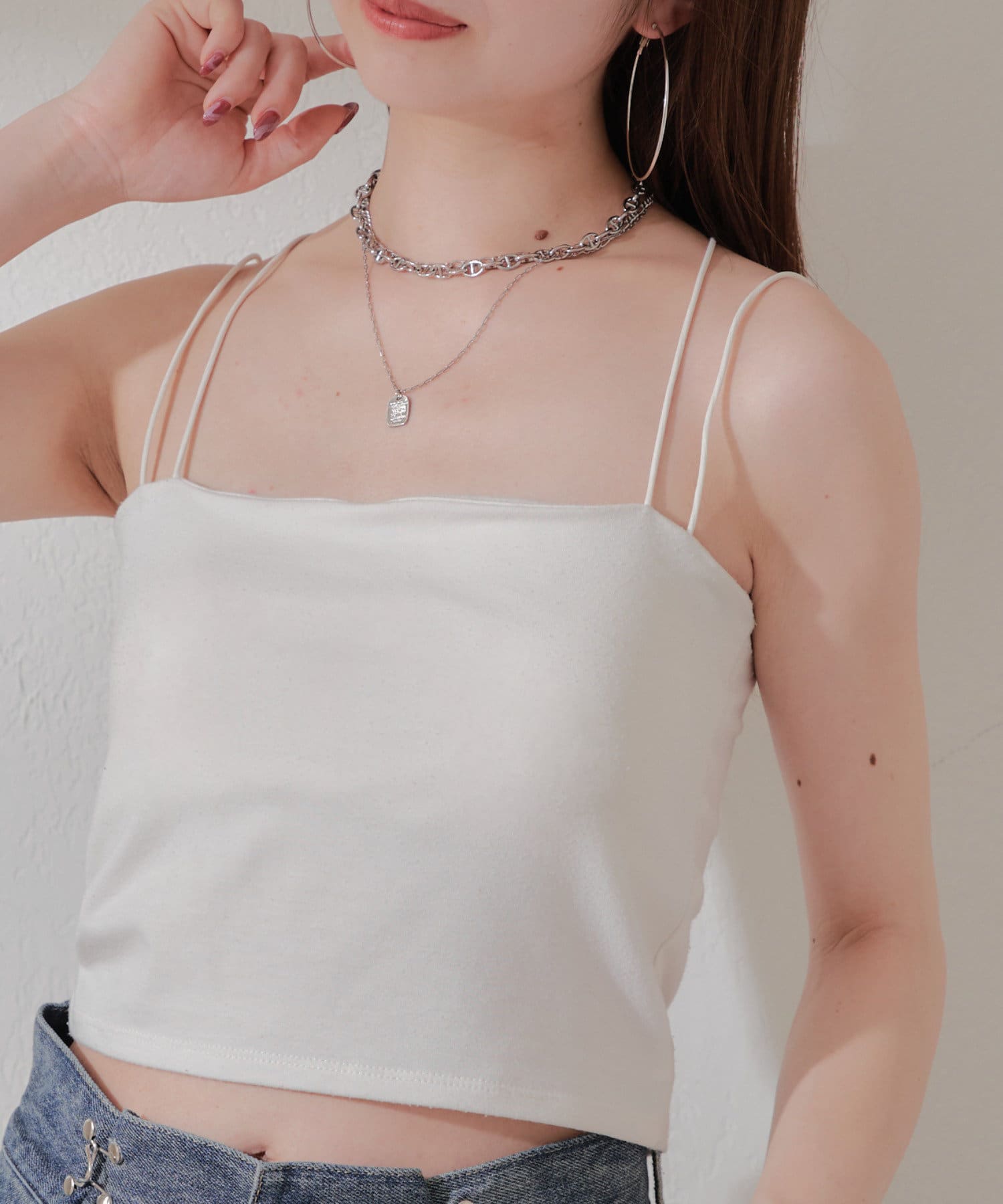 ・シンプルなデザインでどんなお洋服にも合わせやすい万能キャミ