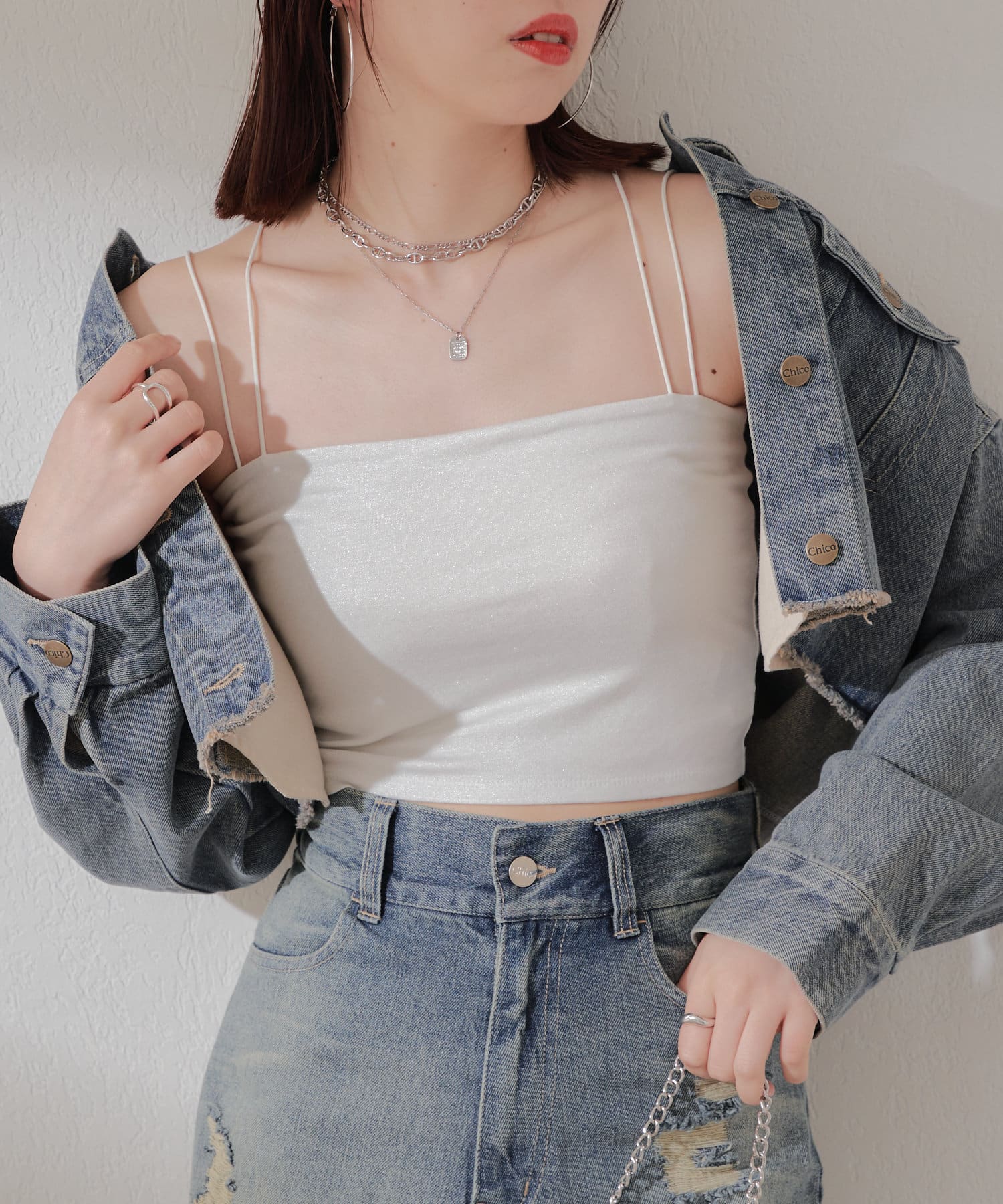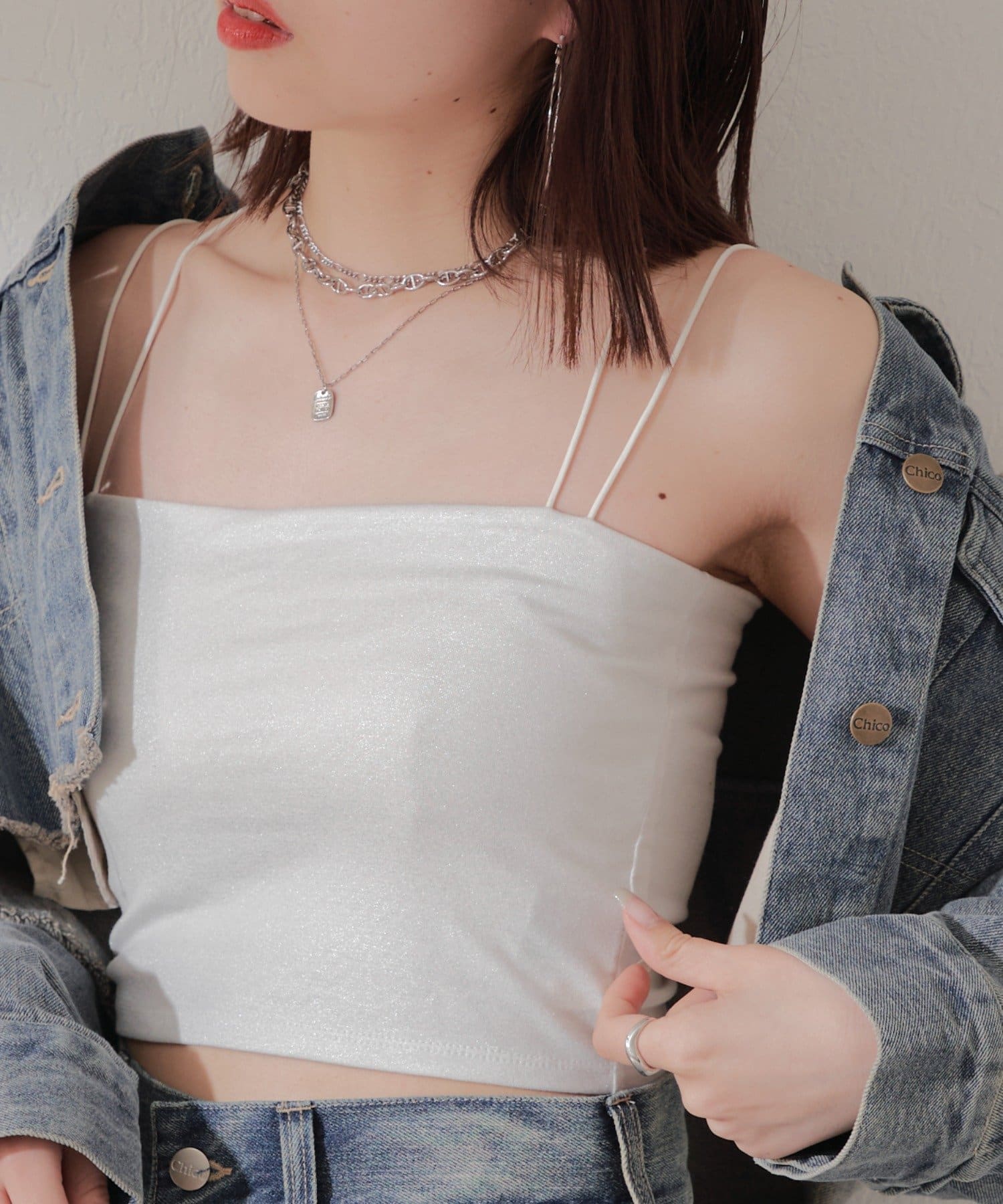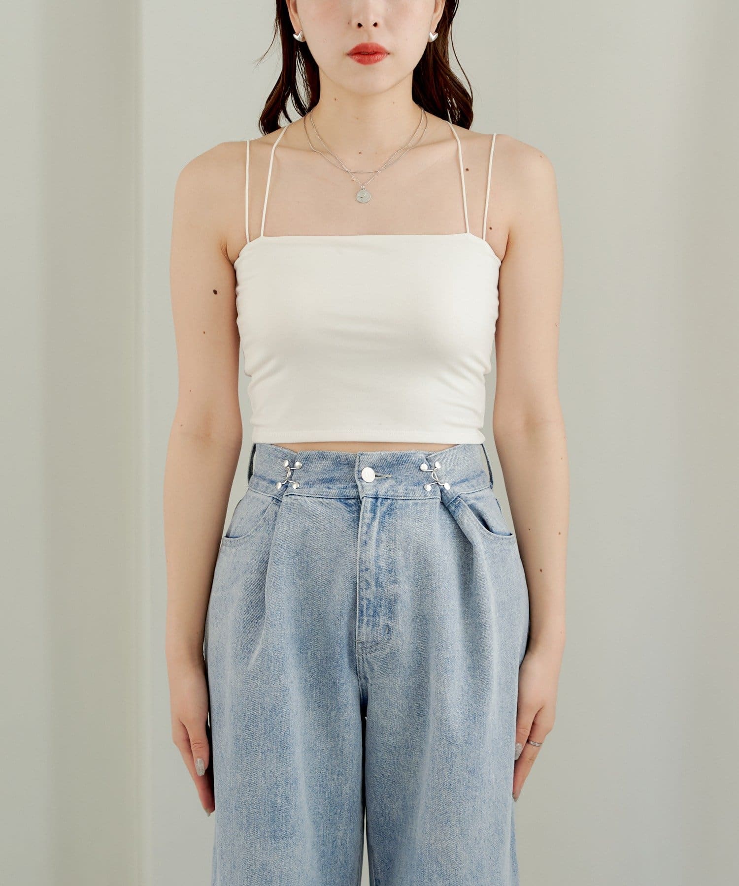 ・シンプルなデザインでどんなお洋服にも合わせやすい万能キャミ