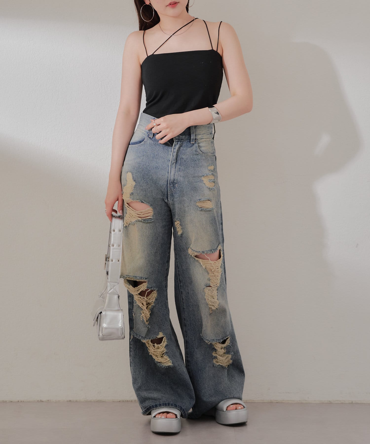 ・マルチなデザインで様々なトップスに合わせていただけます。