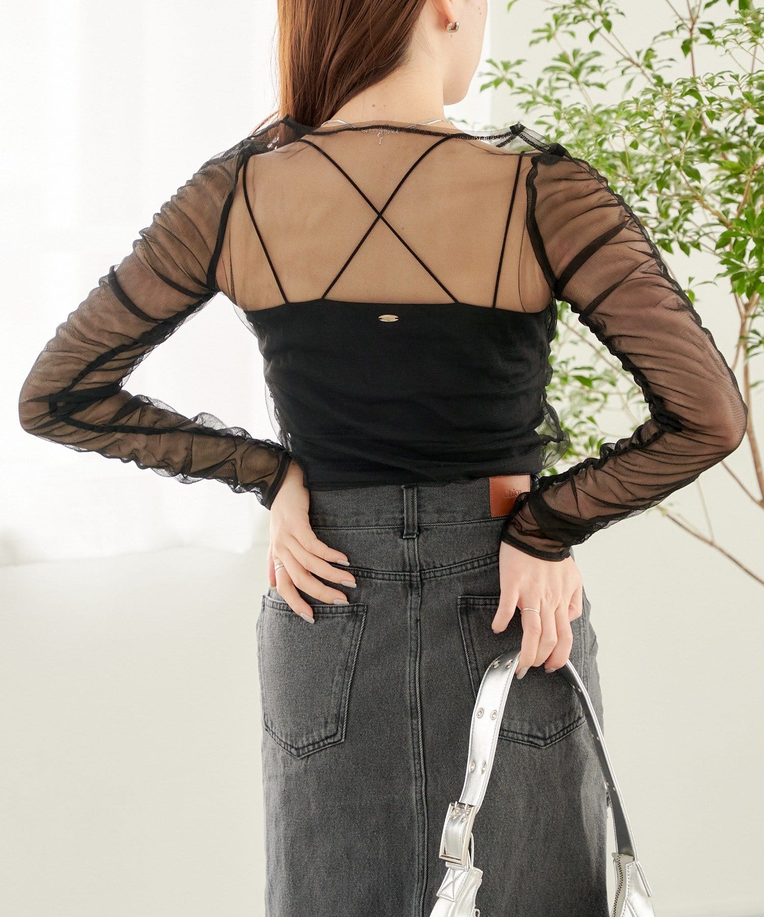 ・シアーのブラウスなどに組み合わせてデザインが透けて見えるのも可愛いです◎