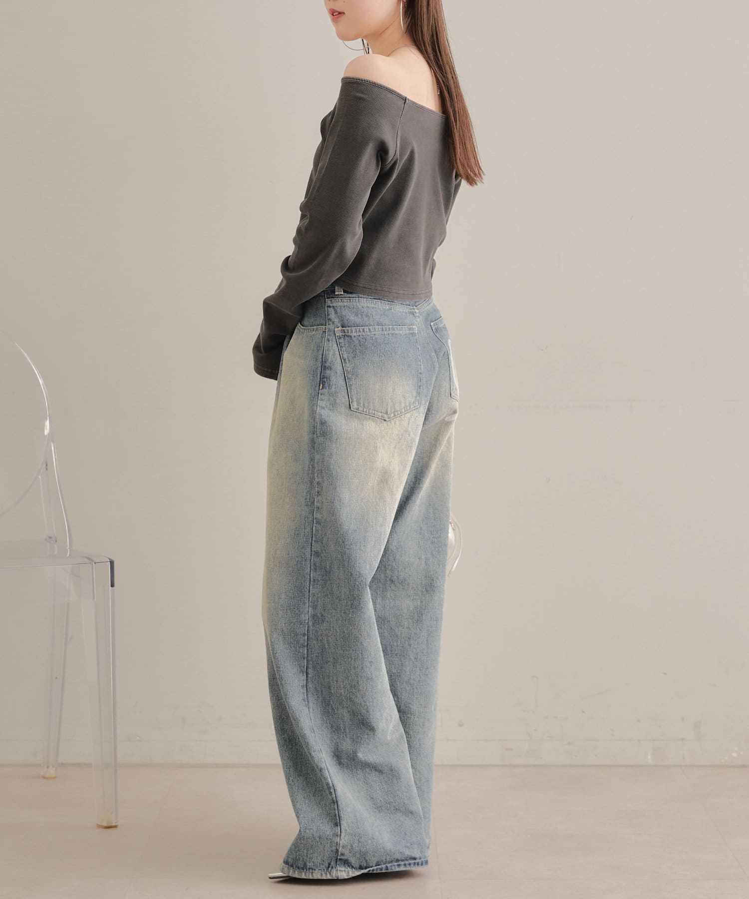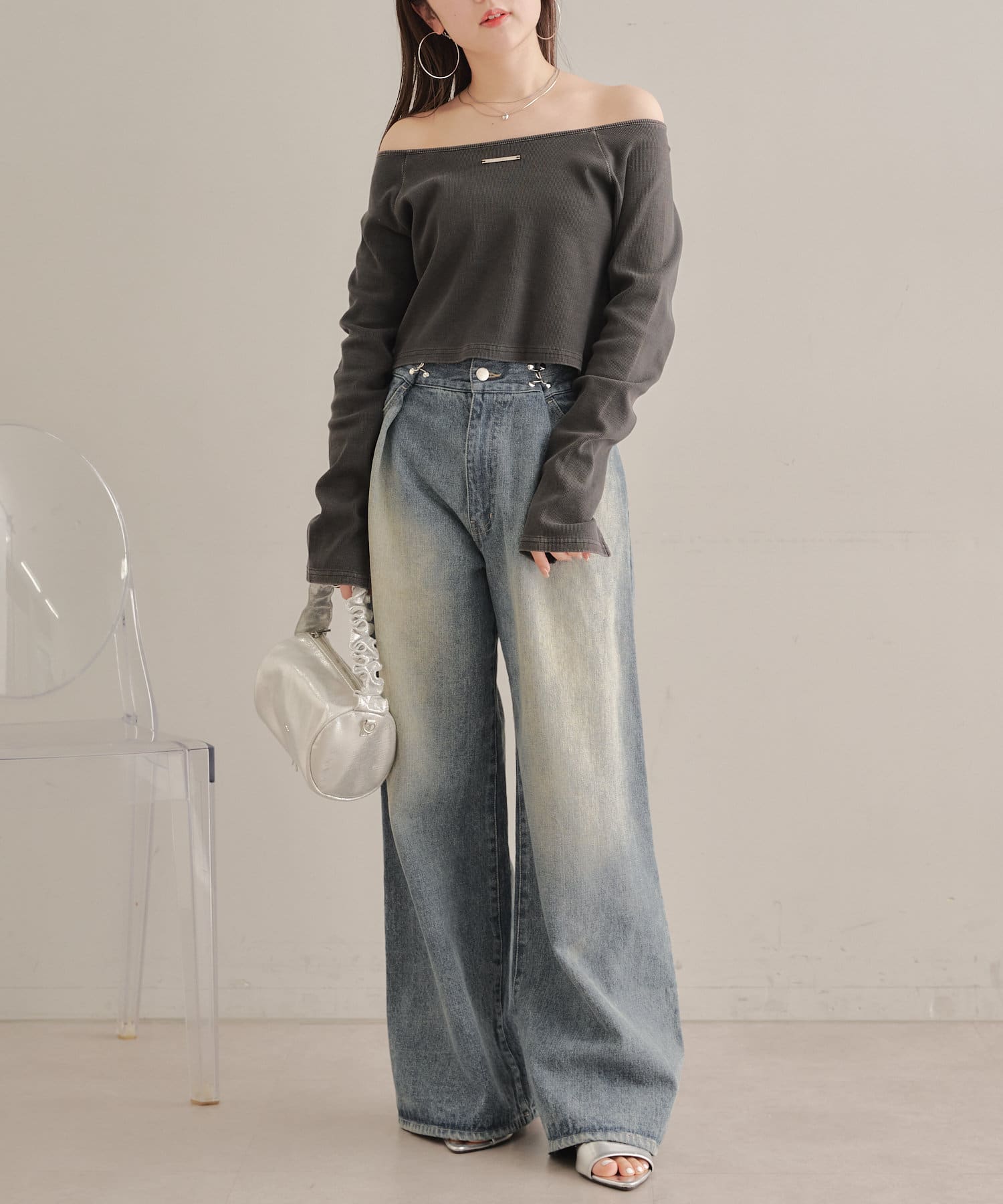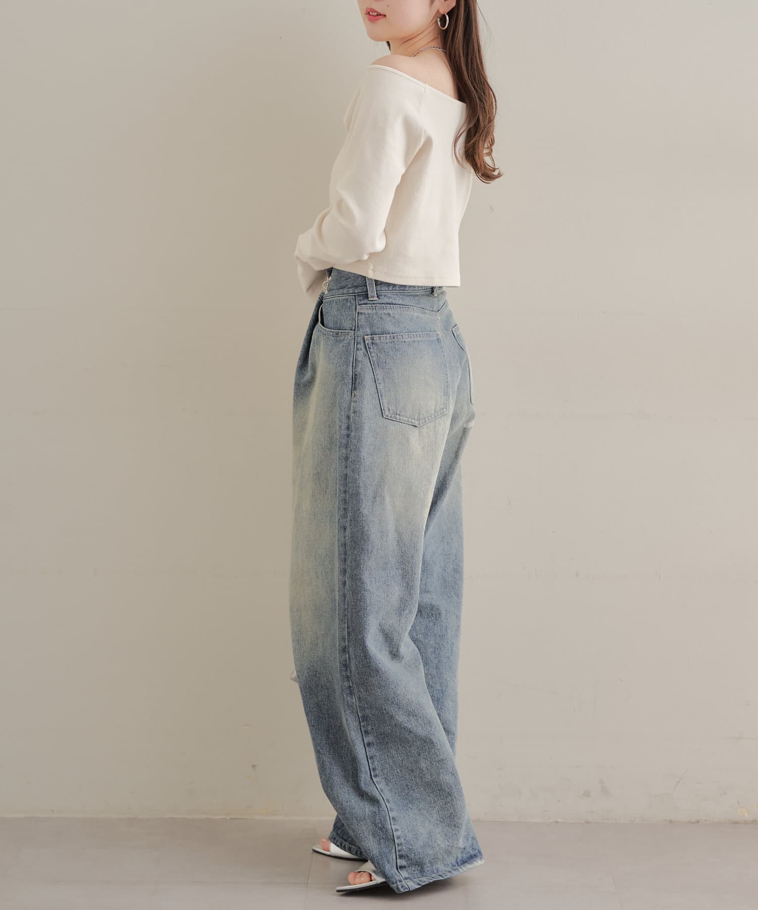 ・ダメージ加工が効いたピグメント素材がトレンド感をプラス。
